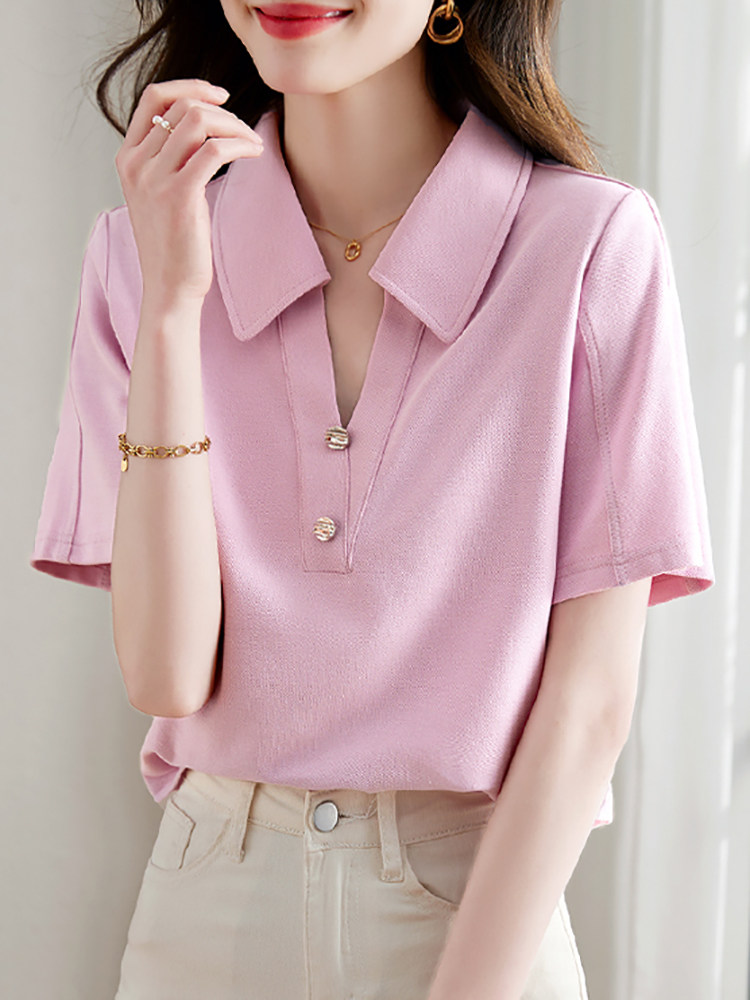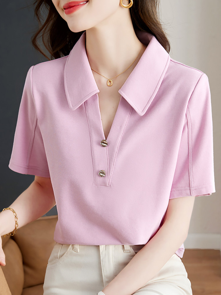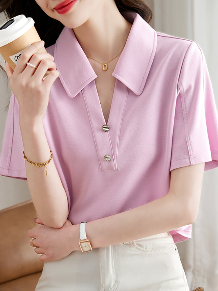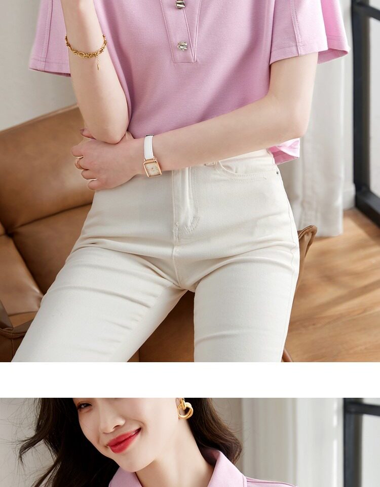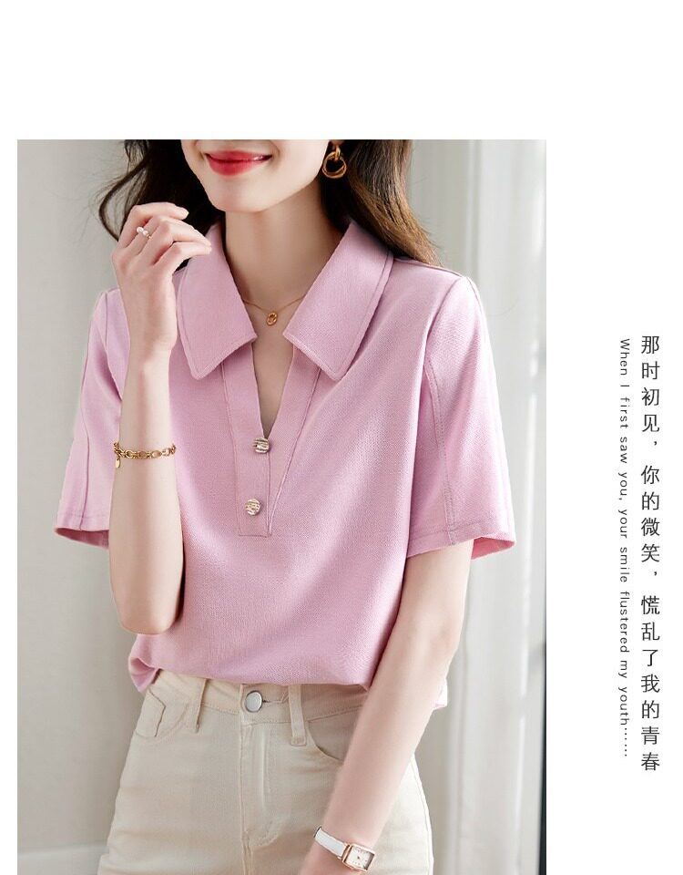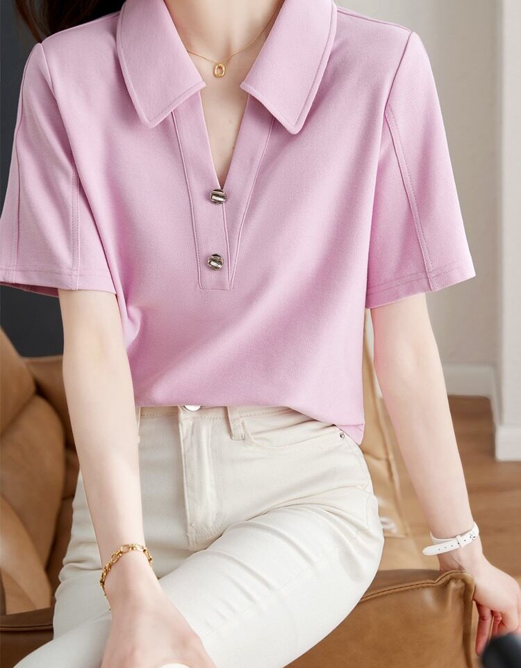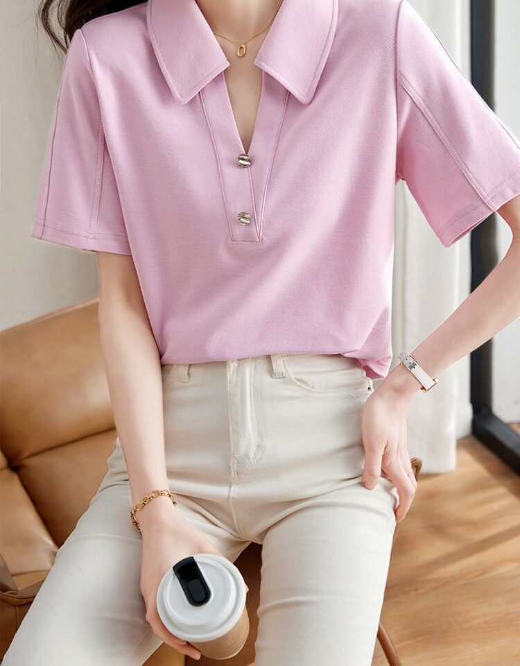 Хлопковая летняя модная футболка с коротким рукавом, коллекция 2023, воротник поло