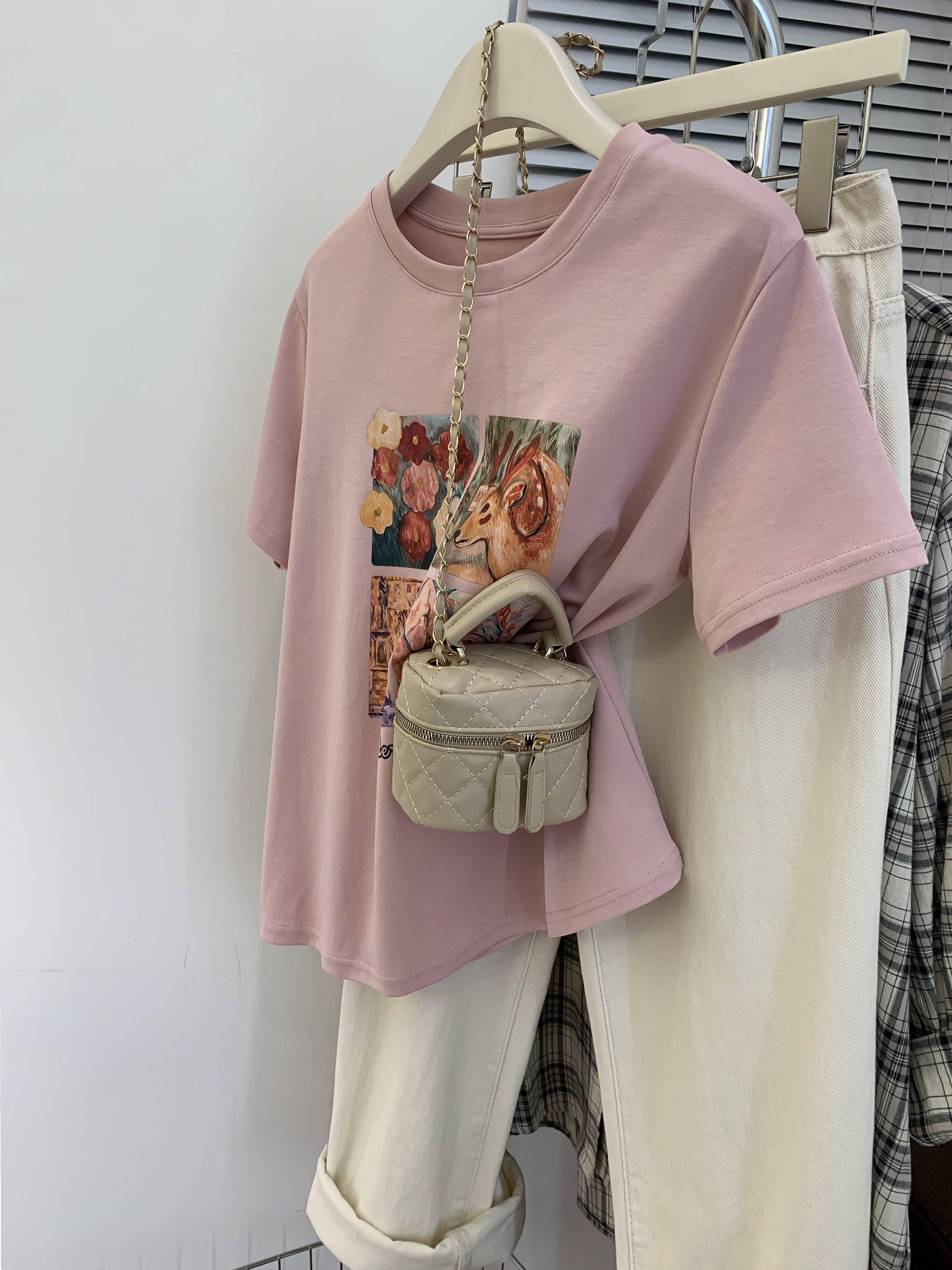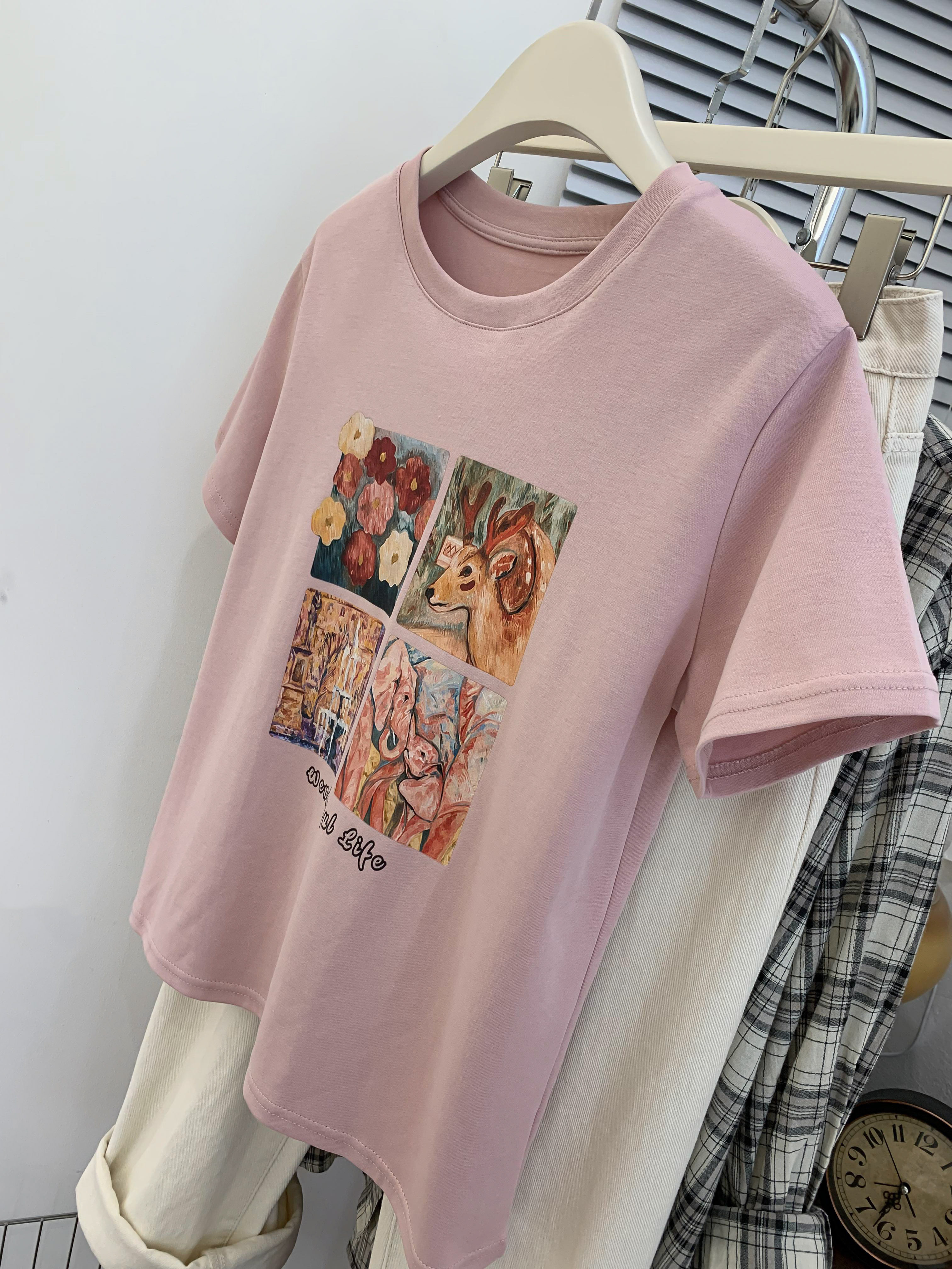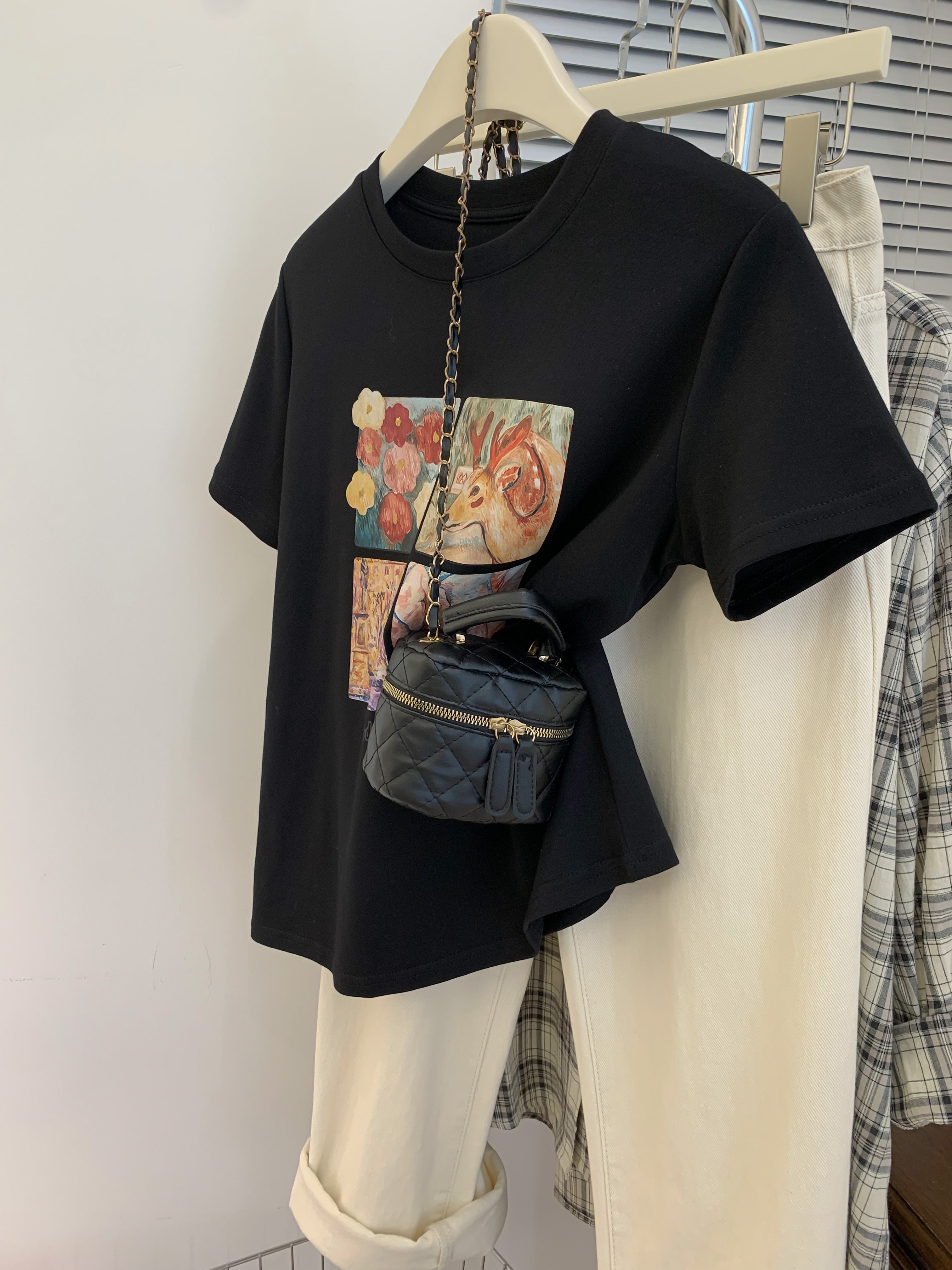 Ретро летняя футболка, сумка, в американском стиле, подходит для подростков, свободный крой, короткий рукав