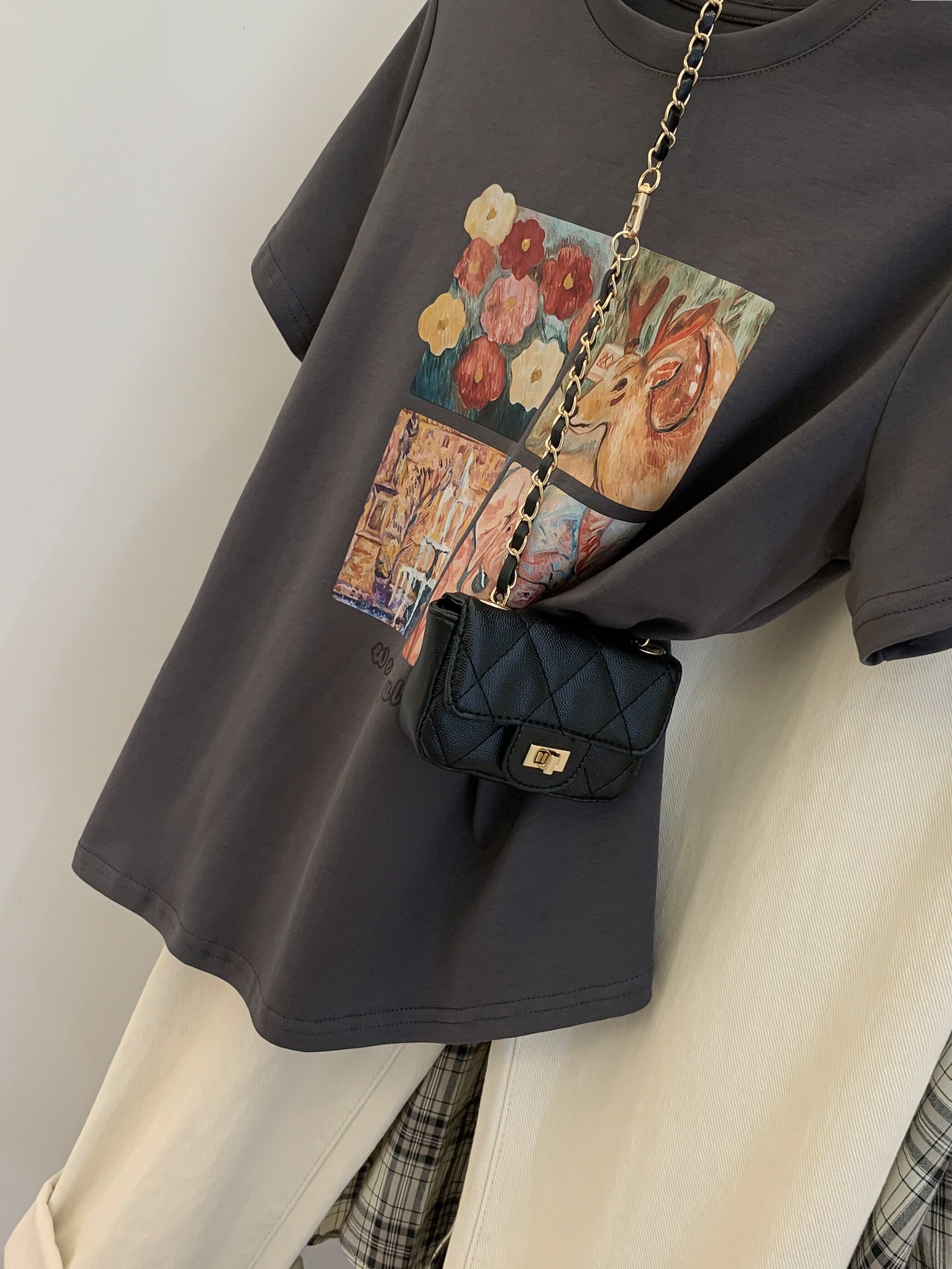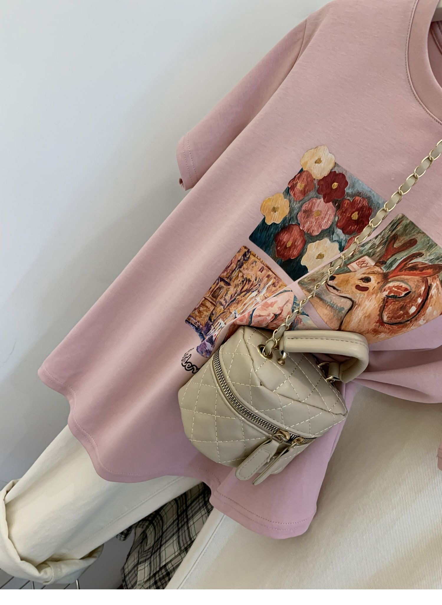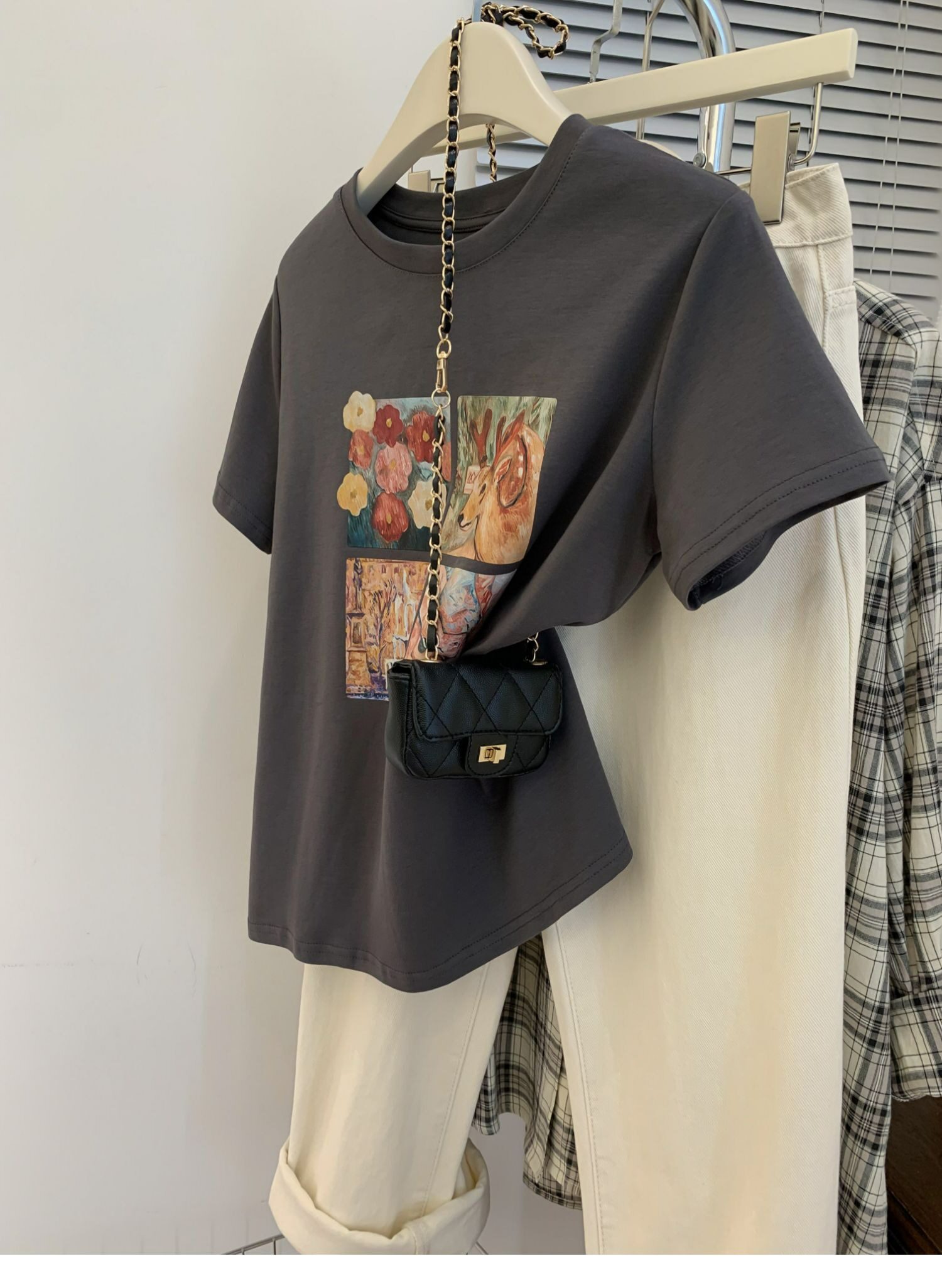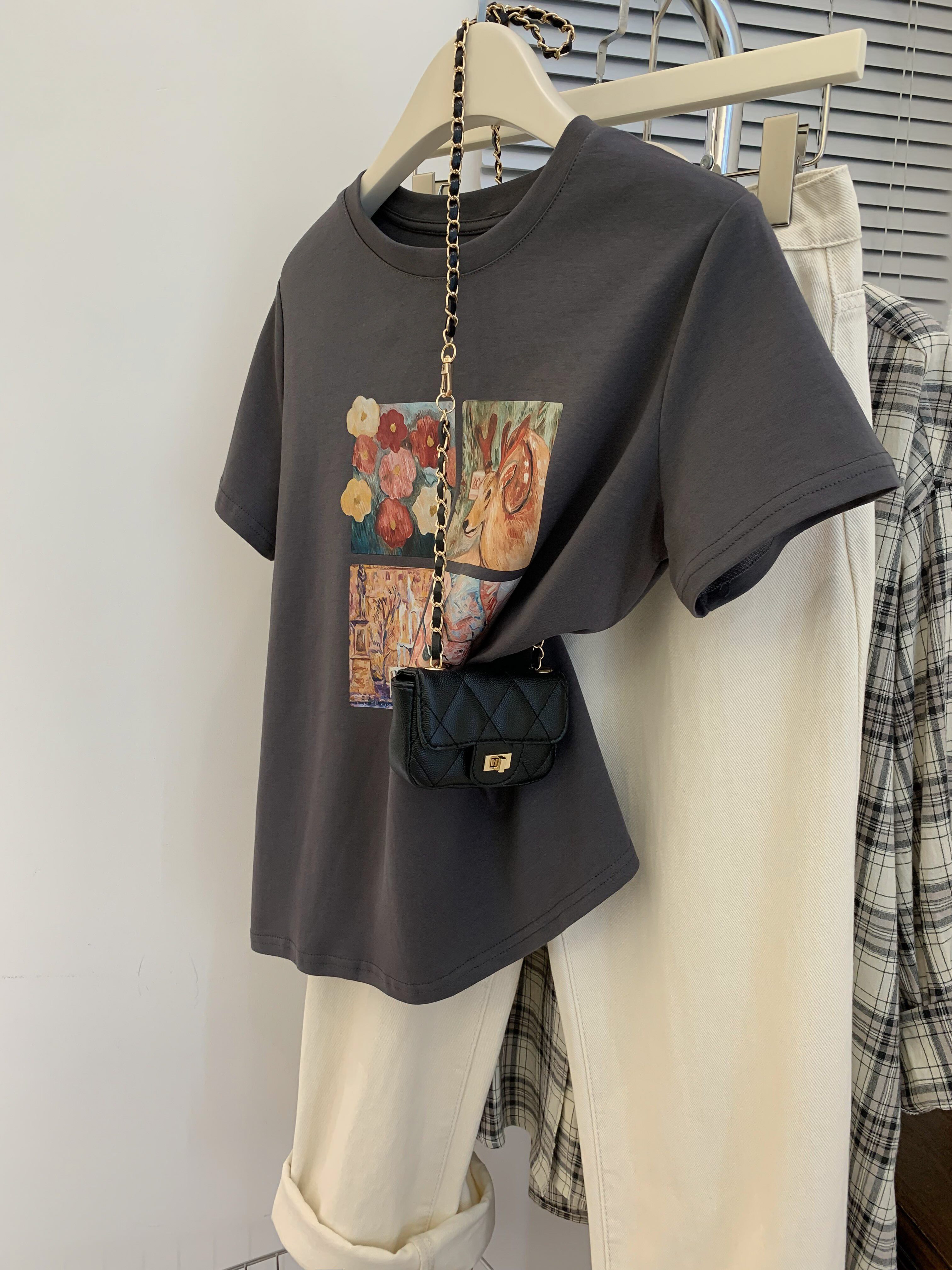 Ретро летняя футболка, сумка, в американском стиле, подходит для подростков, свободный крой, короткий рукав