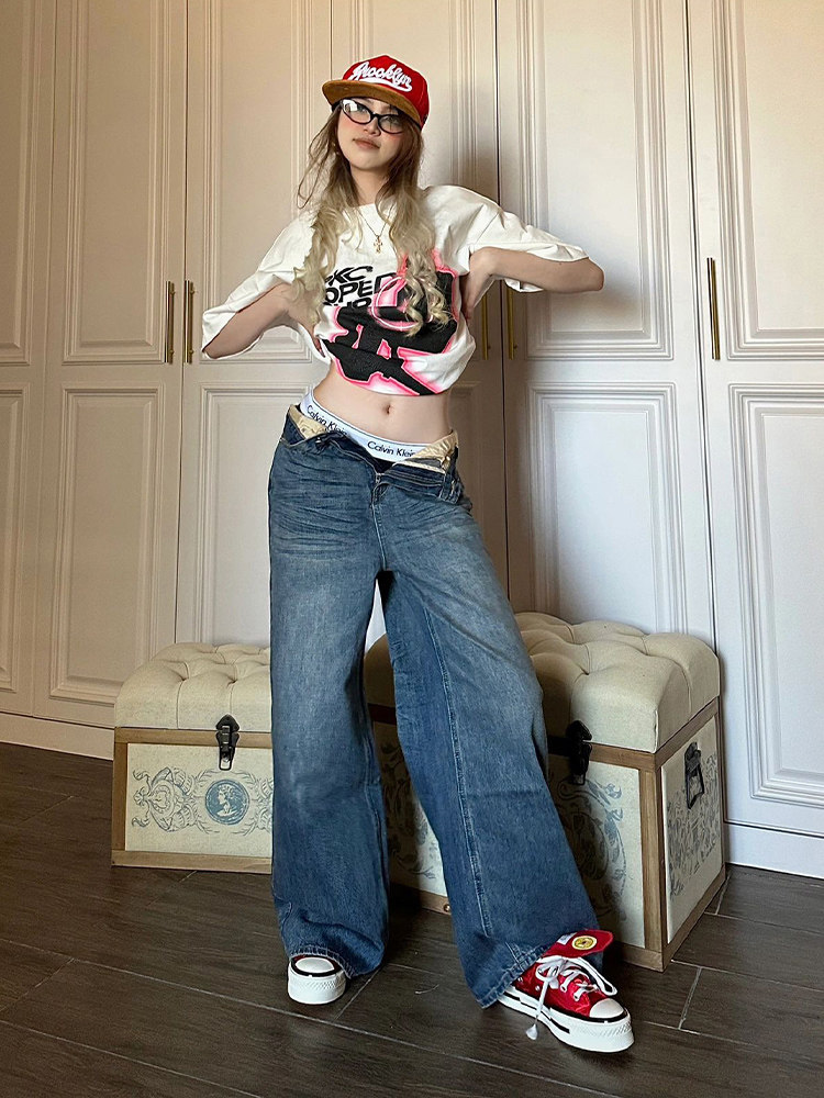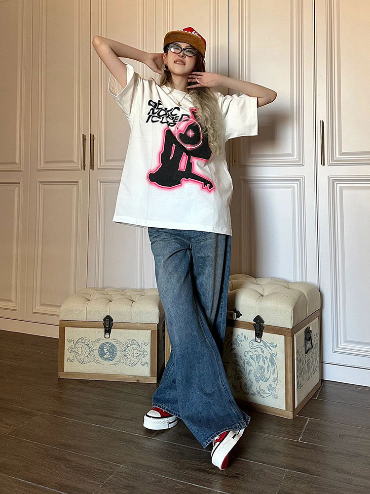 Хлопковая летняя ретро футболка, в американском стиле, короткий рукав, свободный крой, оверсайз, этнический стиль