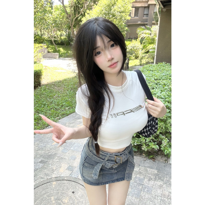 Ретро белая металлическая летняя короткая футболка, в американском стиле, в обтяжку