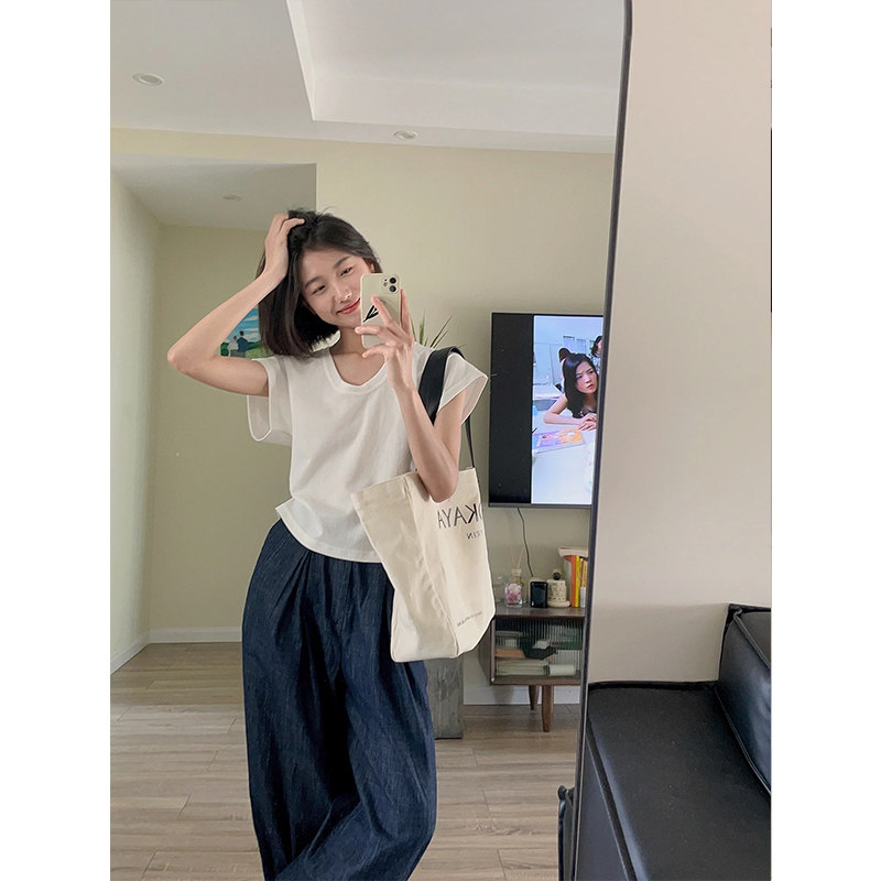 Белая короткая летняя футболка с коротким рукавом, подходит для подростков, свободный крой