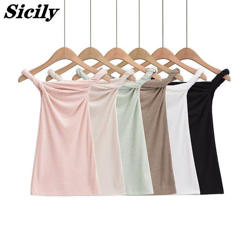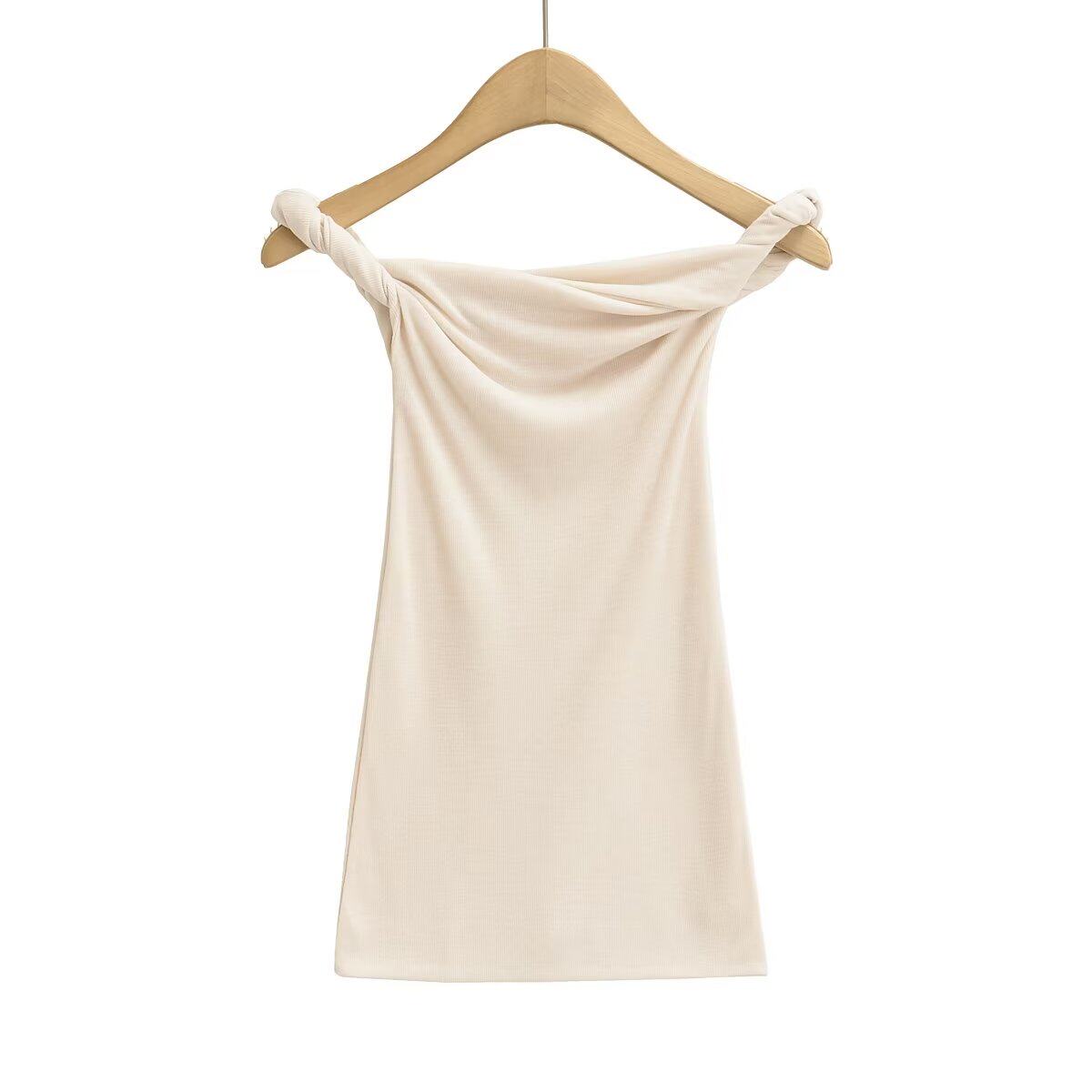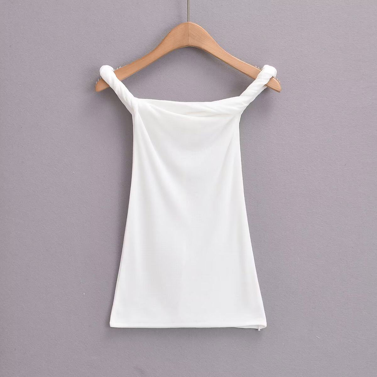 Летняя дизайнерская приталенная футболка без рукавов, открытые плечи, тренд сезона
