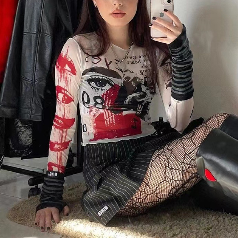 Y2K Printed Top Top Top Diffied Diamonds Kawaii Гранж -майки Свитер рукаUSD 3.02/bag