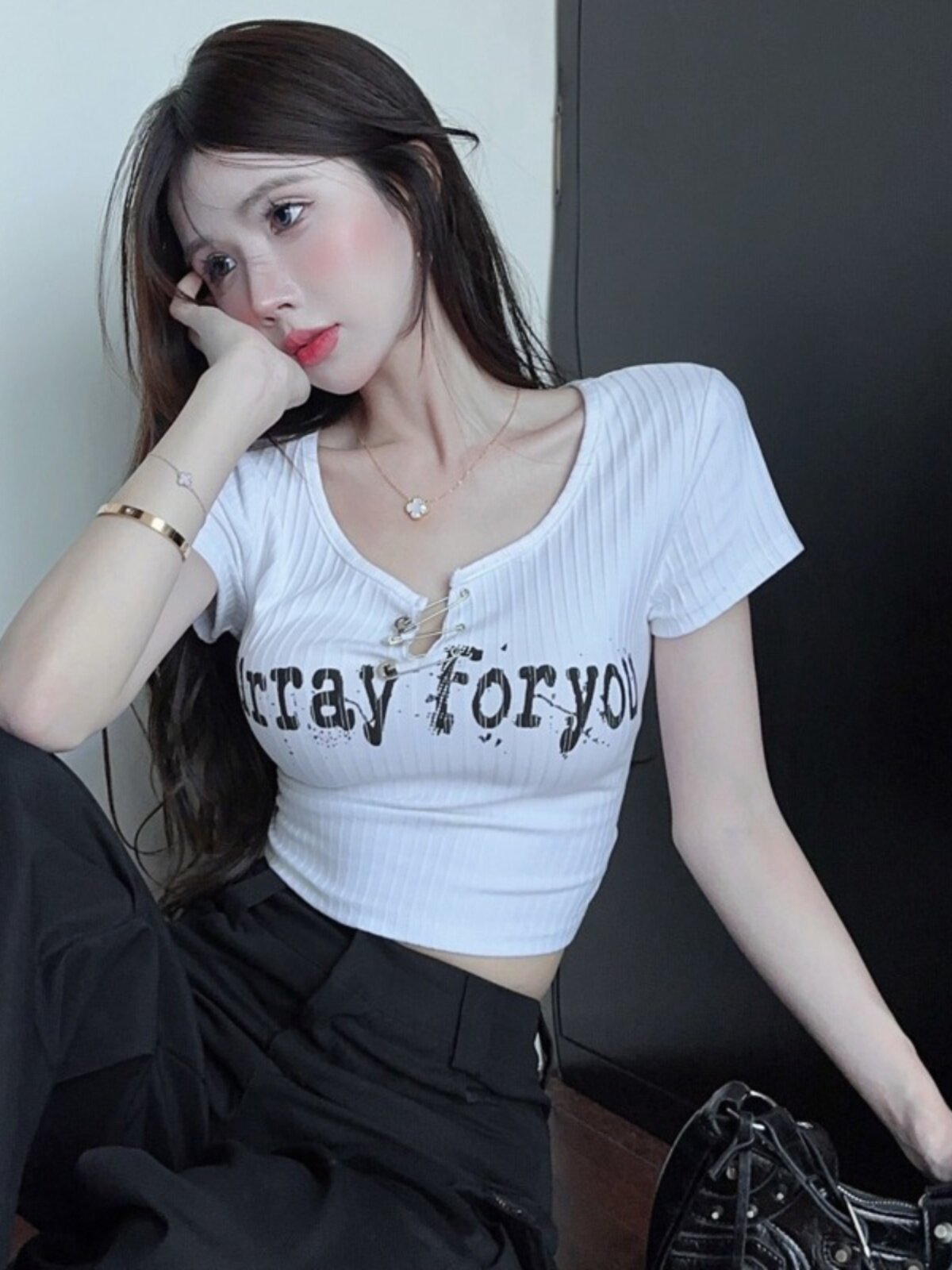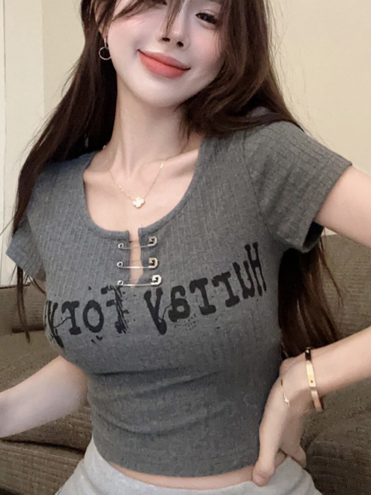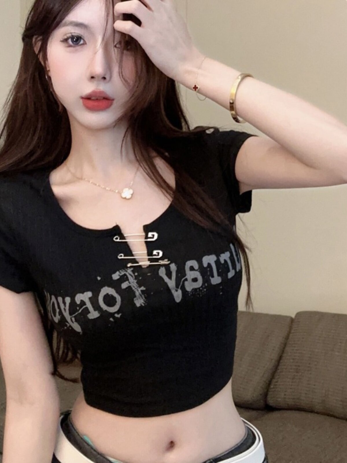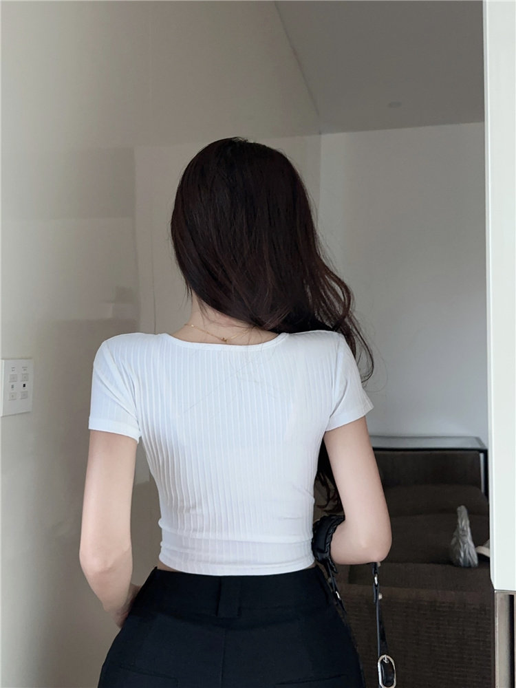 Дизайнерская короткая булавка, футболка с коротким рукавом, черная летняя одежда, подходит для подростков, тренд сезона, в американском стиле, высокая талия