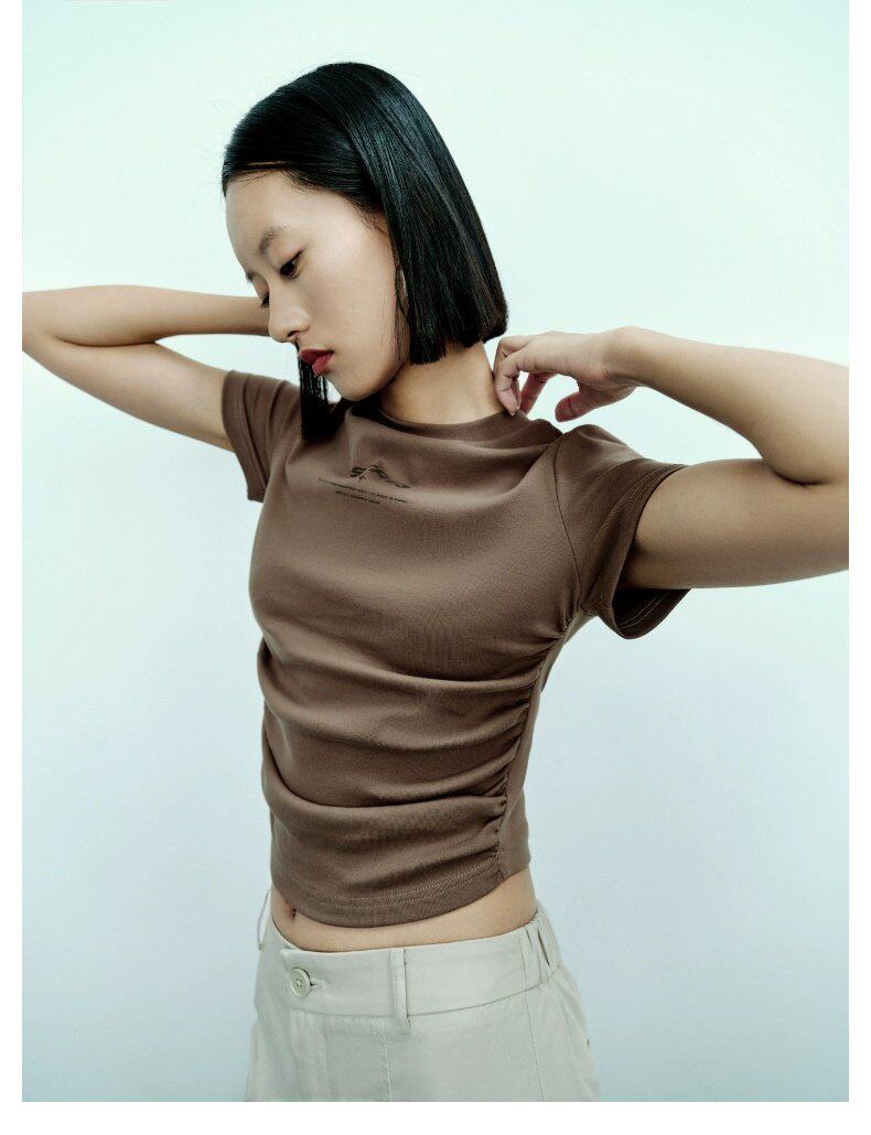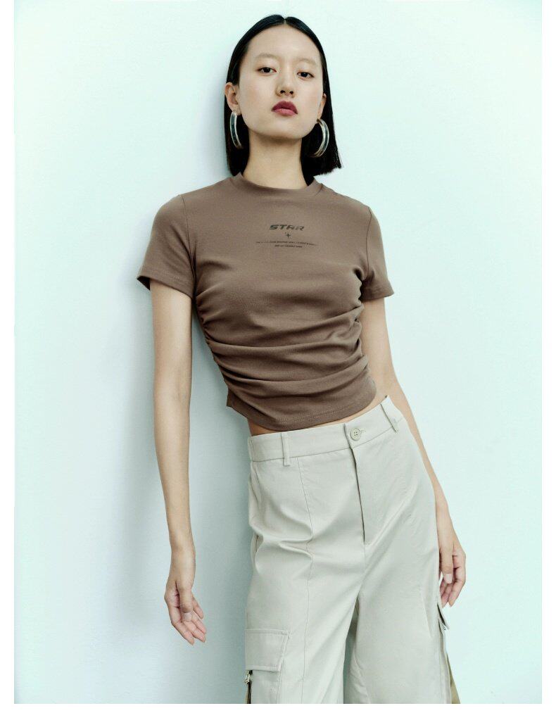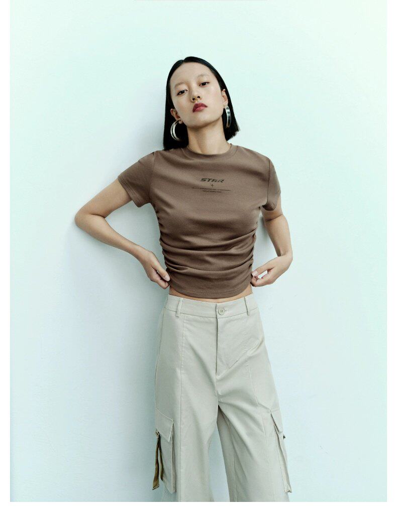 2023 Летняя женская одежда горячая девушка в стиле уличная печать Печать с плиссированной стройной футболкой с короткими рукавами UWV432220
