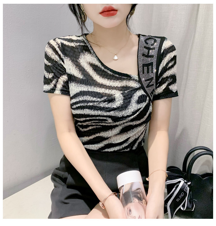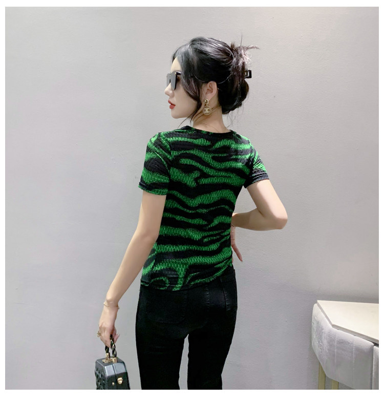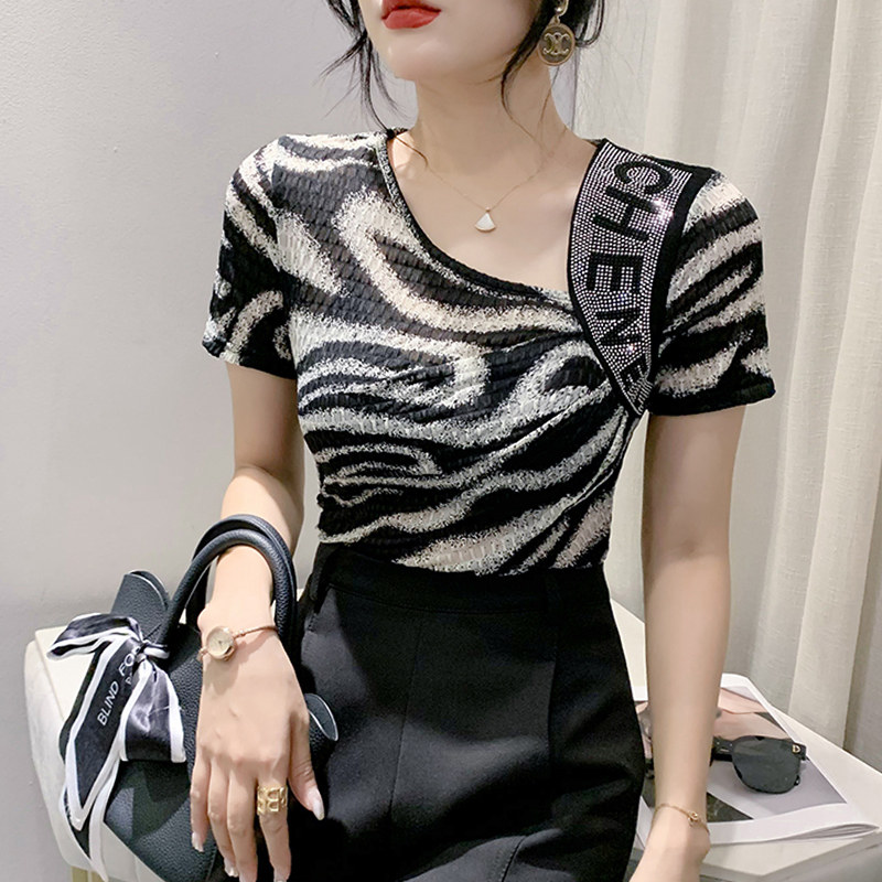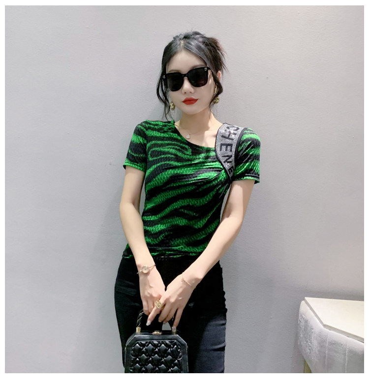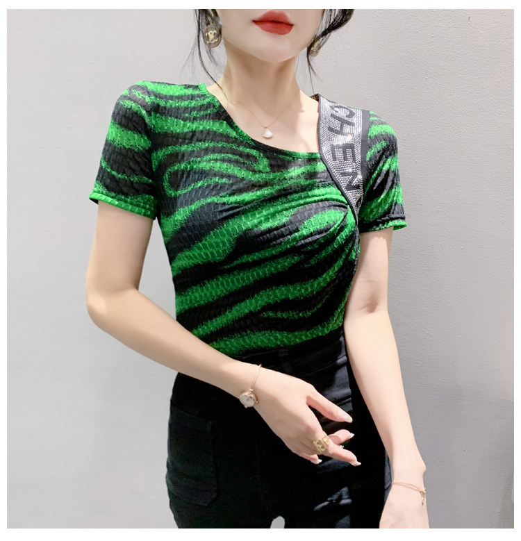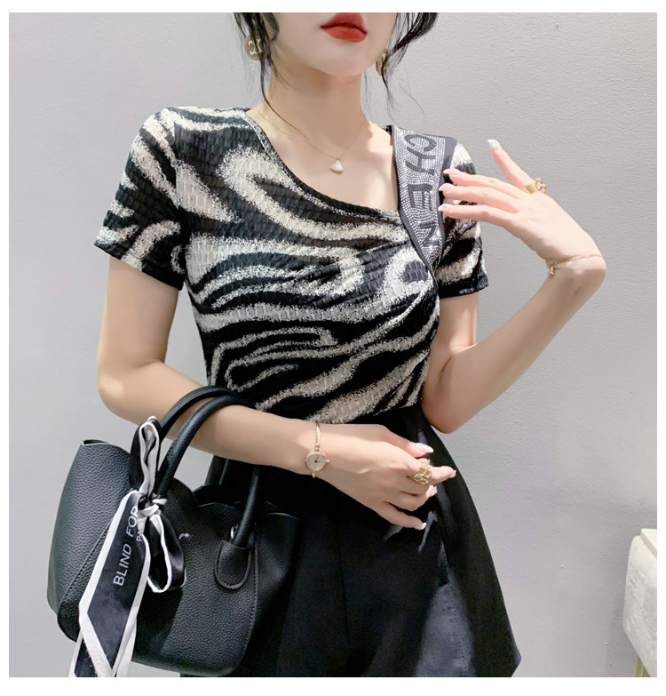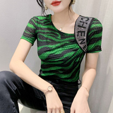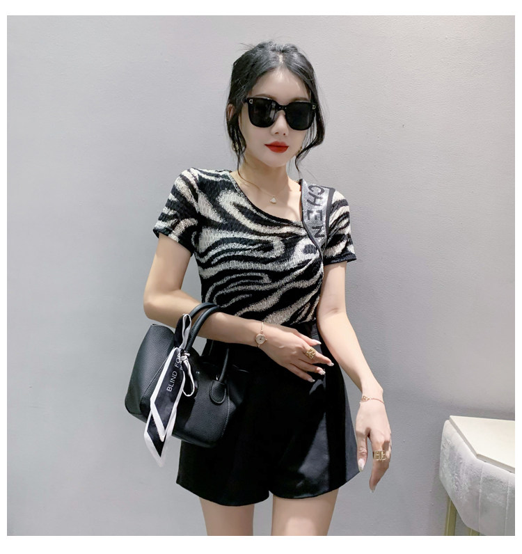 Сексуальная футболка, модная зебра, короткий рукав, облегающий крой