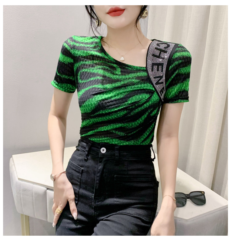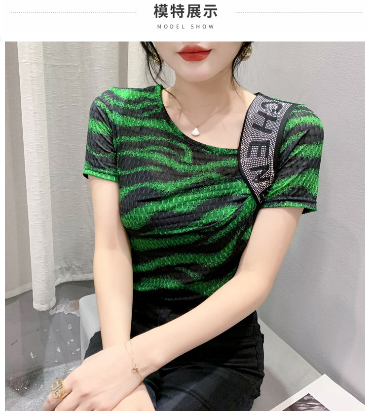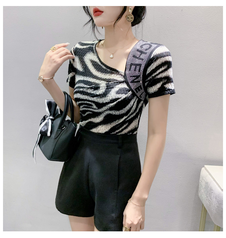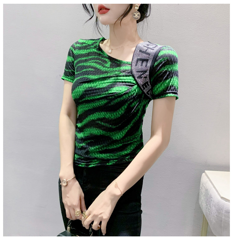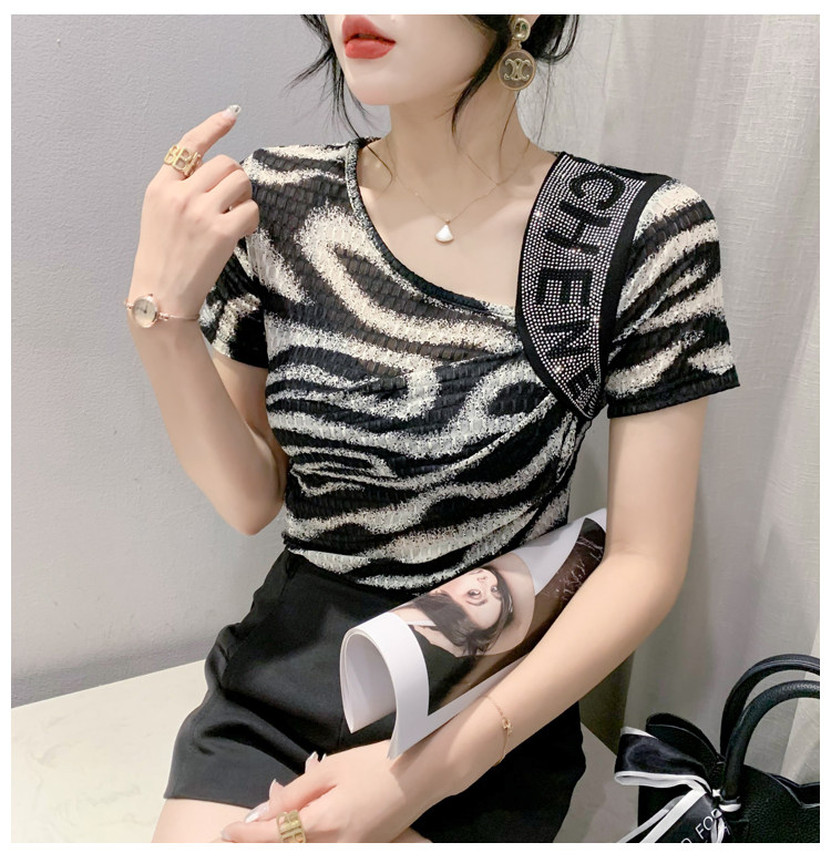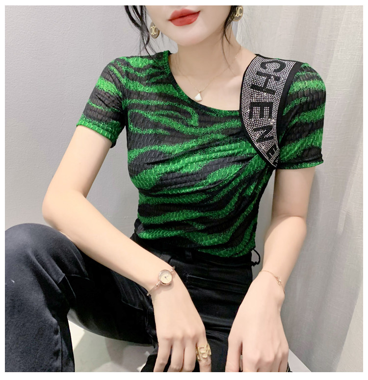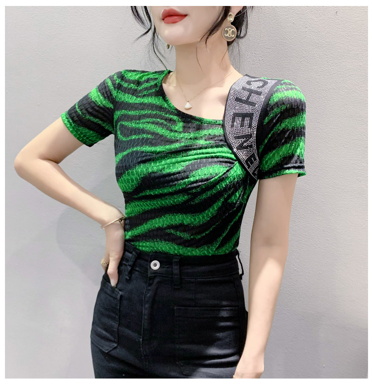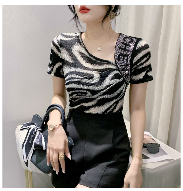 Сексуальная футболка, модная зебра, короткий рукав, облегающий крой