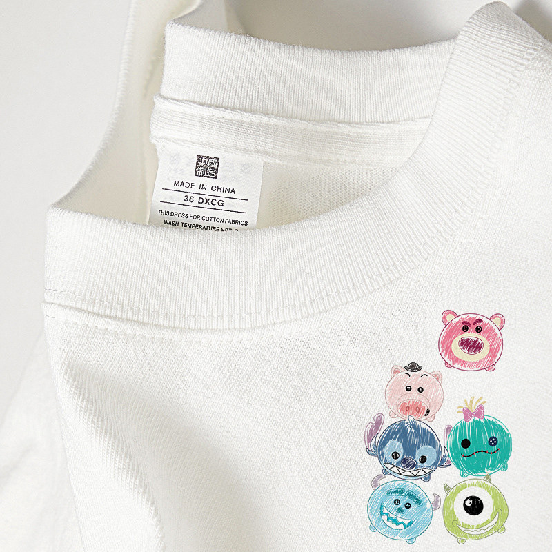 Мультяшная хлопковая летняя дизайнерская милая футболка с коротким рукавом, свободный крой, тренд сезона, большой размер