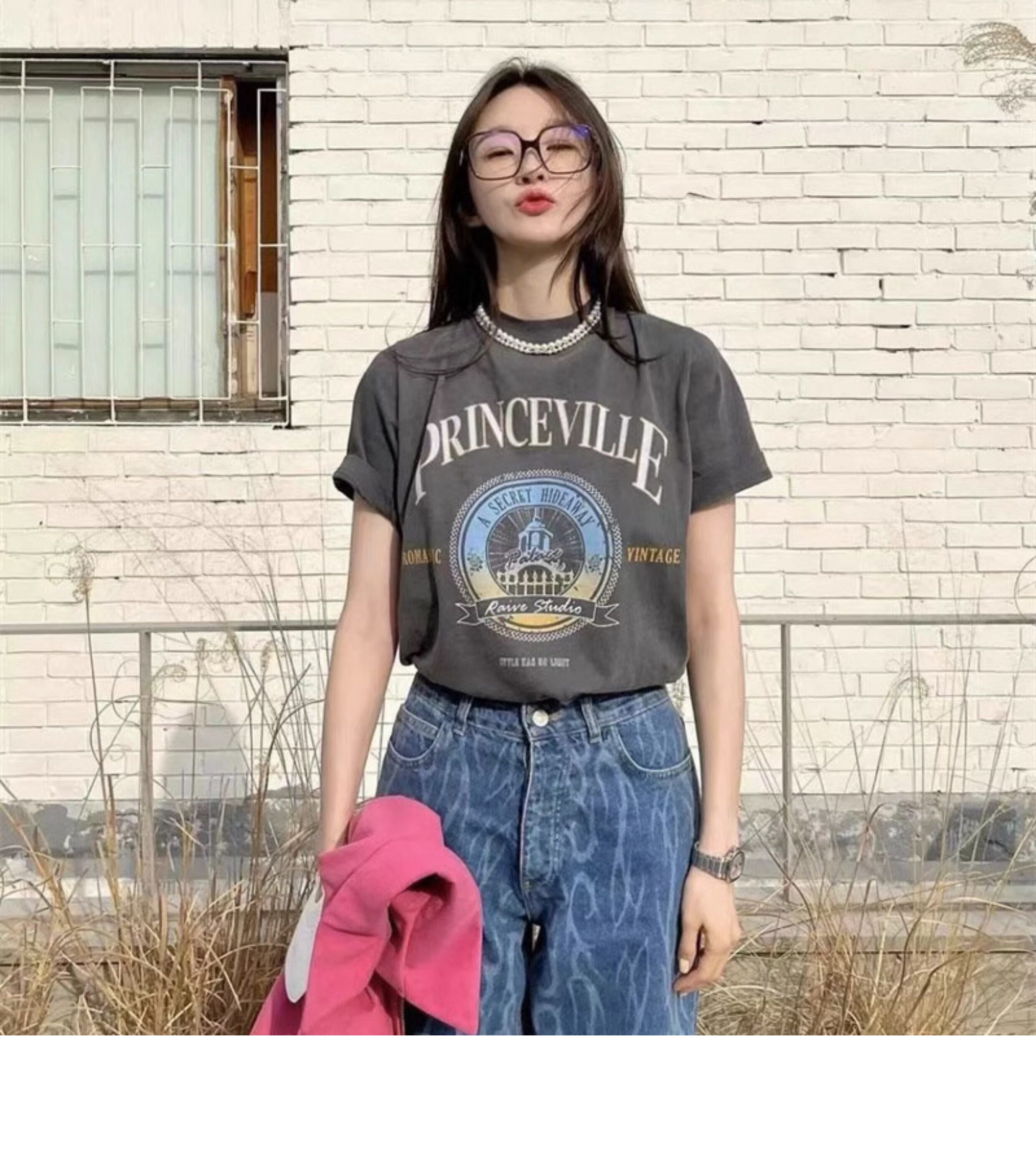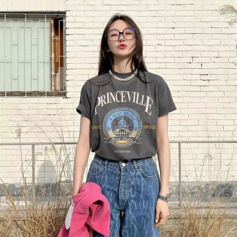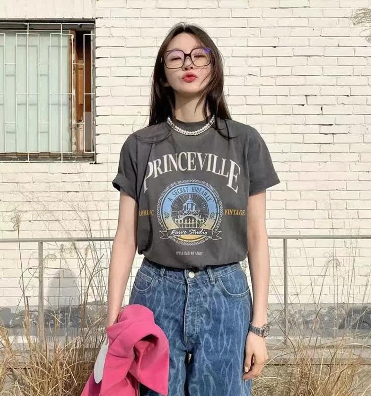 Ретро футболка, в американском стиле, свободный крой, короткий рукав