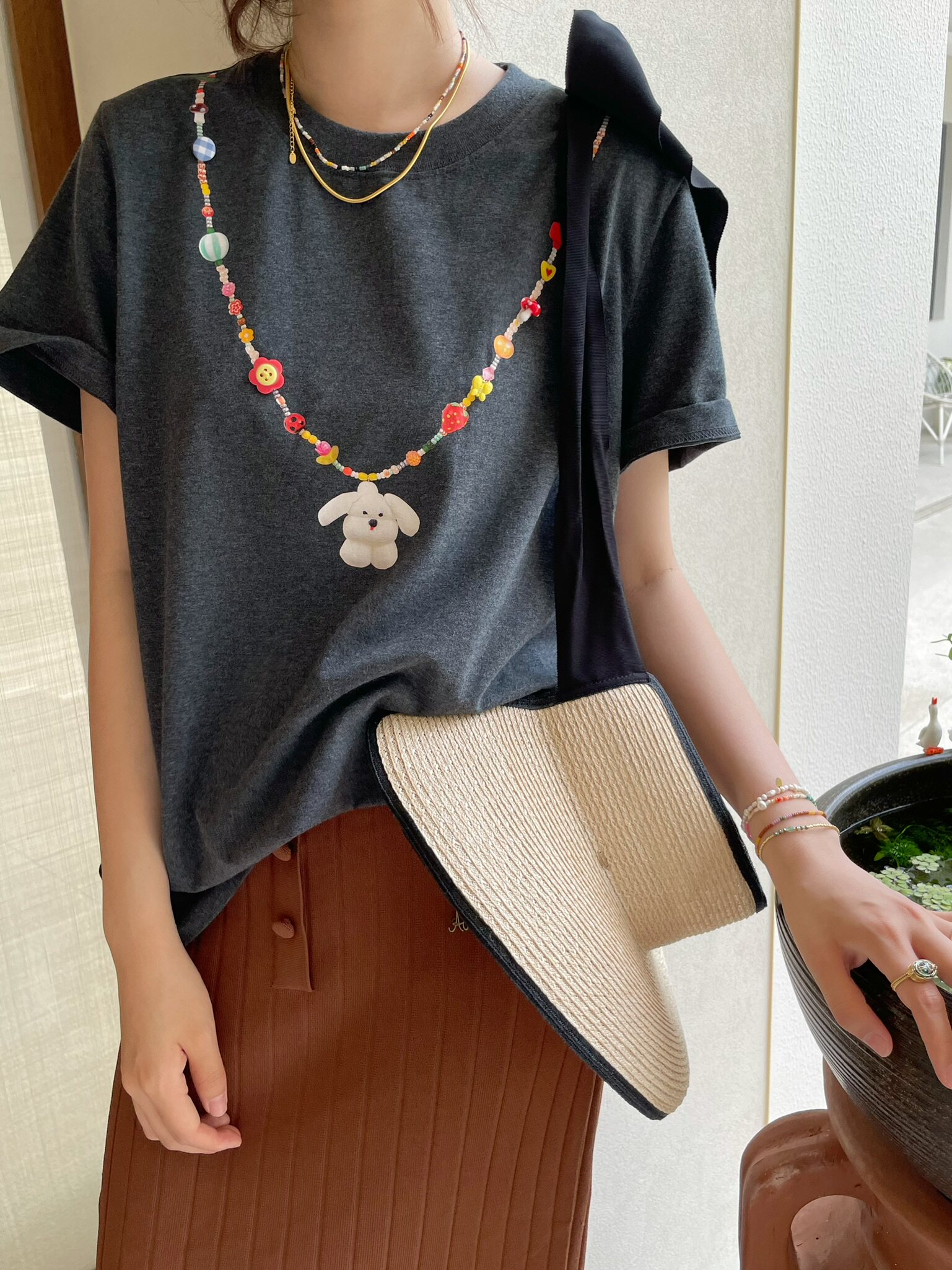 Дизайнерское летнее ожерелье, оригинальная хлопковая футболка
