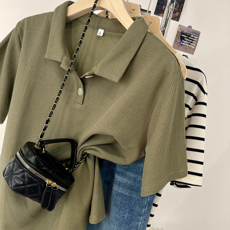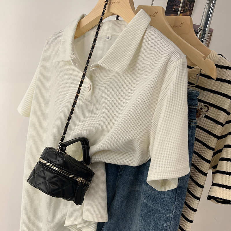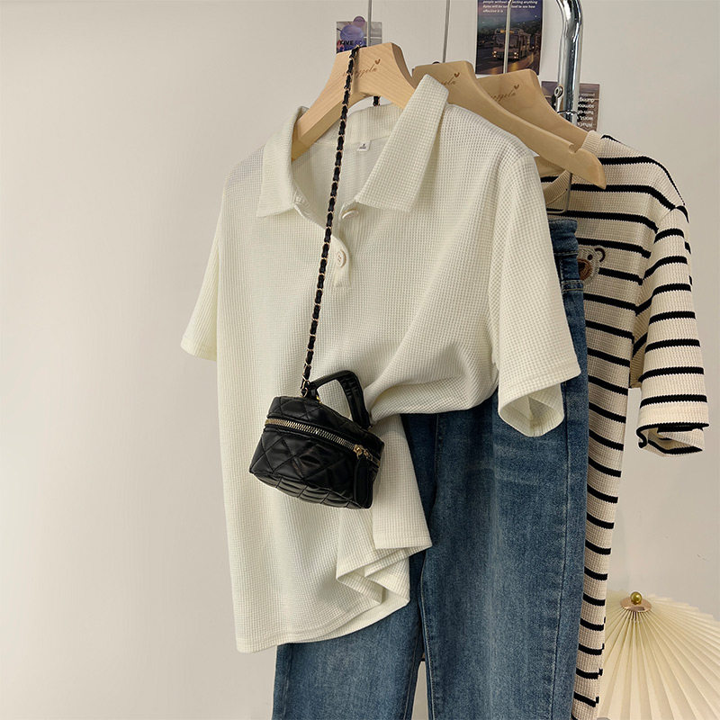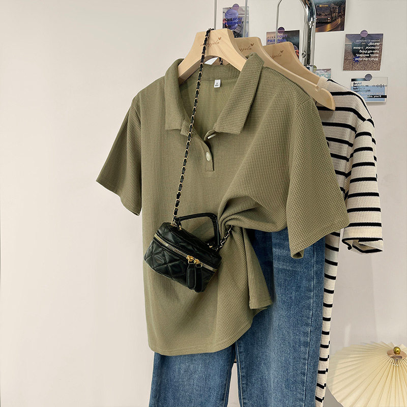 Матча, футболка polo, летняя футболка с коротким рукавом для школьников и студентов, в корейском стиле, высокий воротник