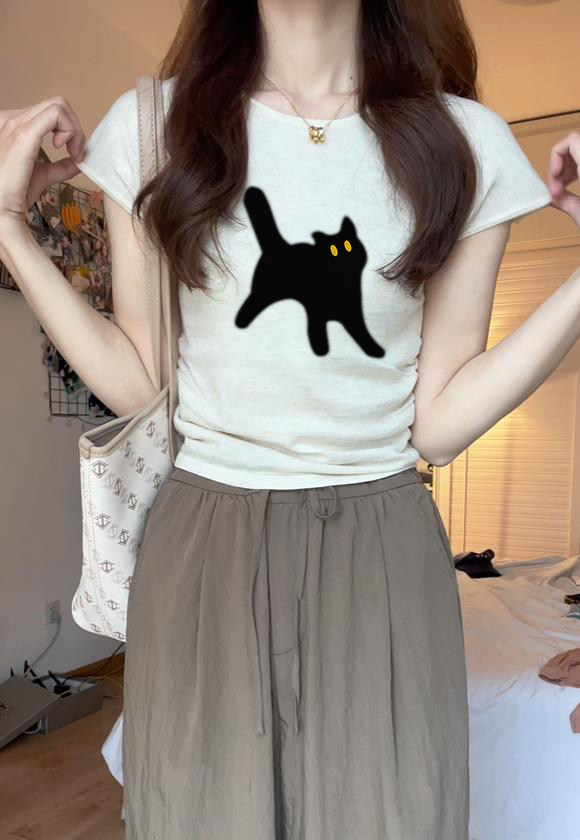 Рубашка с короткими рукавами переднего плеча для женщин 2023 Лето Новый американский ретро-ретро маленькие рукава для мухи тонкая футболка короткая тонкая гладкая