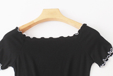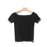 (Трансграничная торговля), летняя трикотажная эластичная футболка, открытые плечи, короткий рукав, облегающий крой