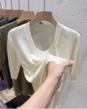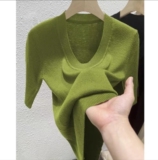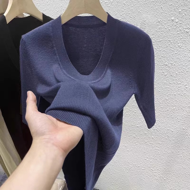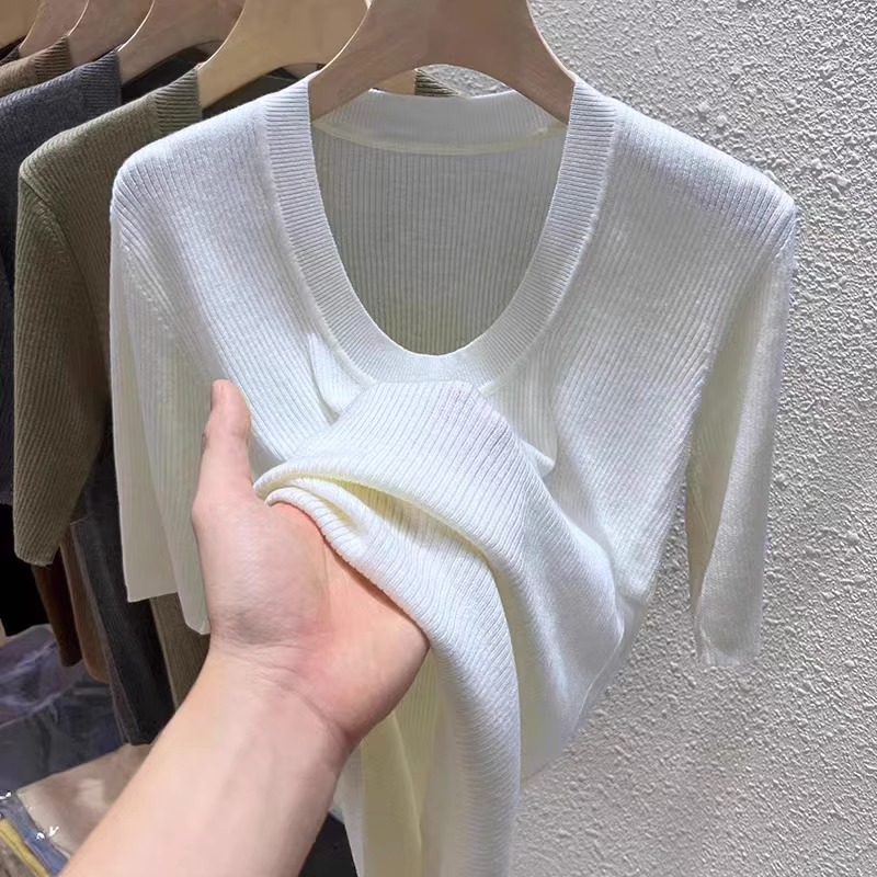 Летний трикотажный приталенный свитер, тонкая футболка, короткий рукав, круглый воротник