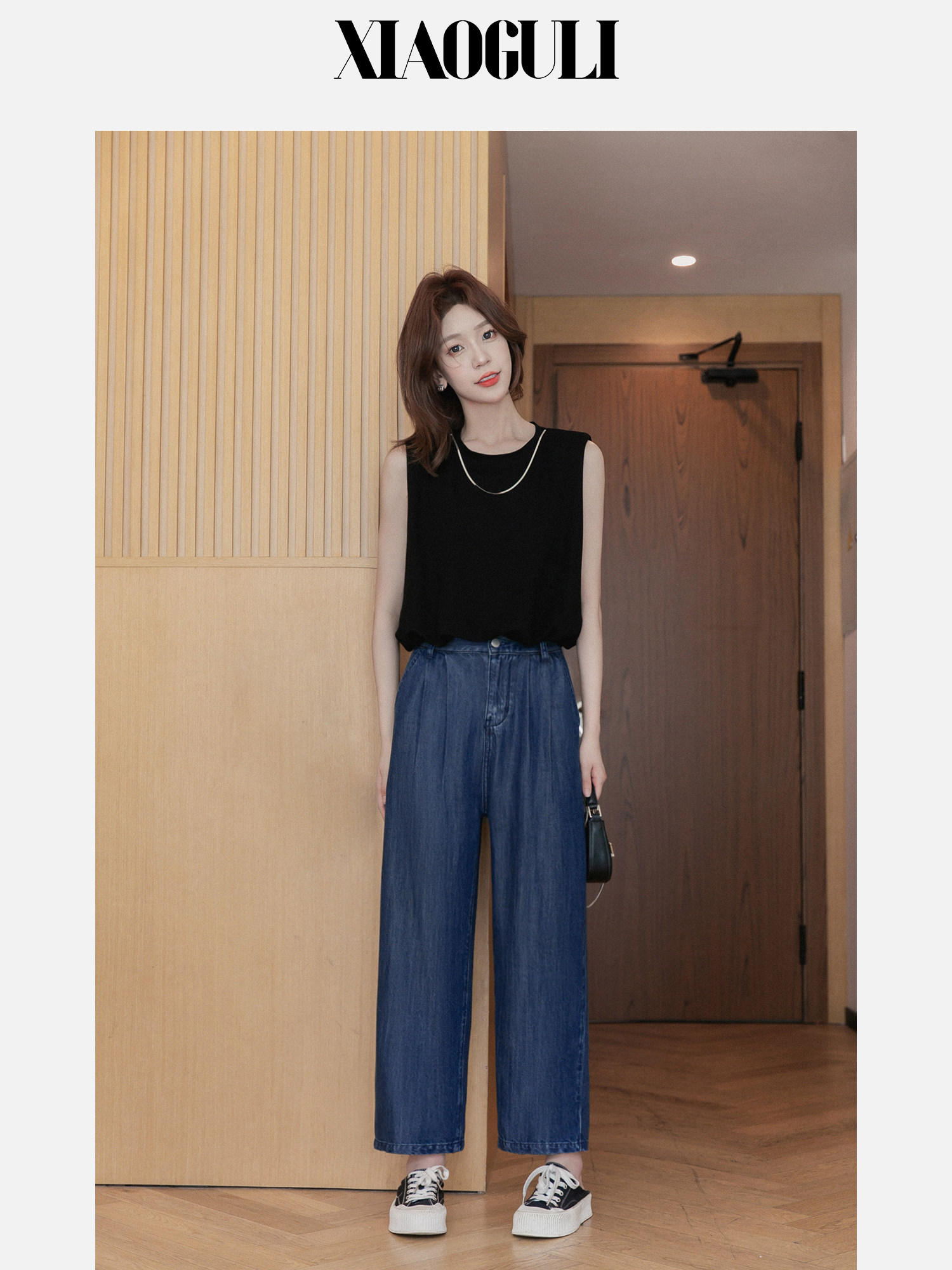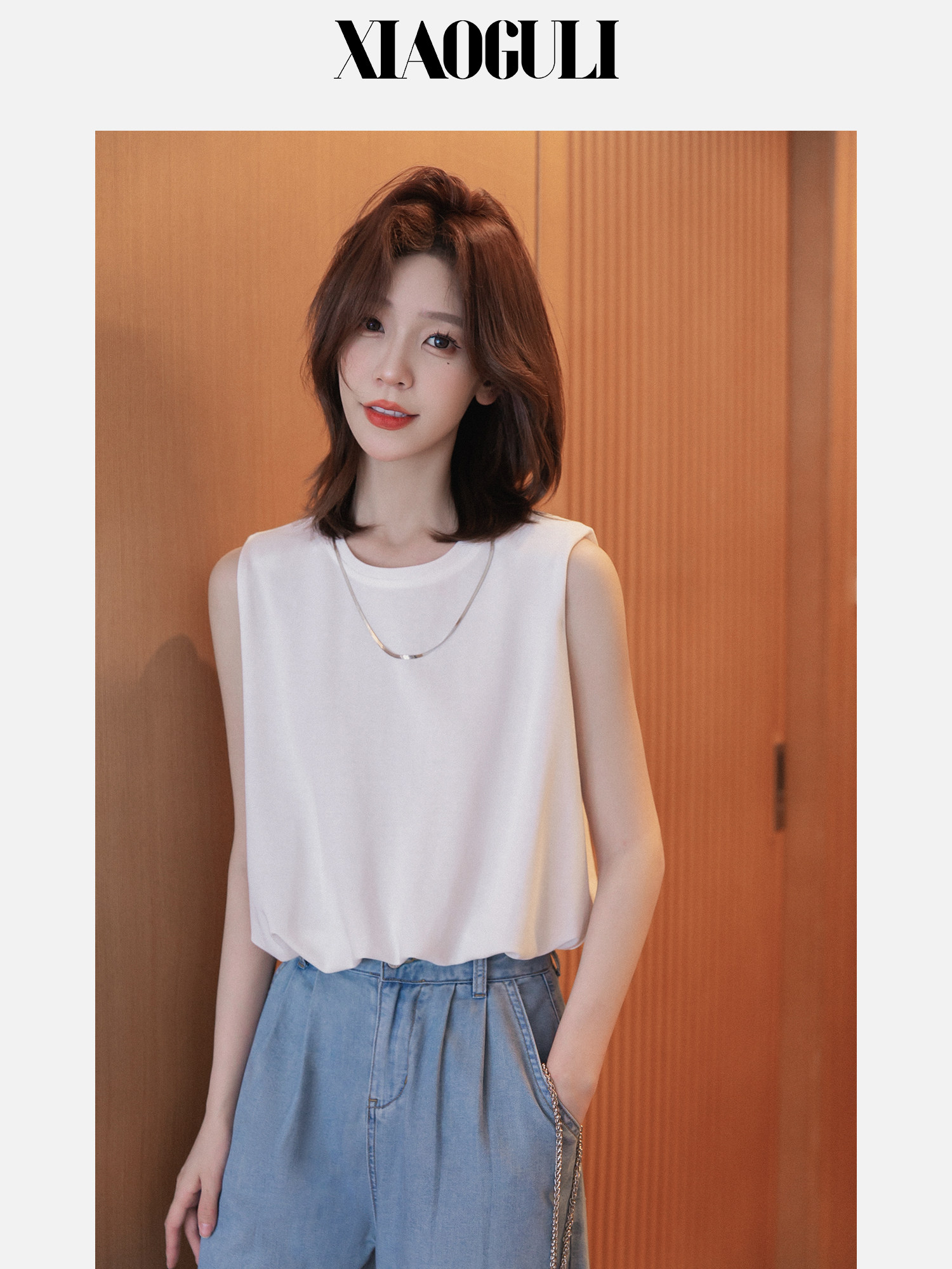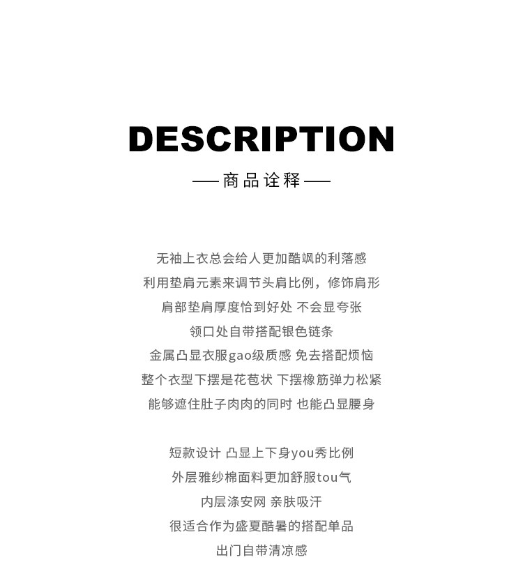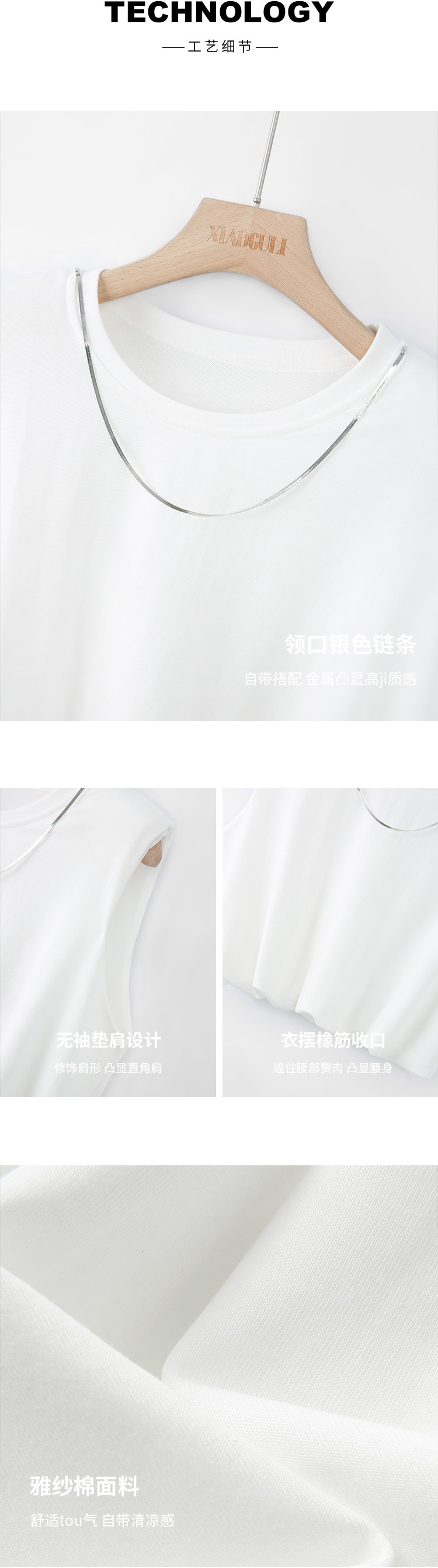 小谷粒 Модная дизайнерская черная цепь с круглым воротником без рукавов, летняя футболка, тренд сезона