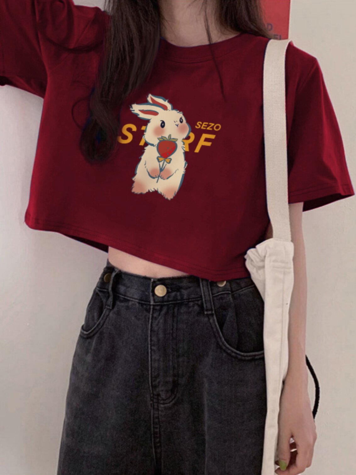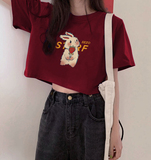 Бордовая дизайнерская короткая футболка, тренд сезона, подходит для подростков
