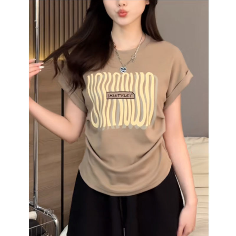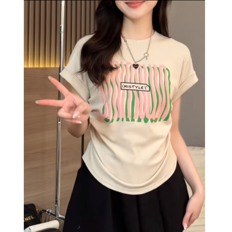 Летняя футболка Feifei с короткими рукавами и принтом оверсайз на правом плече, толстый мм, ниша на талии, плиссированный асимметричный топ