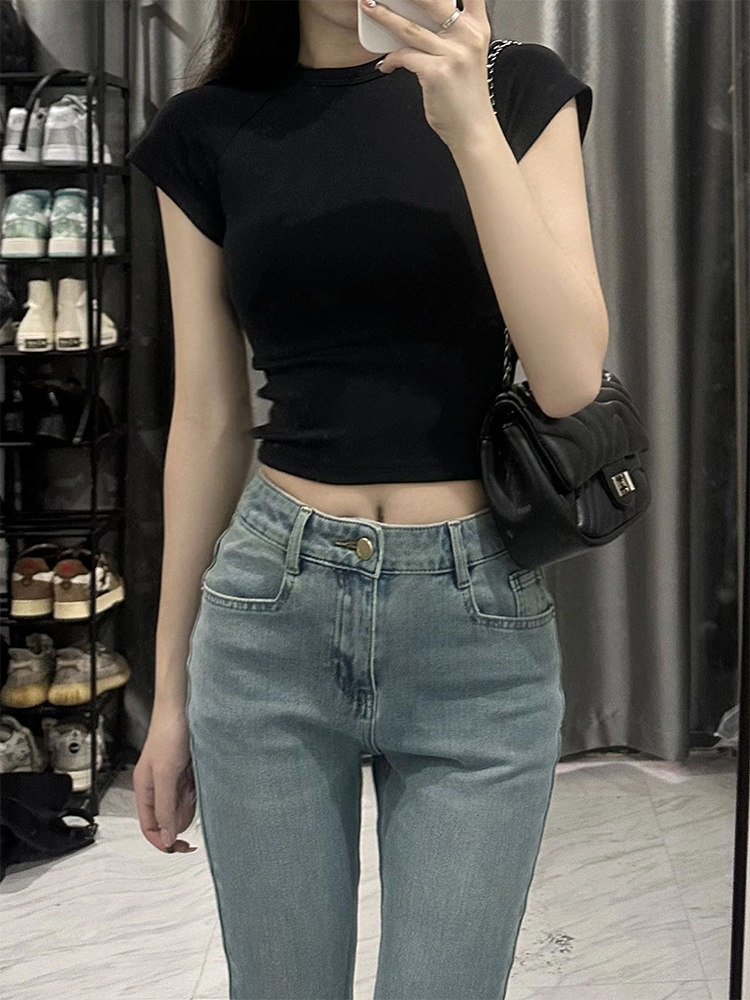 Футболка с винтажным цветом y2k Florar Cross Top Women Women Slim Slim