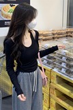 Черный летний короткий базовый приятный телу лонгслив, облегающий крой