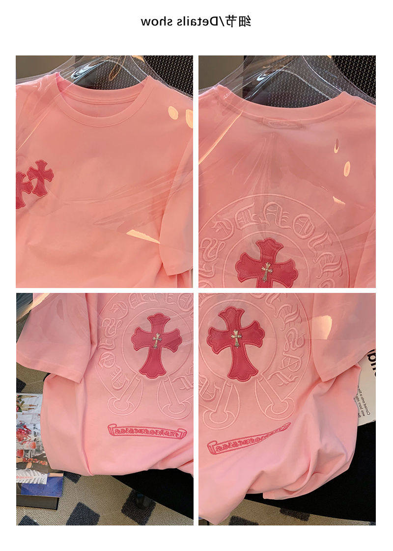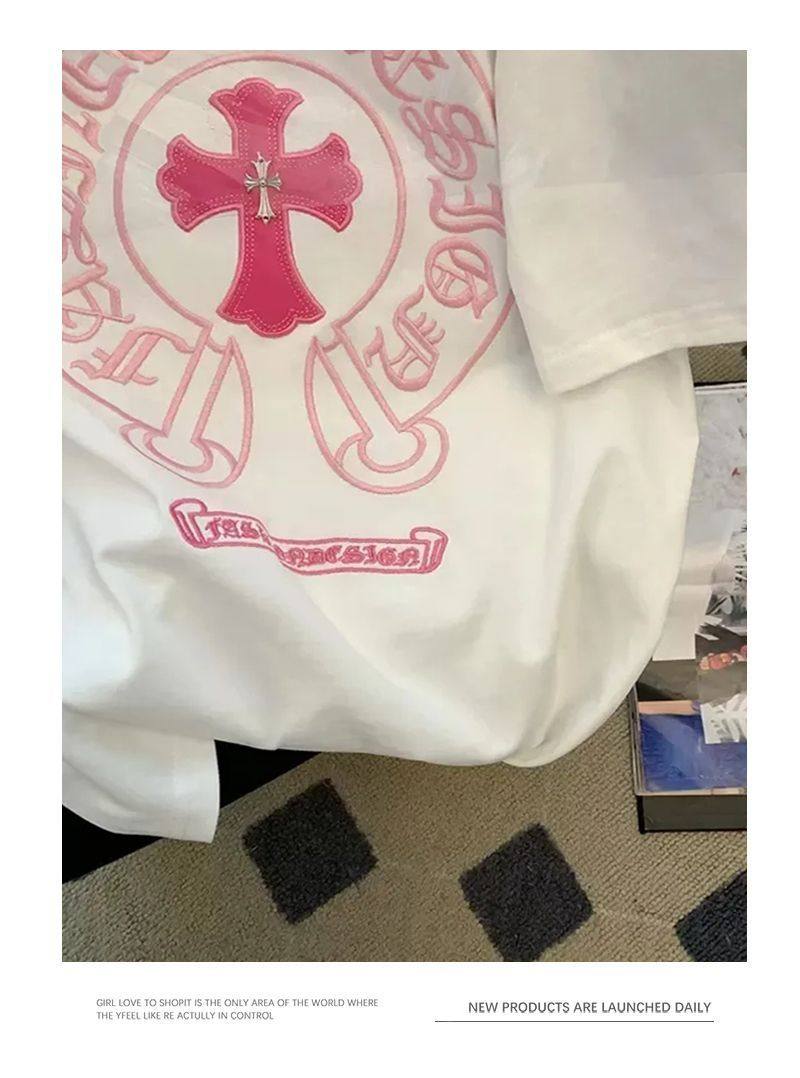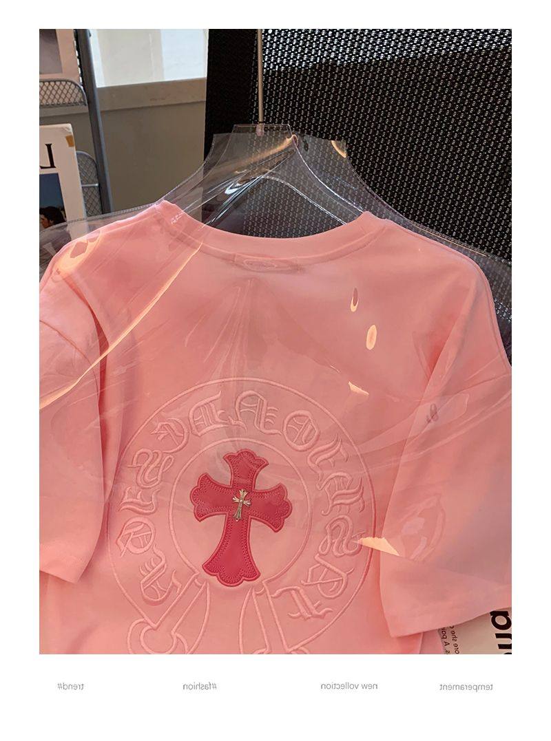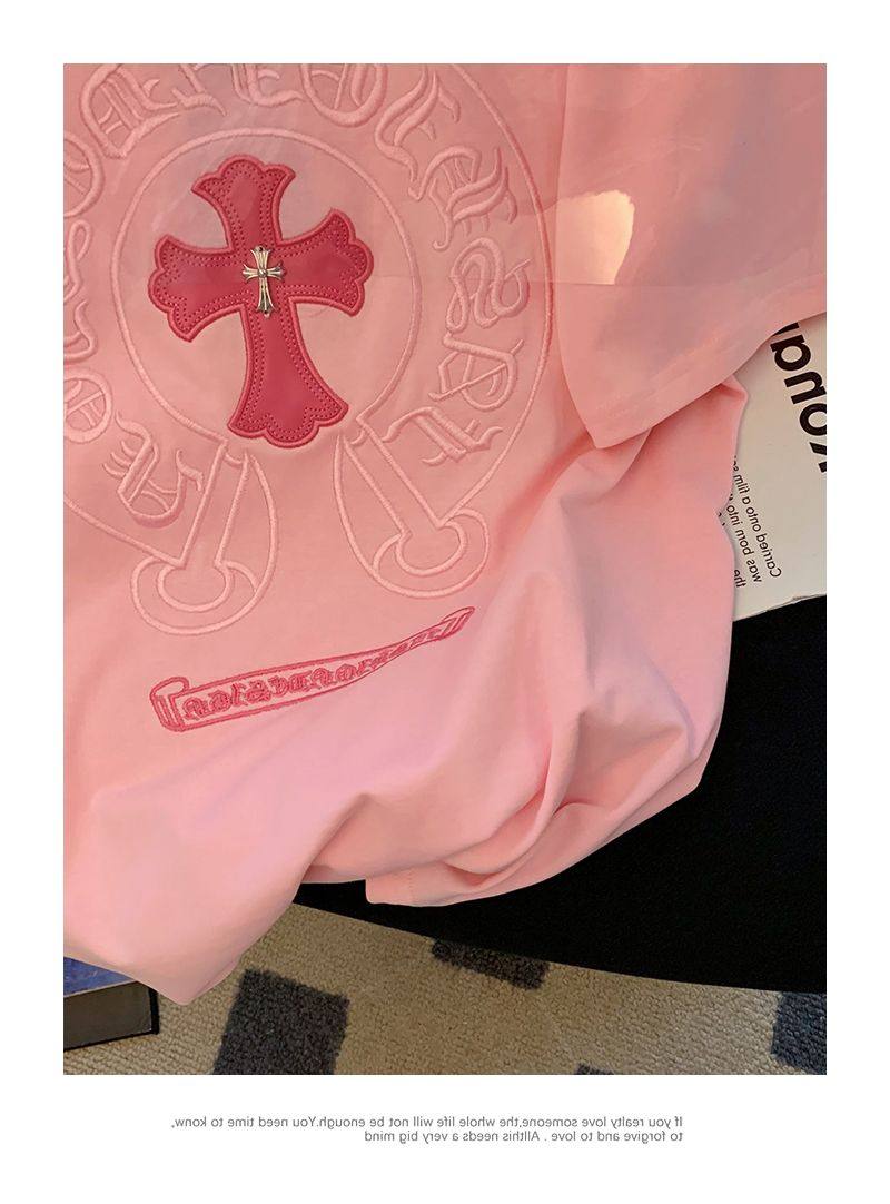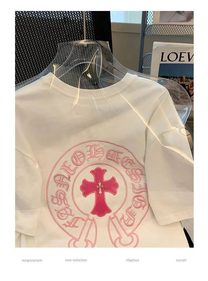 Розовая летняя хлопковая брендовая футболка с коротким рукавом для влюбленных, с вышивкой, большой размер