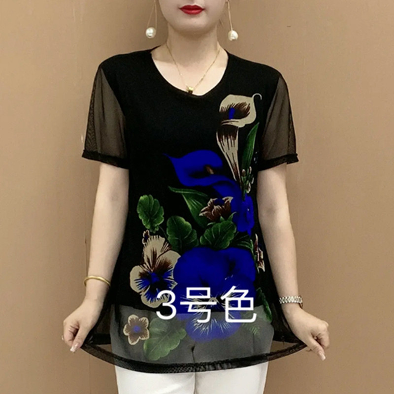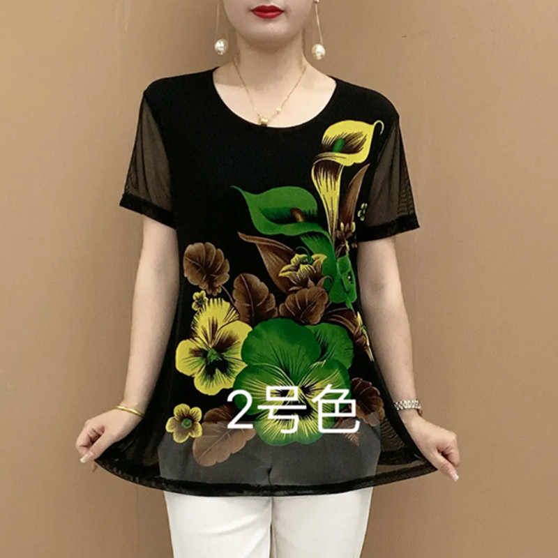 Летняя модная футболка с коротким рукавом для матери, для среднего возраста, свободный крой