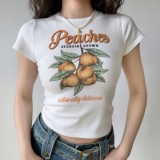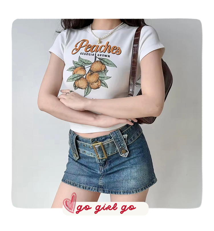 Go Girl Go Белая футболка, ростомер, европейский стиль, облегающий крой, высокая талия