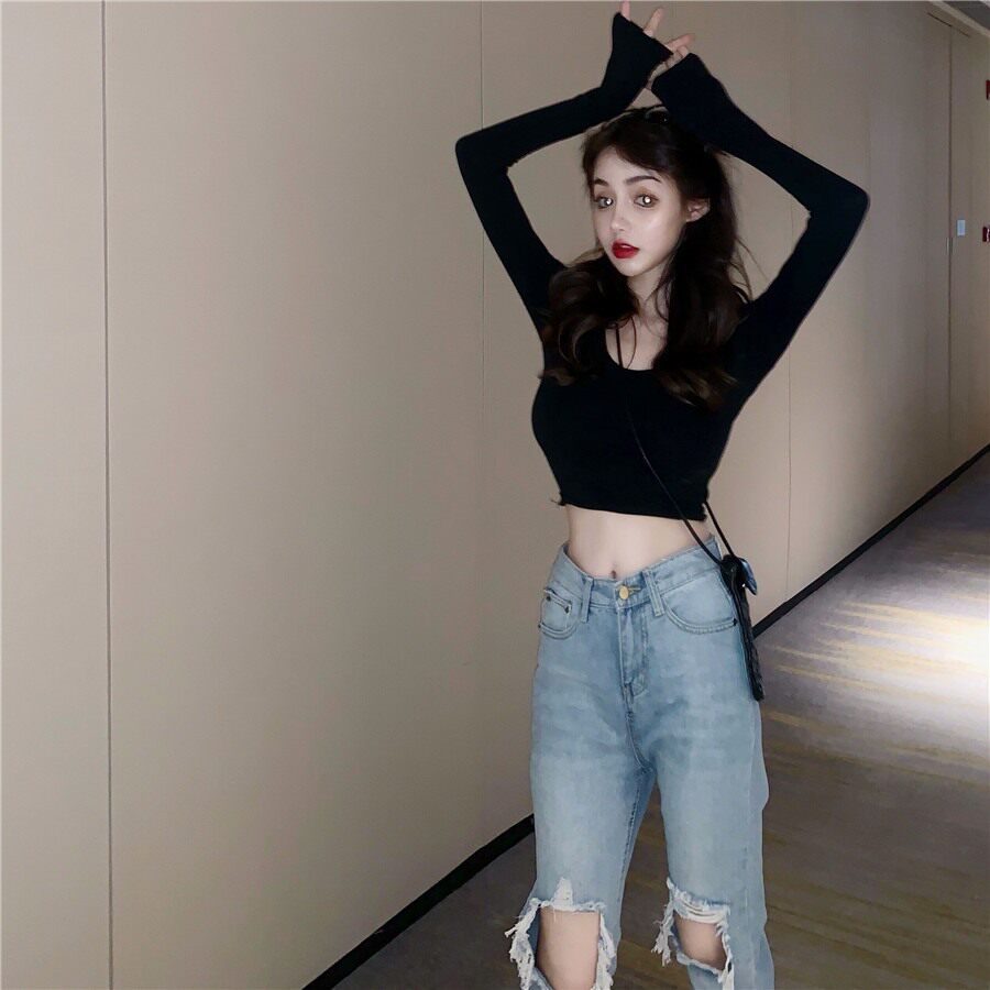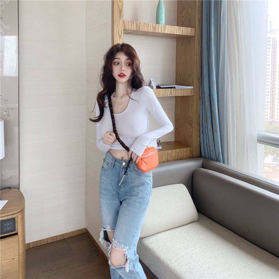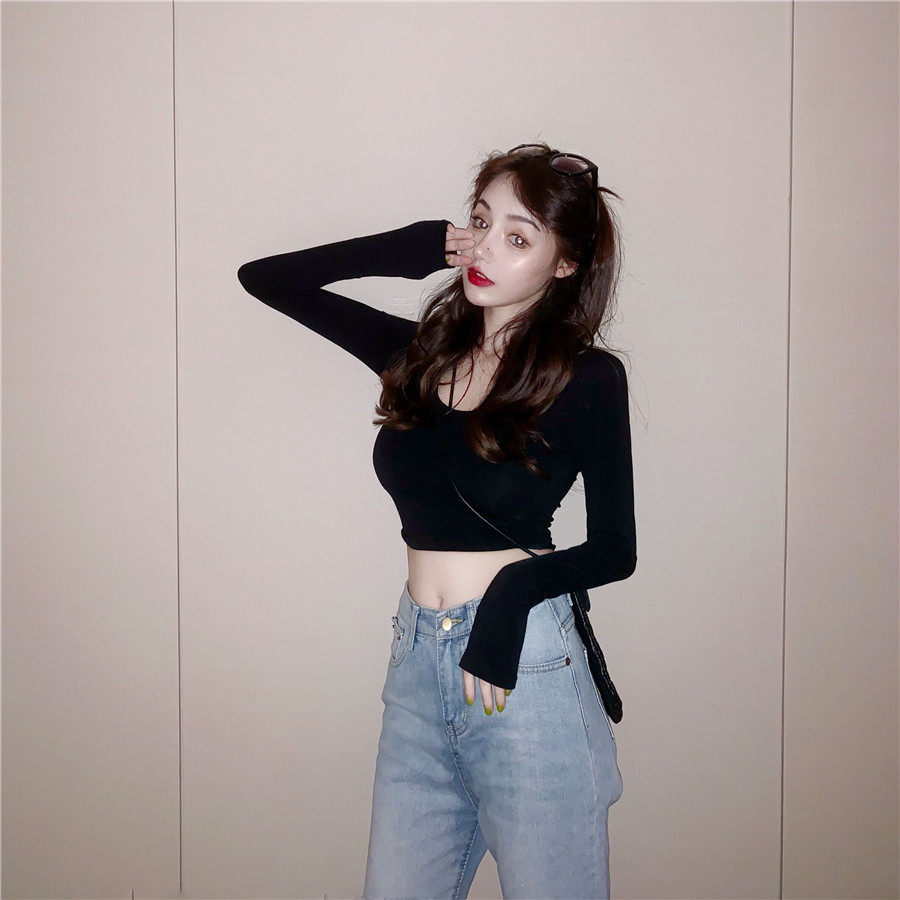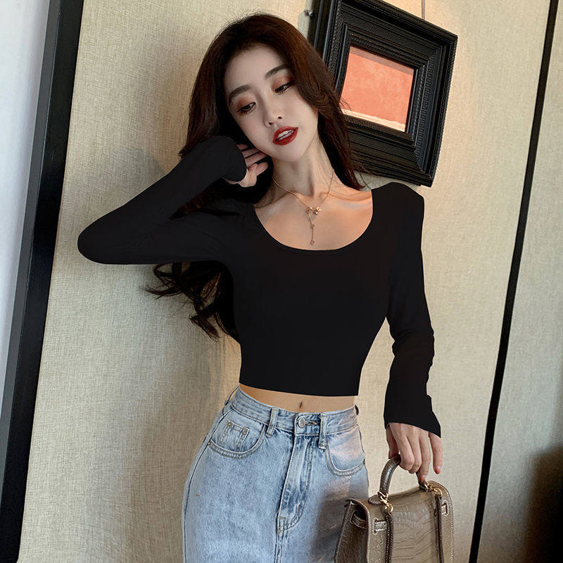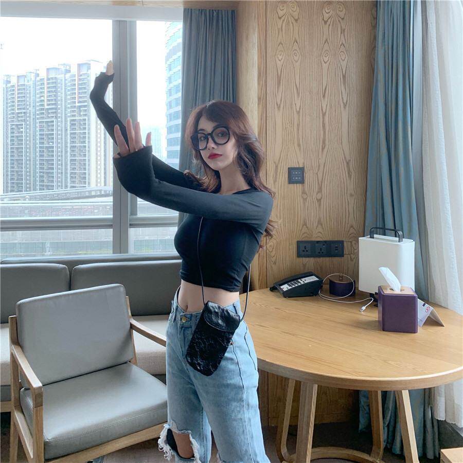 Короткий осенний лонгслив, танцующая футболка, в обтяжку, по фигуре