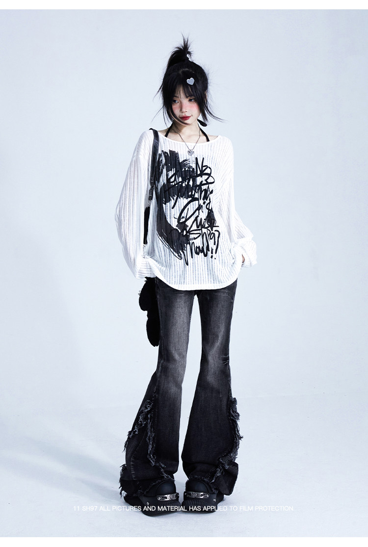 11SH97 Белый летний легкий и тонкий трикотажный лонгслив, защита от солнца, свободный крой