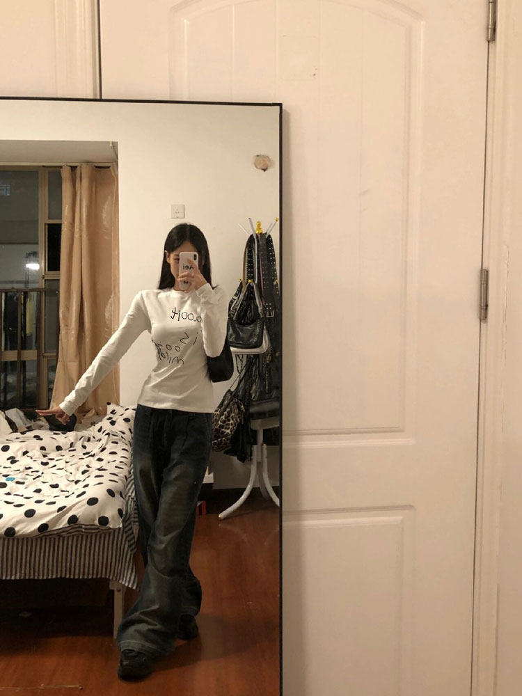 Ретро осенний базовый приятный телу сексуальный лонгслив, в американском стиле, в обтяжку