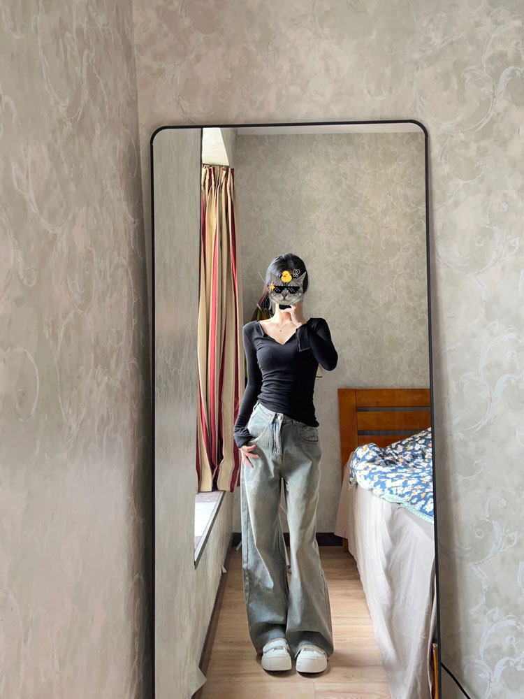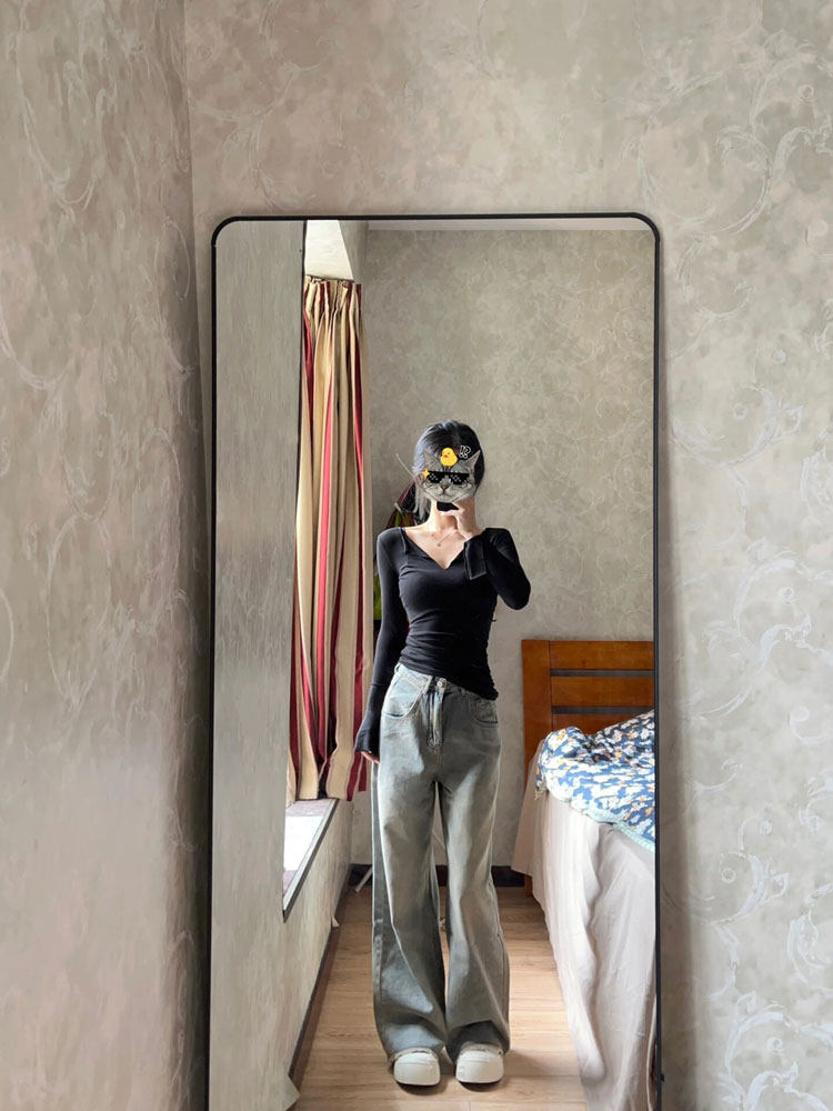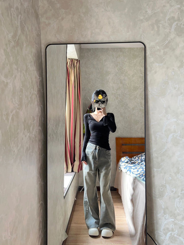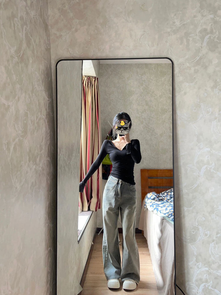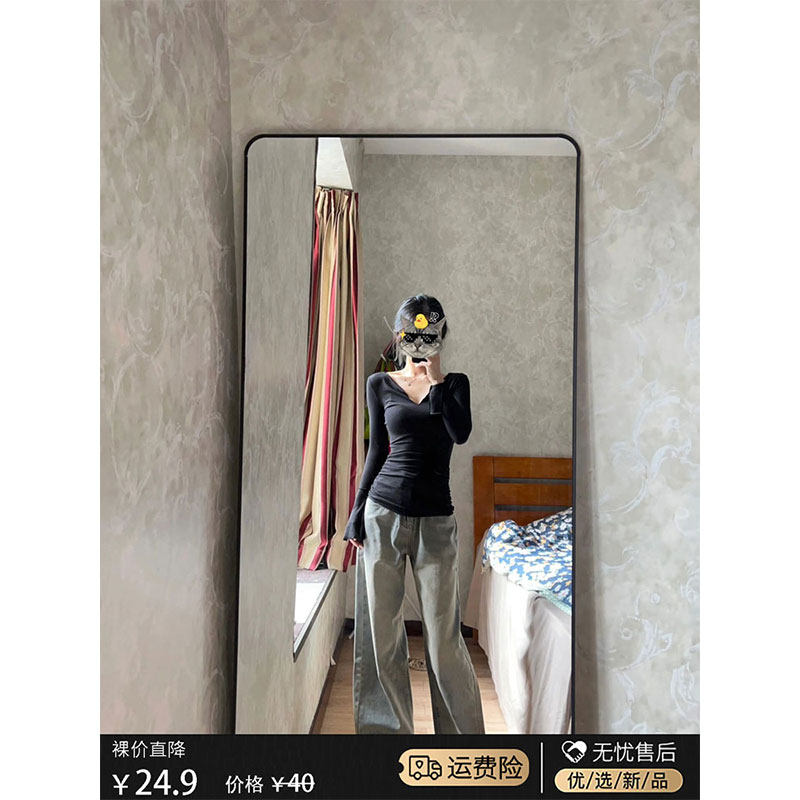 Цветной осенний тонкий базовый приятный телу приталенный лонгслив, V-образный вырез, в обтяжку