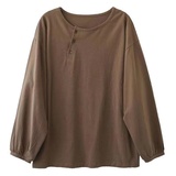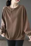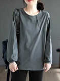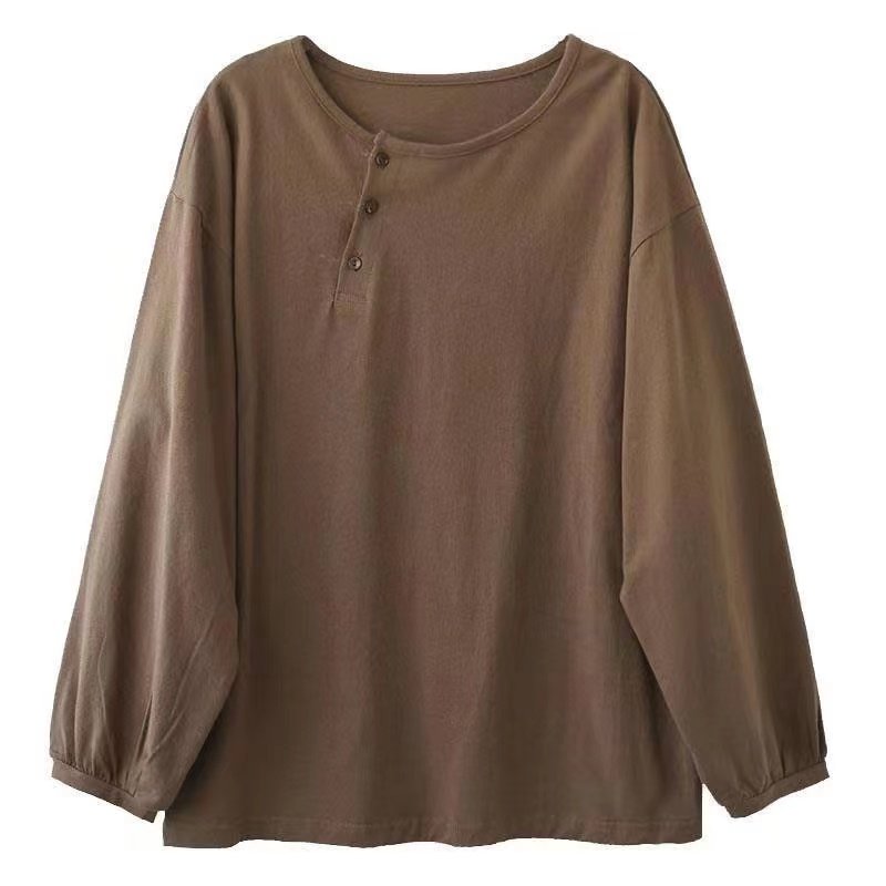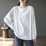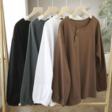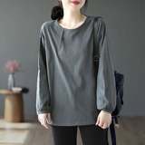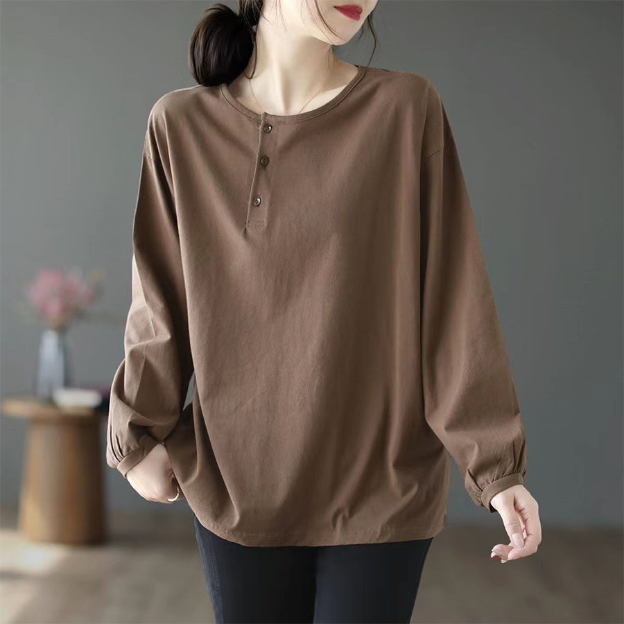 Хлопковый осенний базовый приятный телу лонгслив для отдыха с круглым воротником