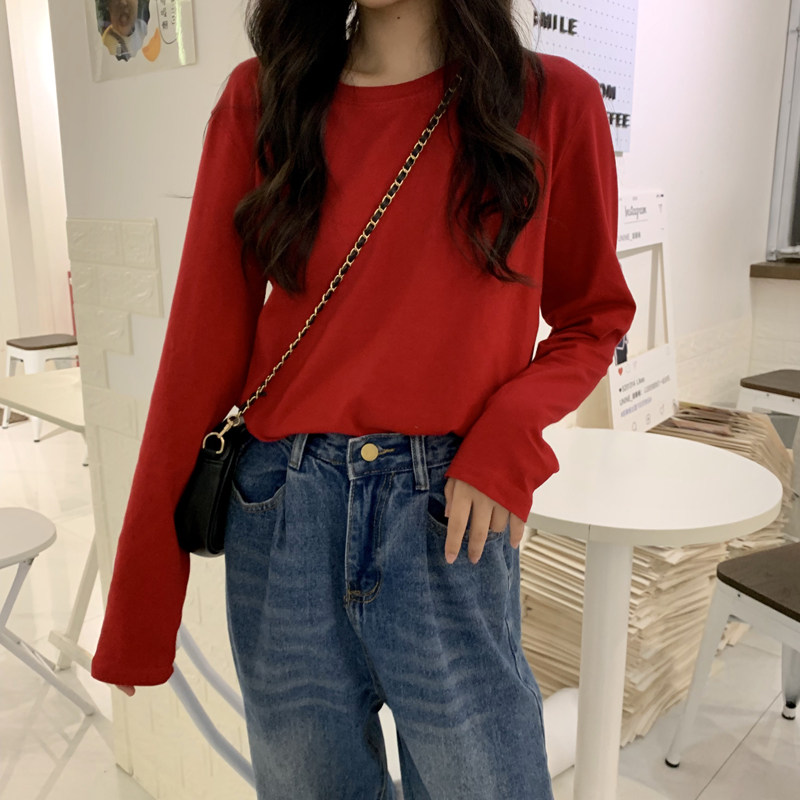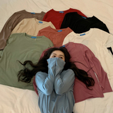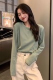 Tide, однотонный белый базовый приятный телу зеленый лонгслив с круглым воротником, осенний, оверсайз