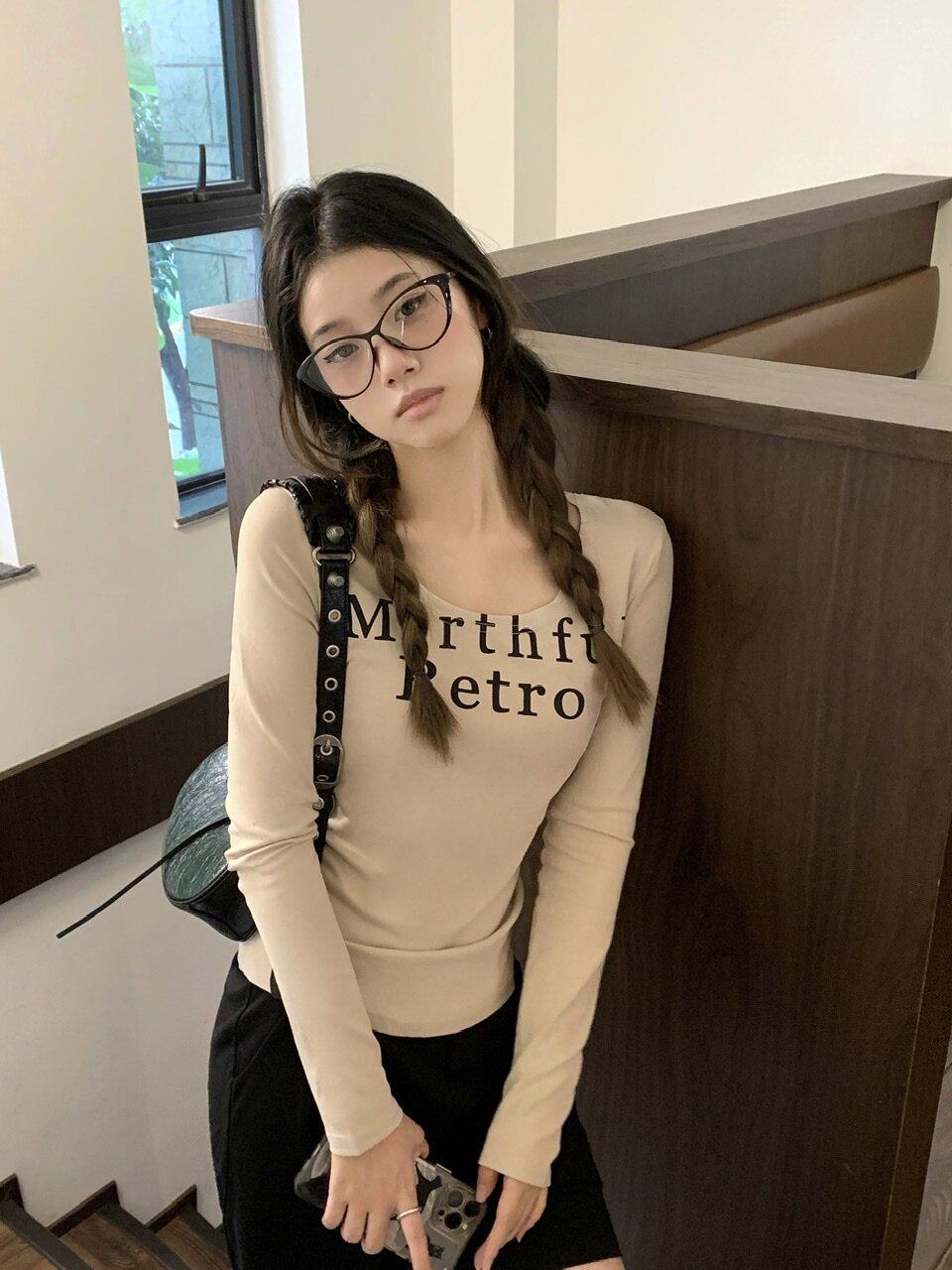 Ретро базовый лонгслив, футболка, в американском стиле, в обтяжку, по фигуре