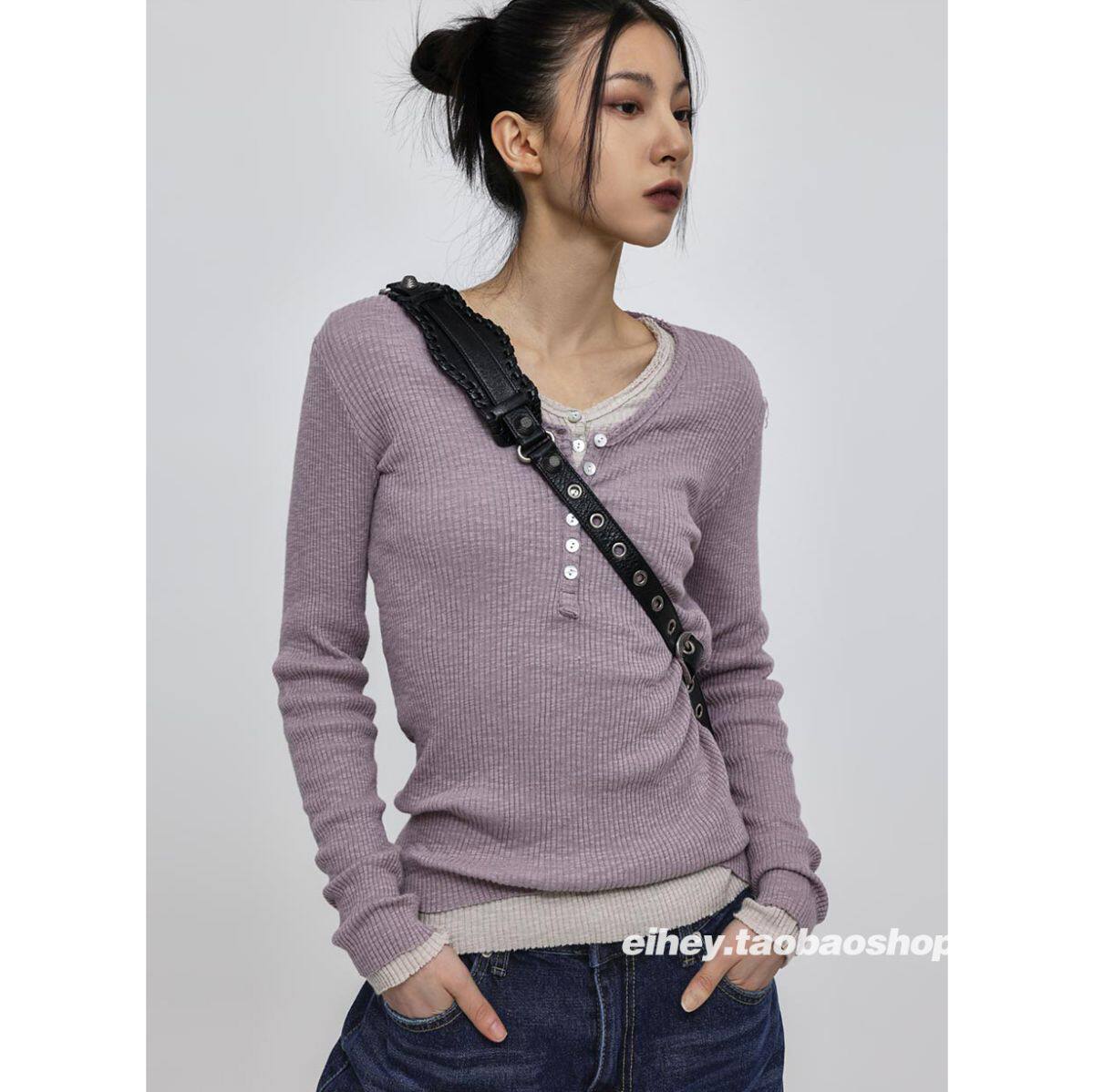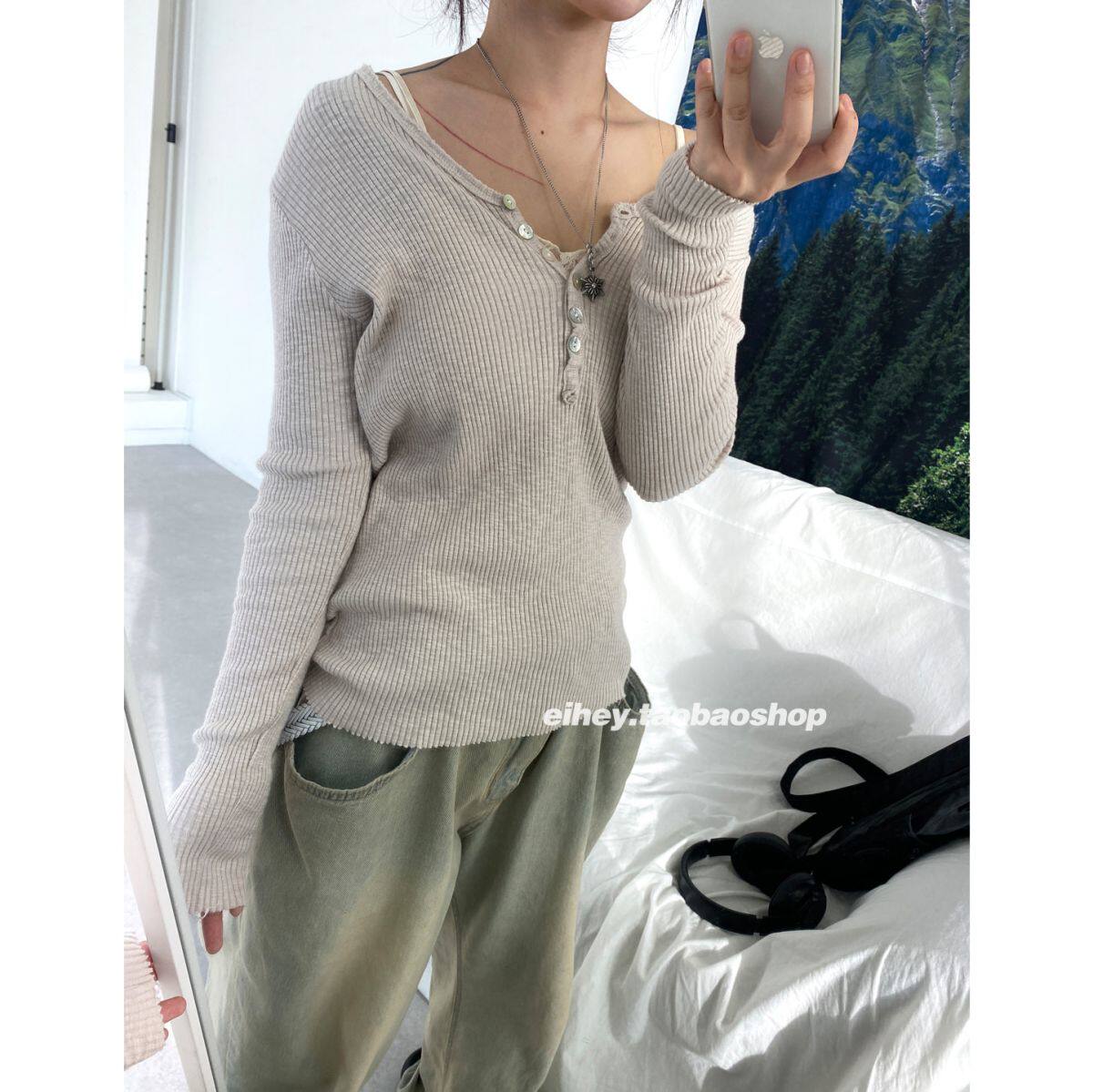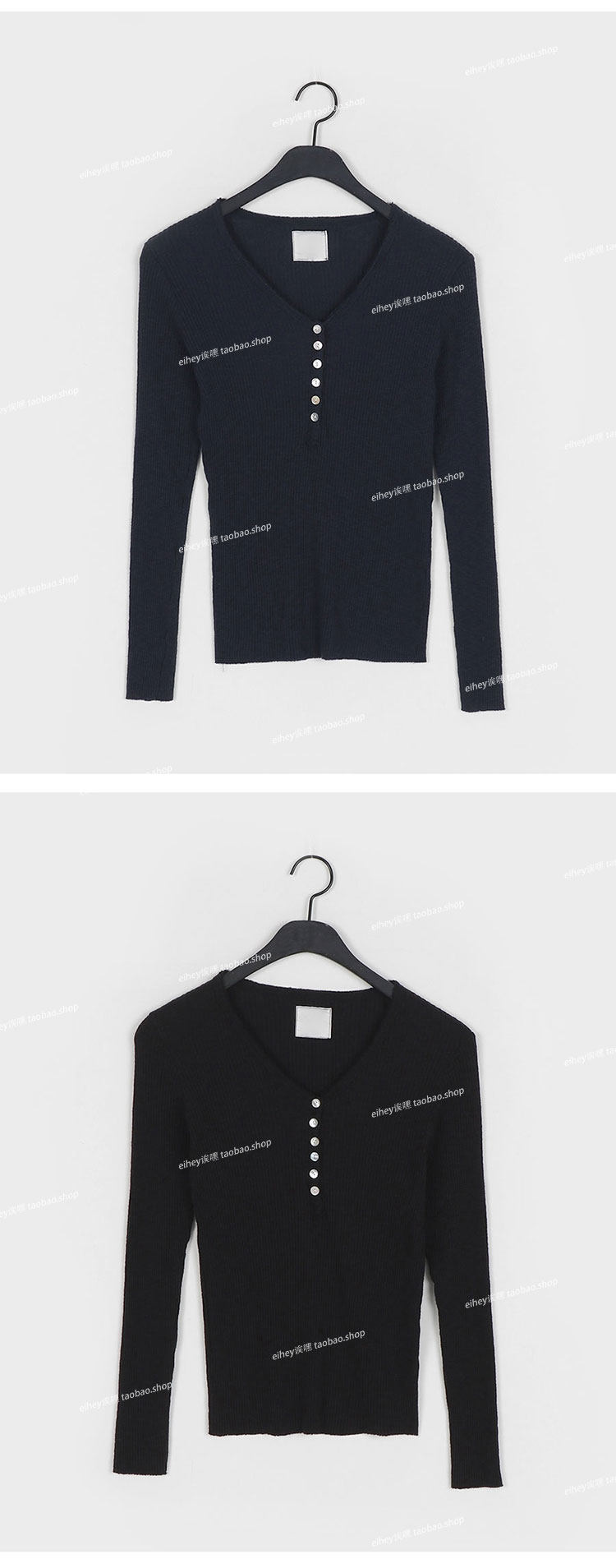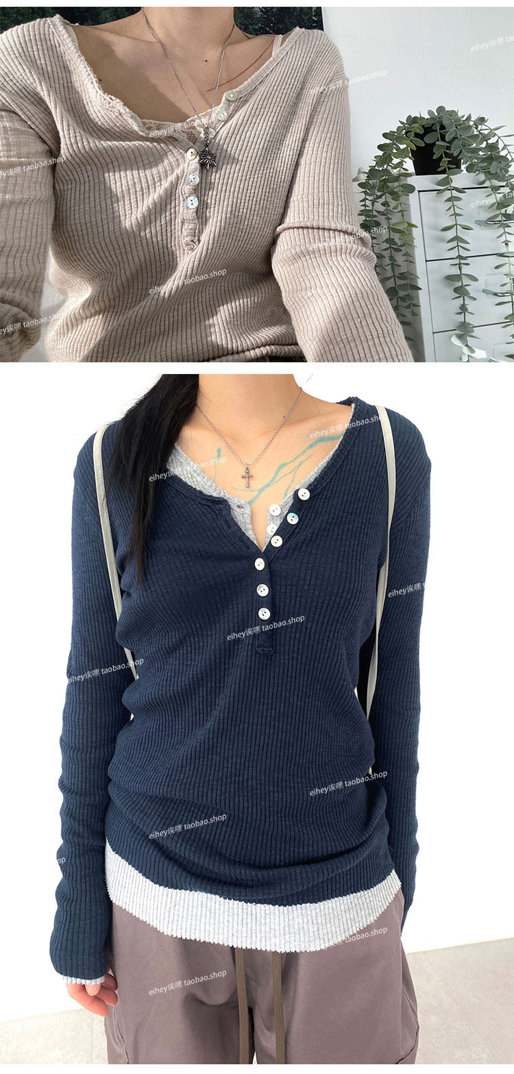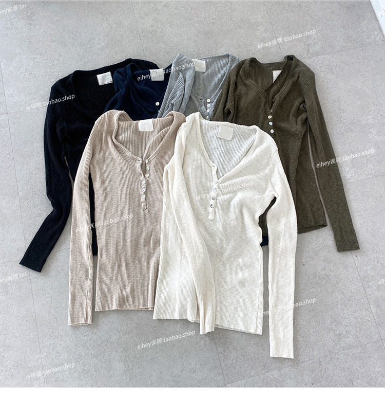 eihey Осенний тонкий приталенный трикотажный лонгслив, трикотажная футболка, V-образный вырез