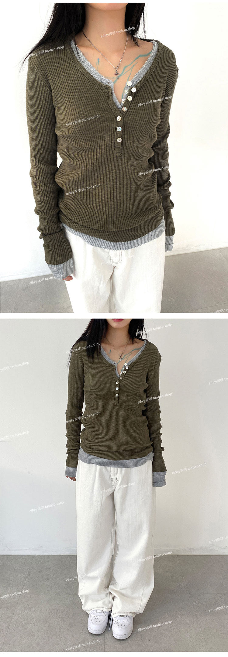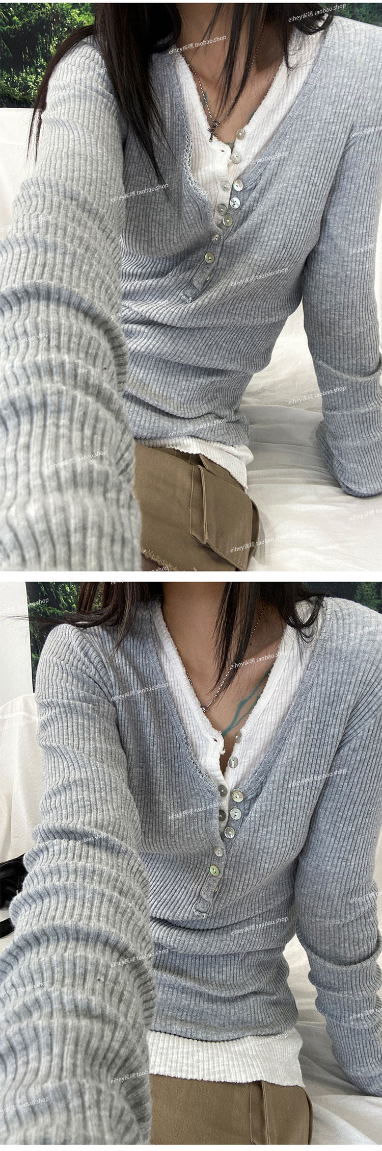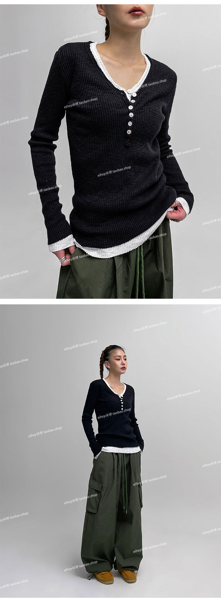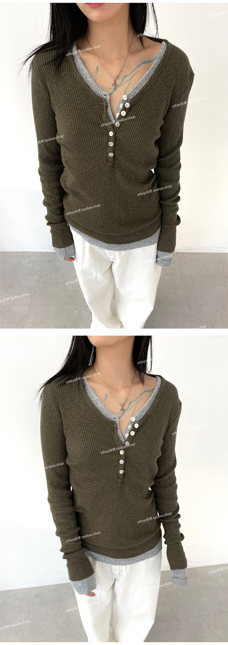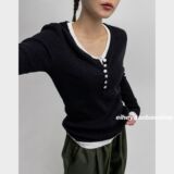 eihey Осенний тонкий приталенный трикотажный лонгслив, трикотажная футболка, V-образный вырез