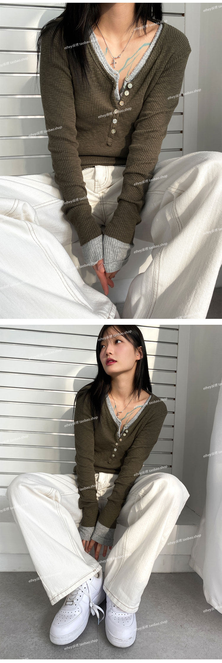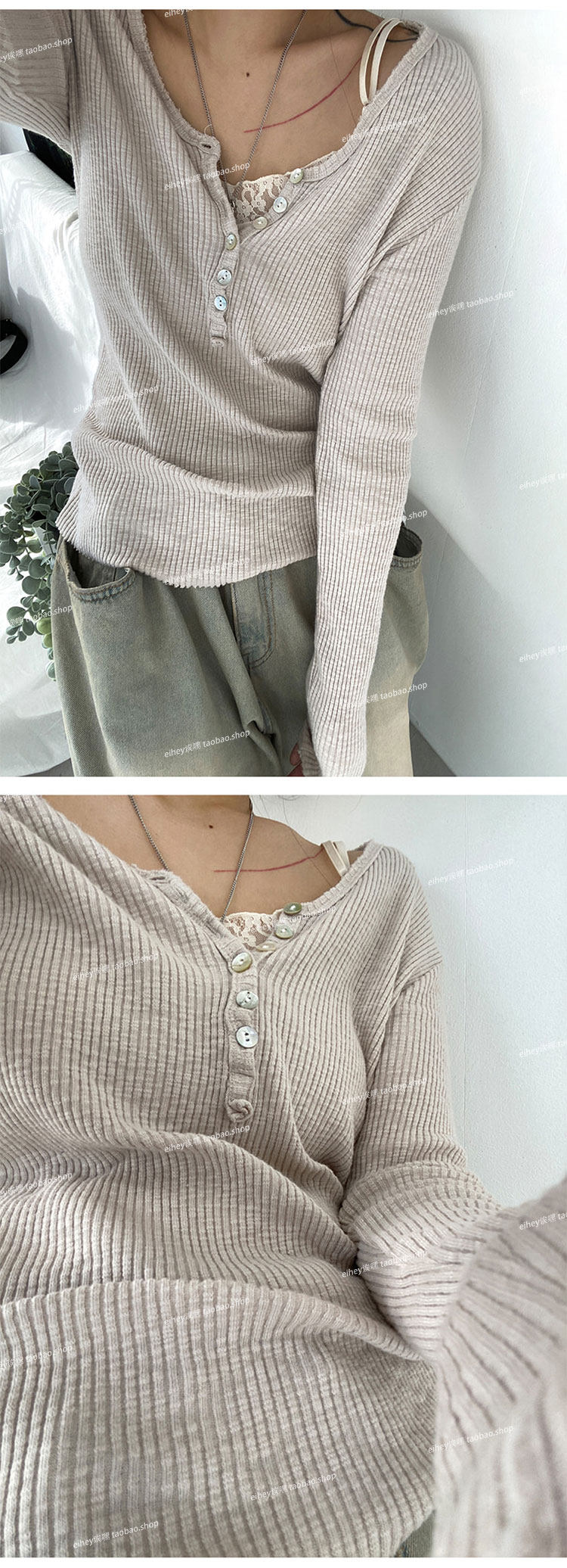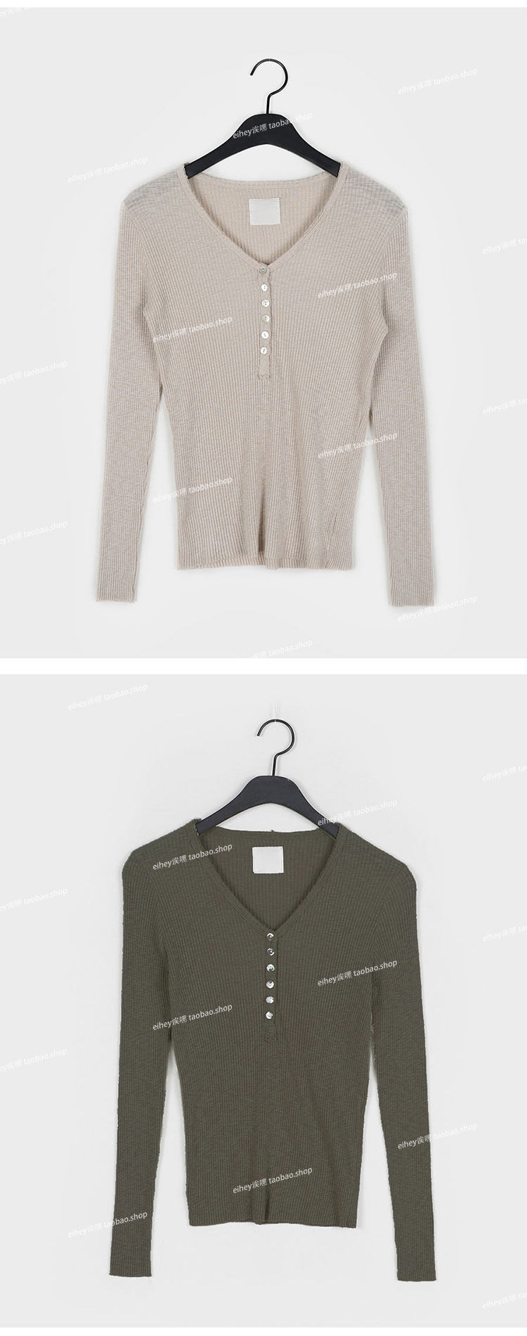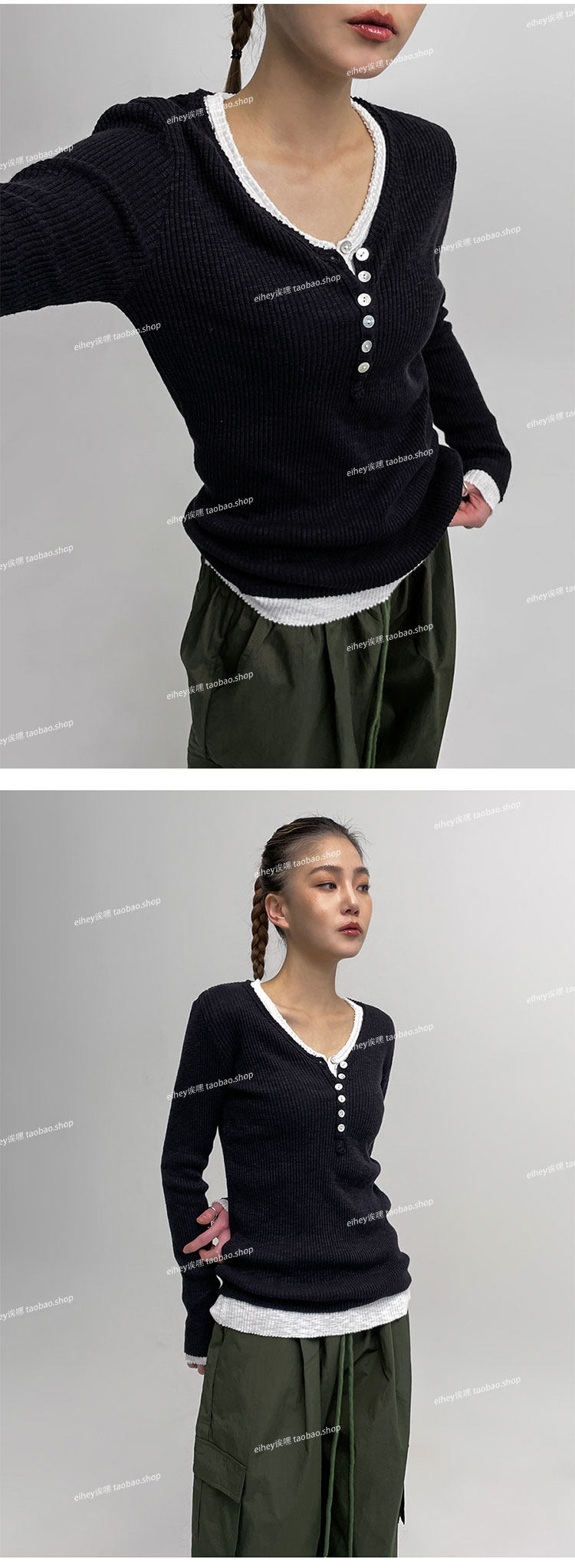eihey Осенний тонкий приталенный трикотажный лонгслив, трикотажная футболка, V-образный вырез