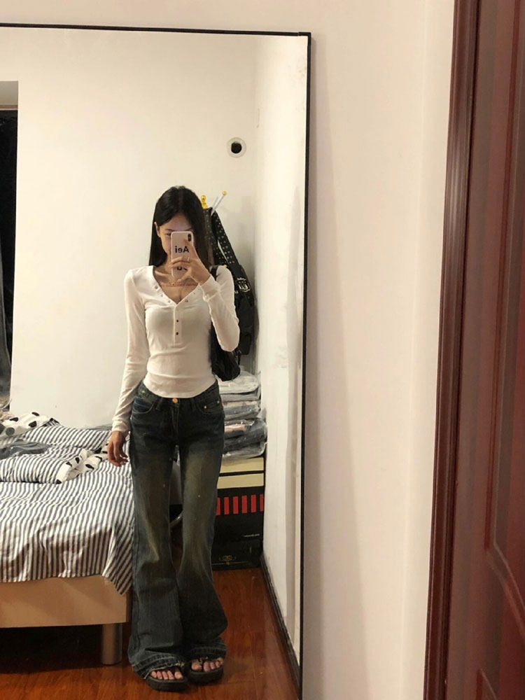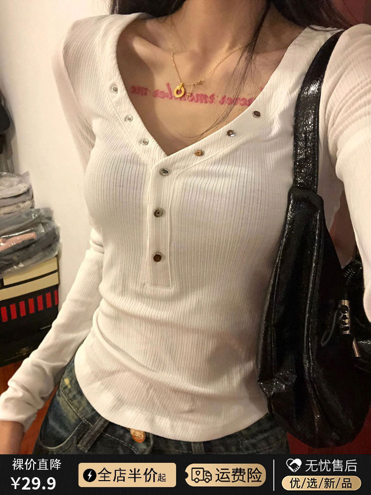 Белый приталенный корсет, базовый приятный телу осенний сексуальный лонгслив, V-образный вырез