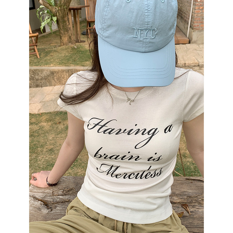 Летняя ретро футболка, в американском стиле, короткий рукав, облегающий крой