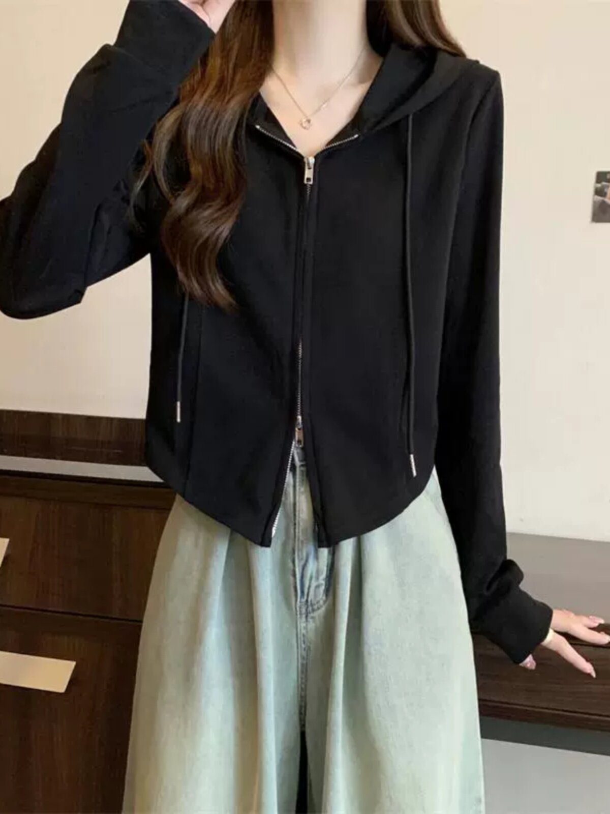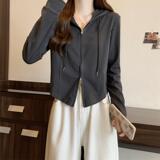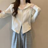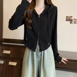 - L (100-120 кот) [чайный воздух/американский ретро/грушевидное тело ношение/короткое топ/художественное студенческое молоко/индивидуальность/сердце/ключица/простой/милый/большой размер жирного мм Big Show Thinty Lint Jacket】