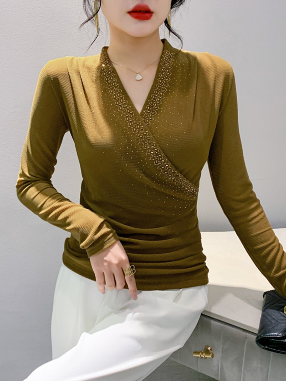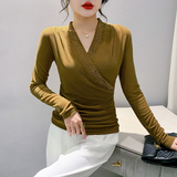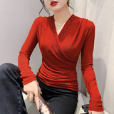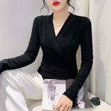 Демисезонный лонгслив, модный базовый приятный телу корсет, V-образный вырез, облегающий крой, в западном стиле