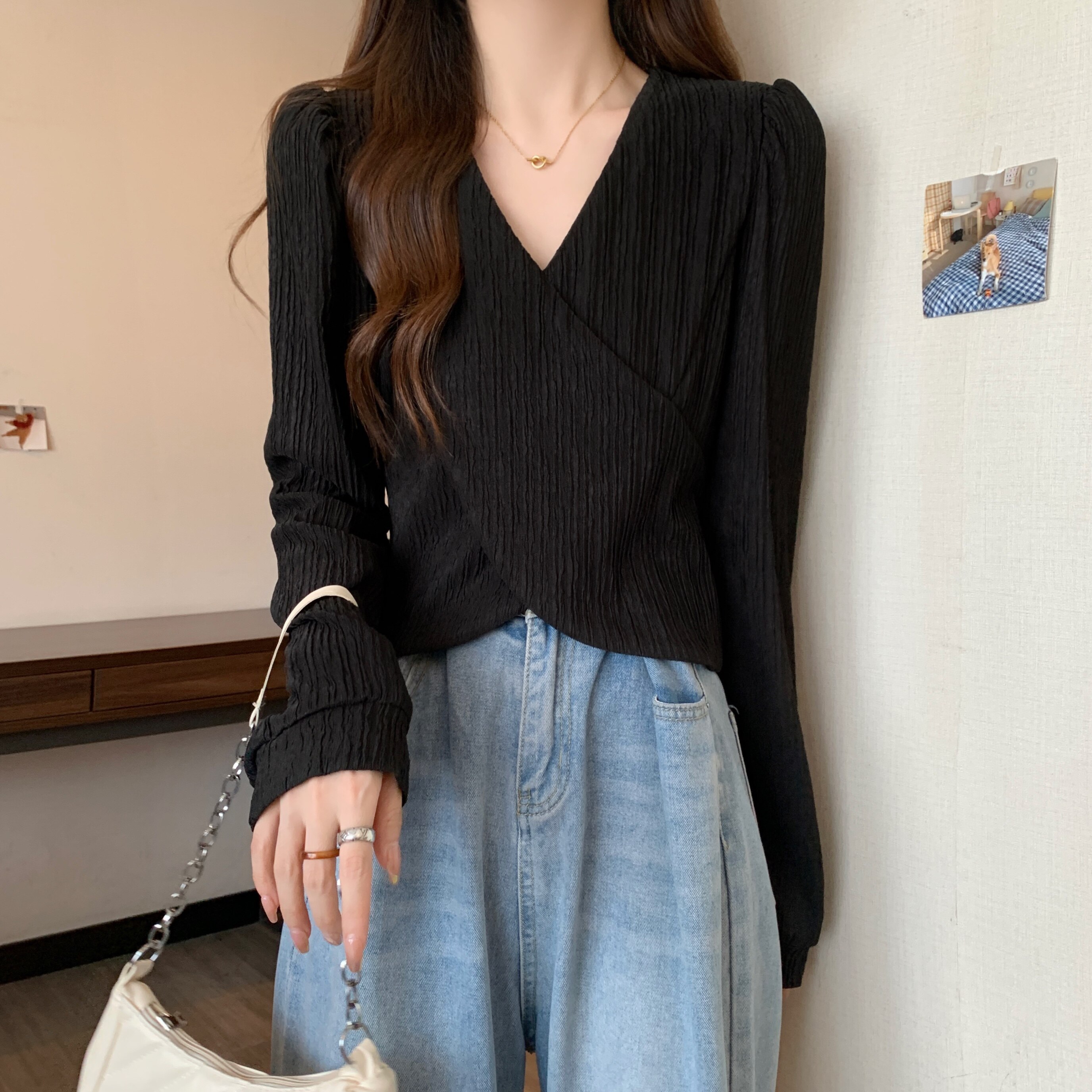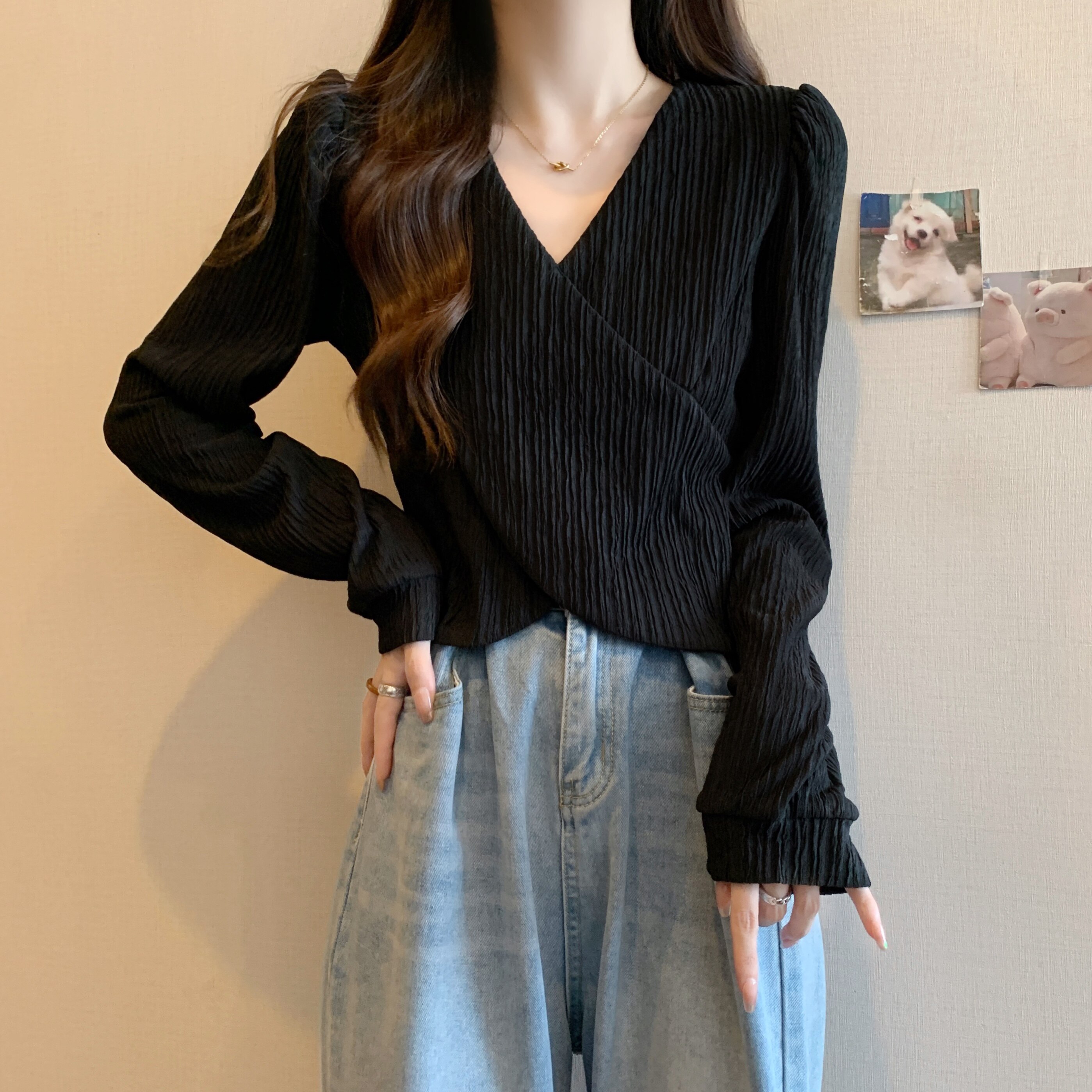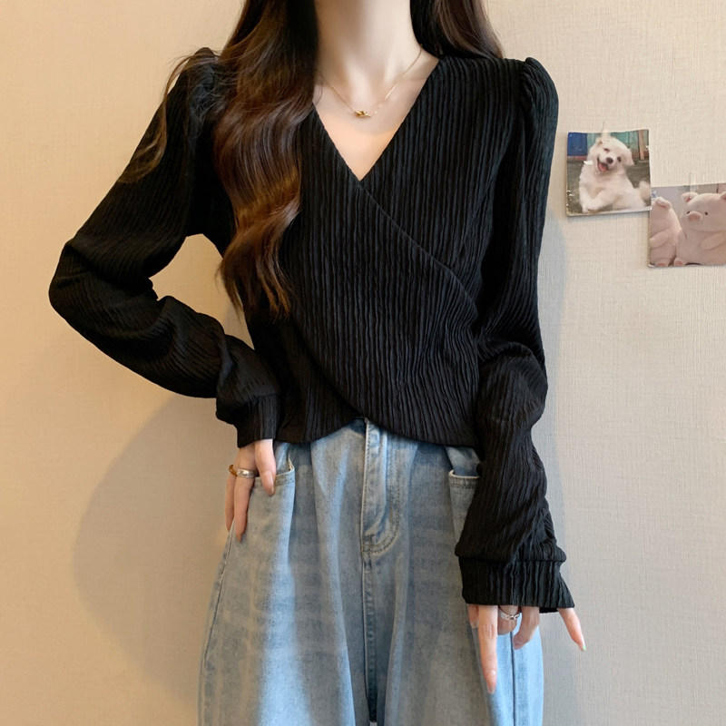 Базовый приятный телу весенний дизайнерский короткий лонгслив, большой размер, тренд сезона, V-образный вырез