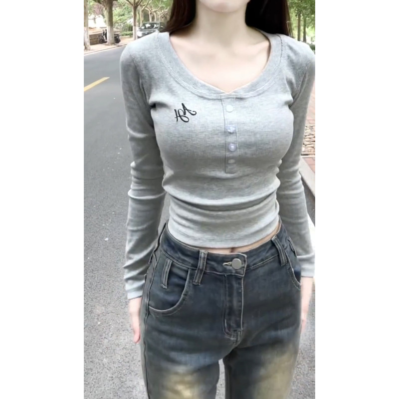 Осенний приталенный короткий базовый приятный телу лонгслив, в американском стиле