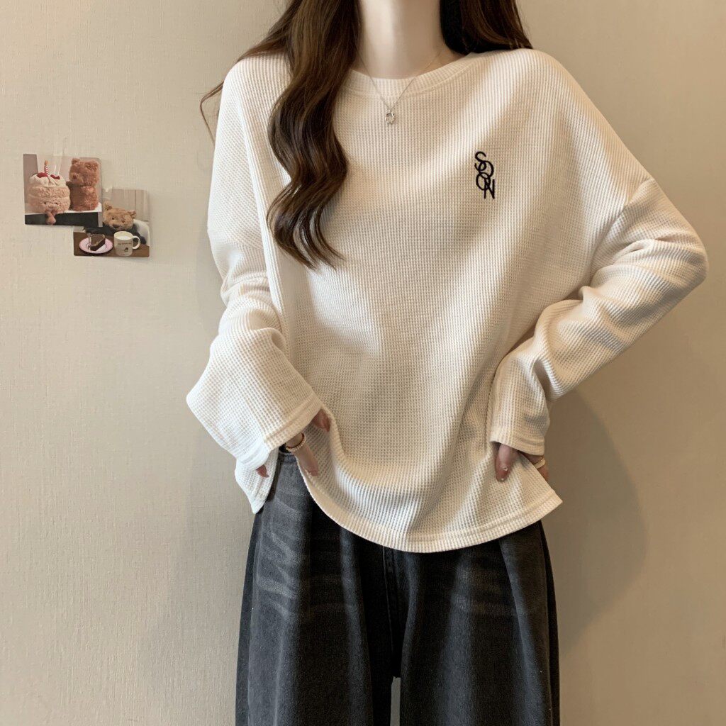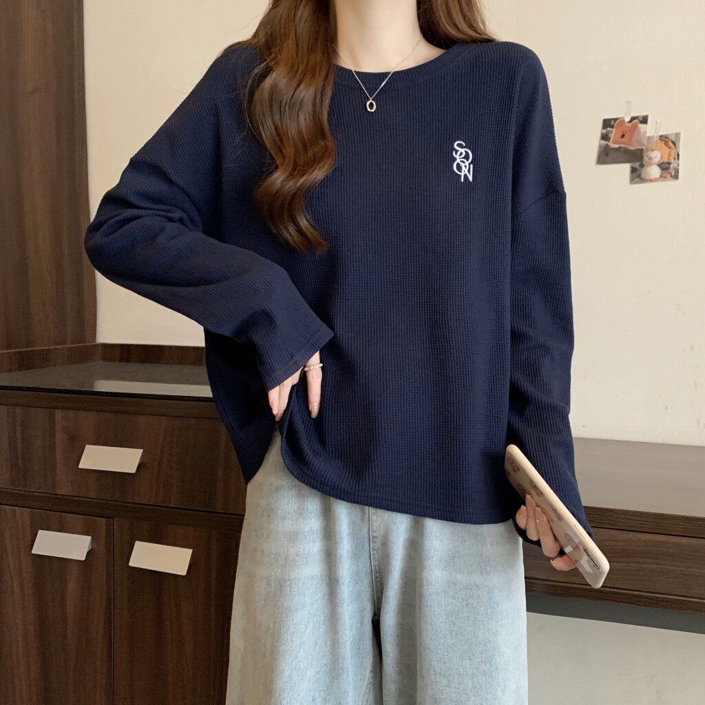 Весенний базовый приятный телу лонгслив для отдыха, большой размер, свободный крой