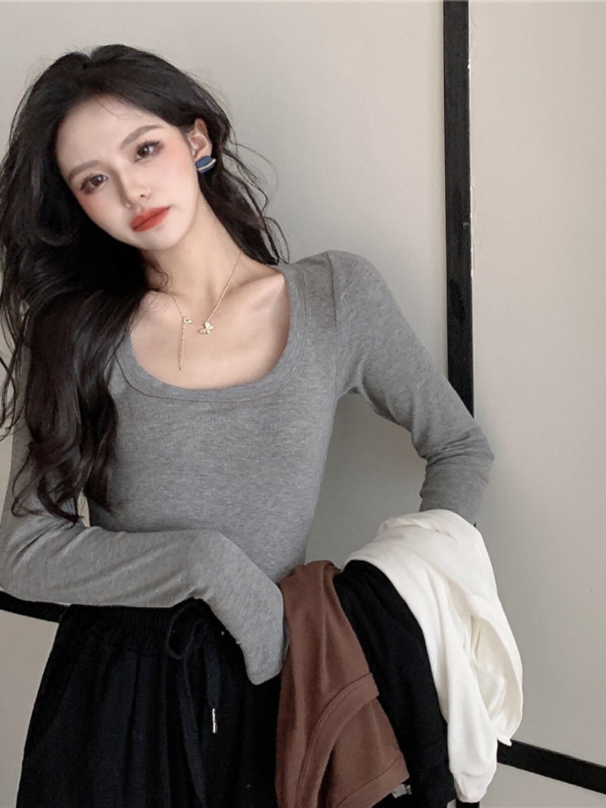 Весенний цветной эластичный базовый лонгслив, футболка, 2024 года, по фигуре, облегающий крой