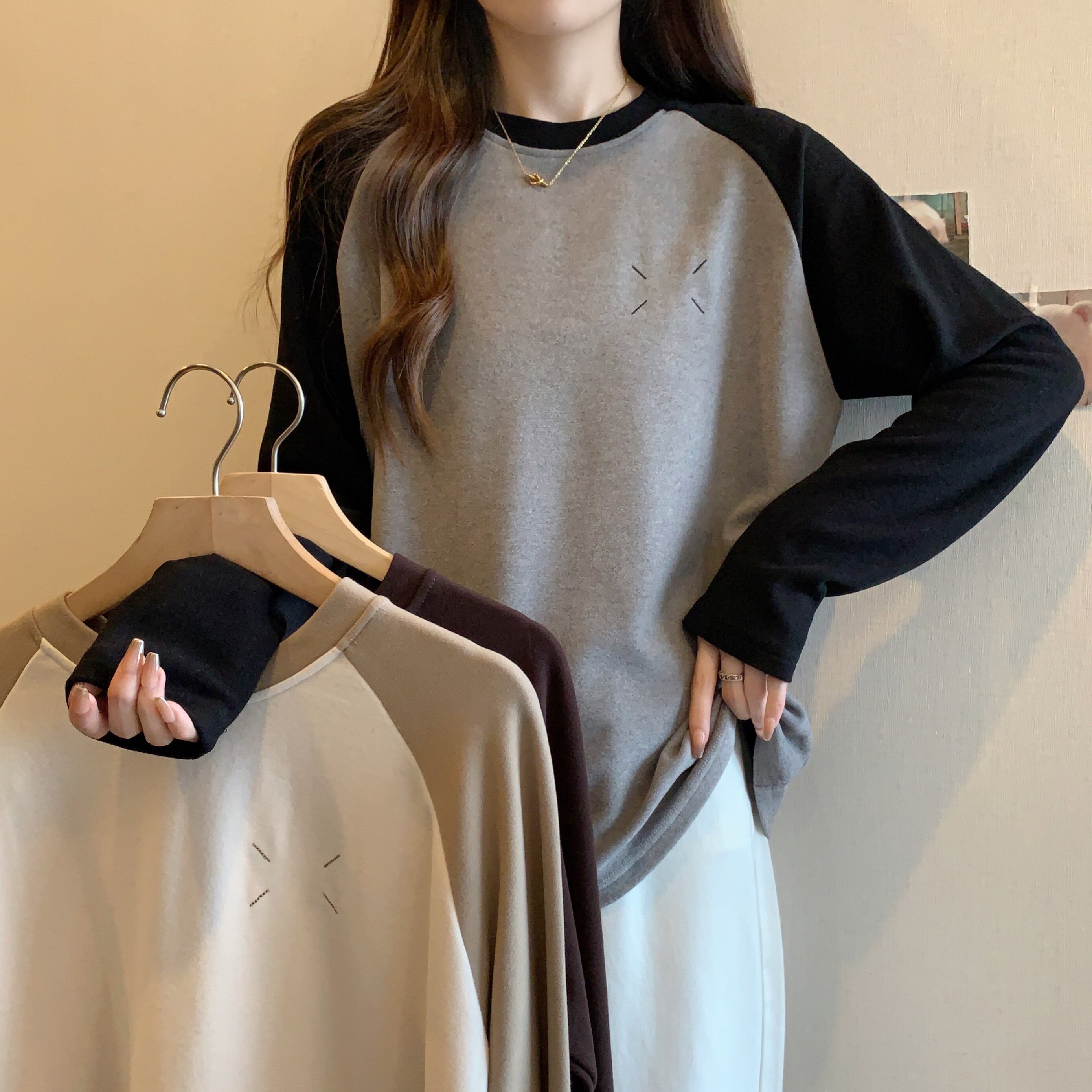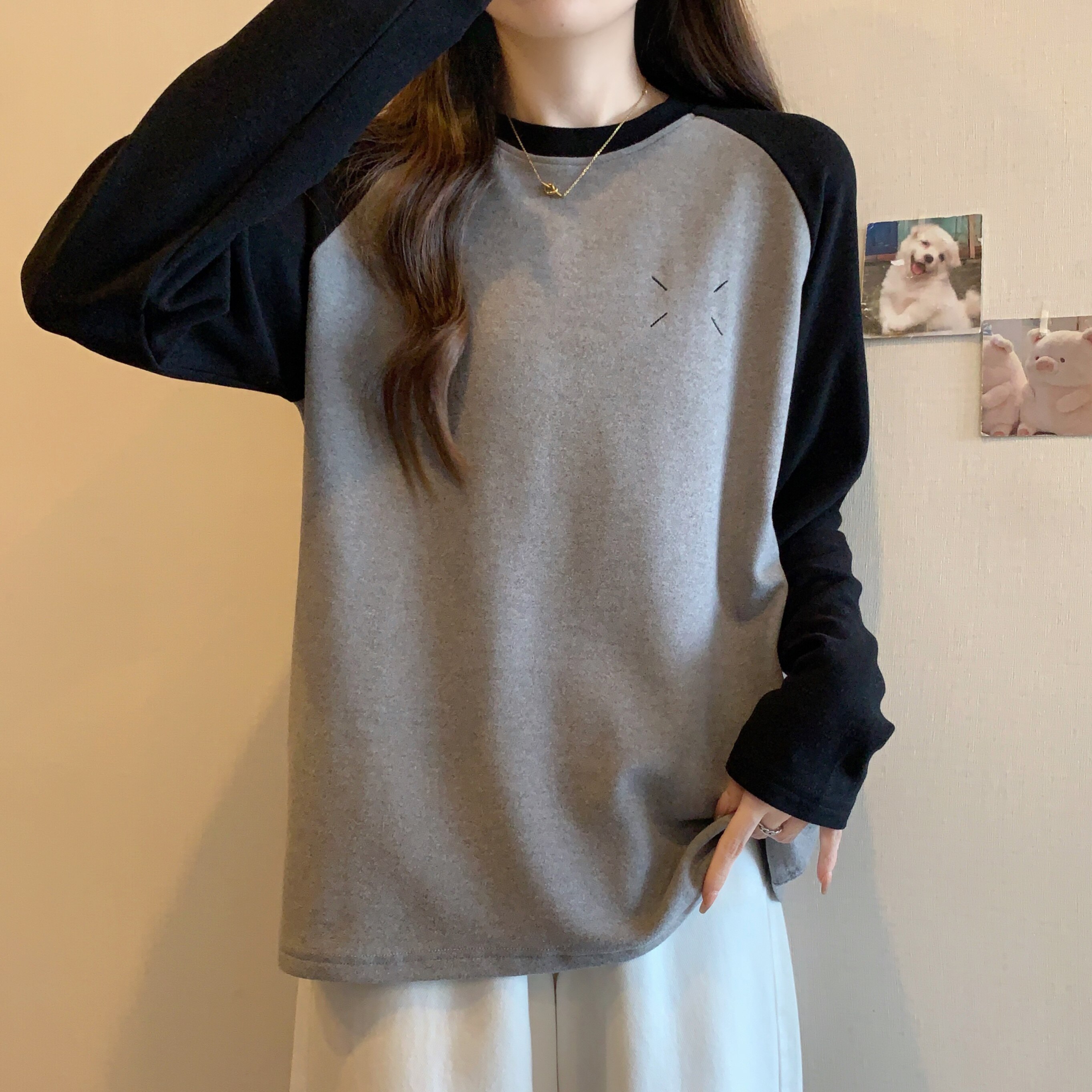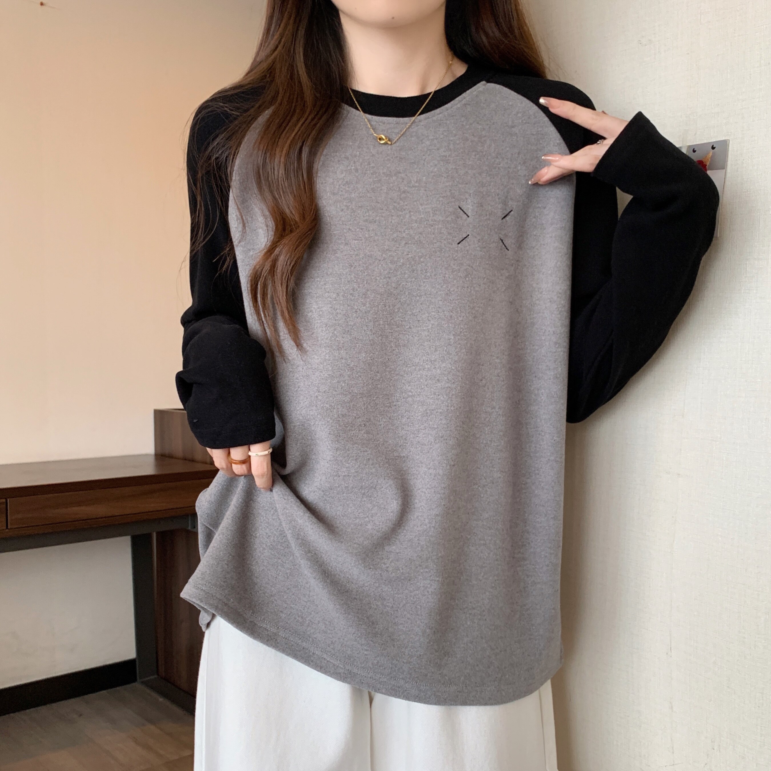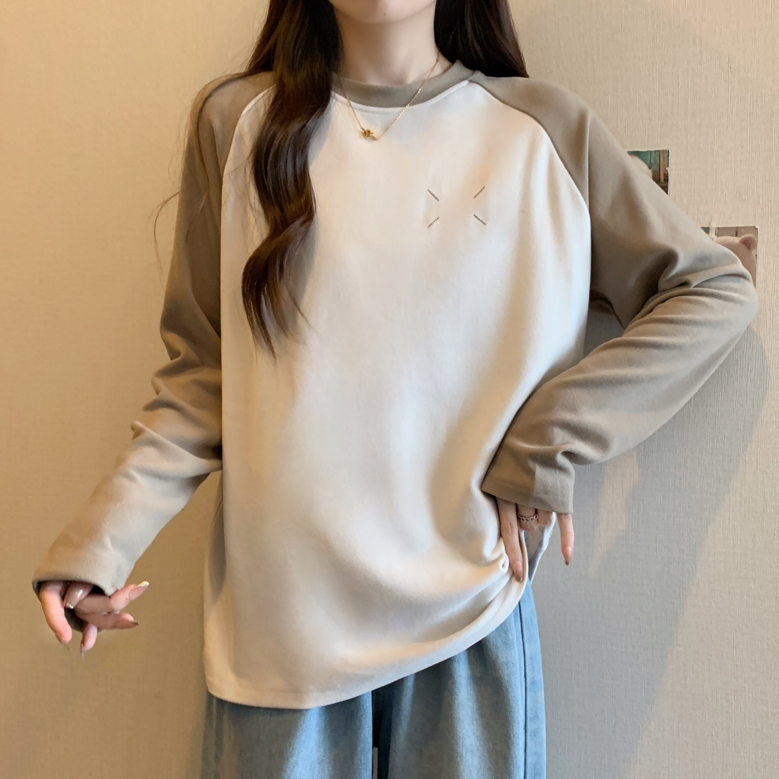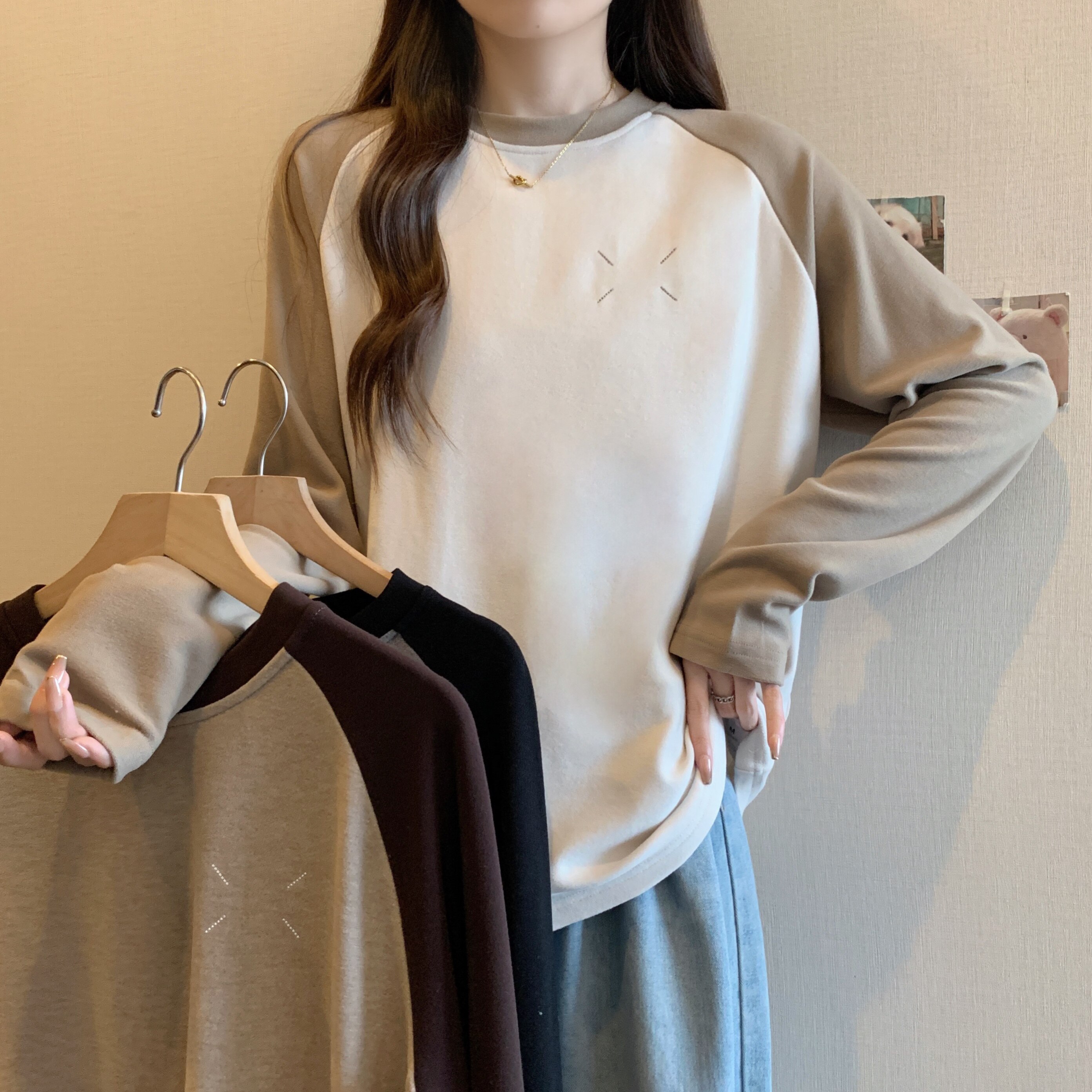 Весенний бархатный базовый приятный телу лонгслив, большой размер