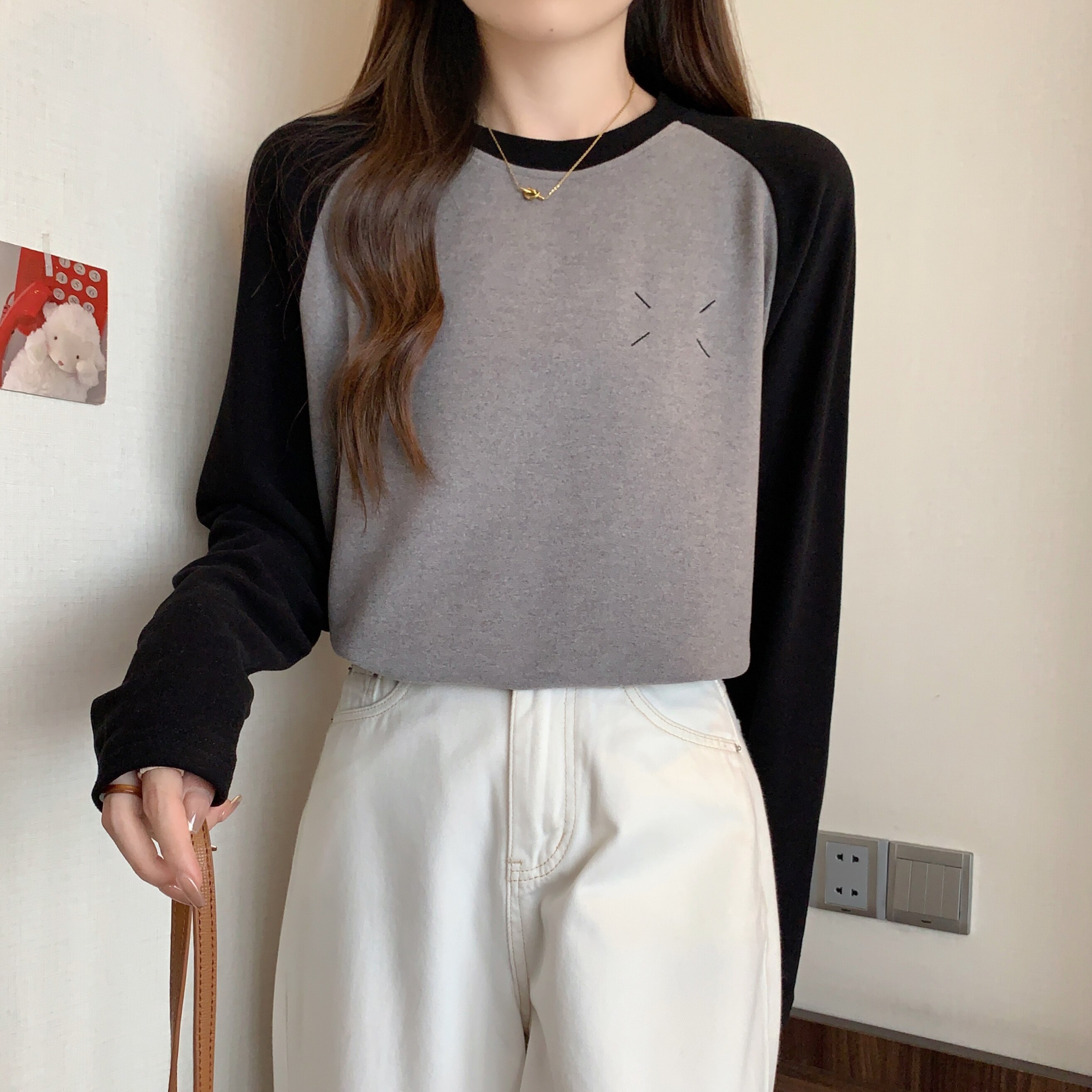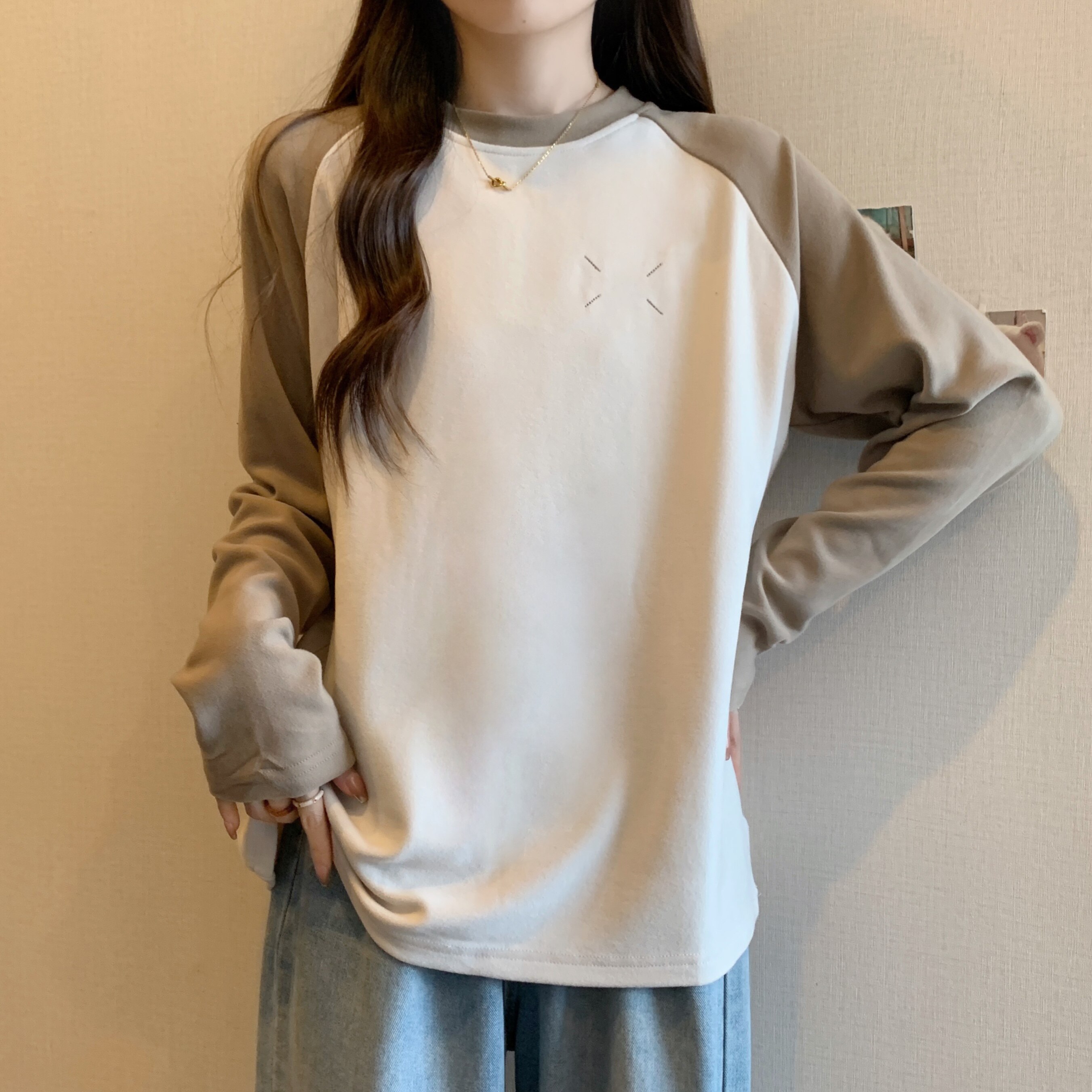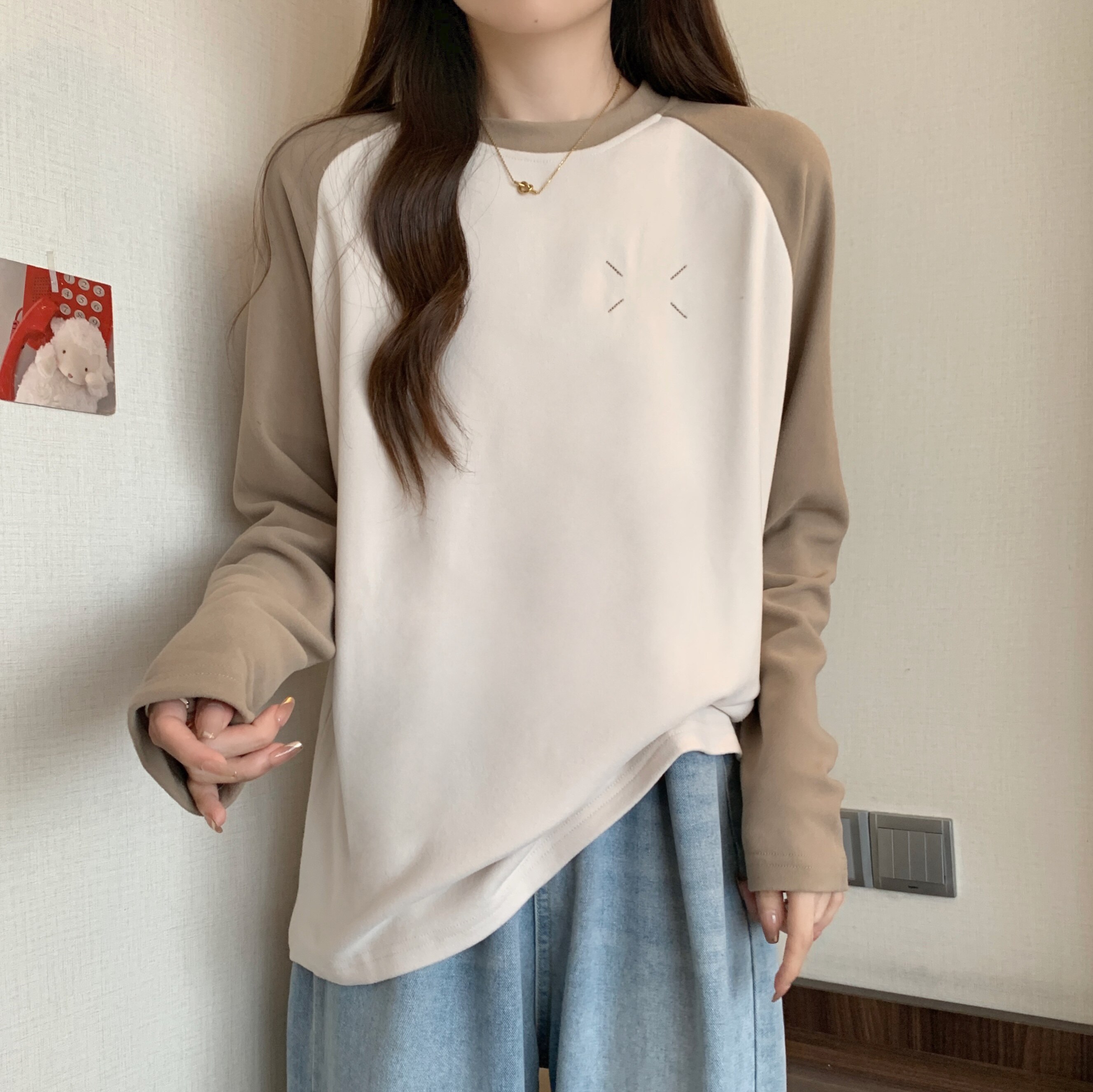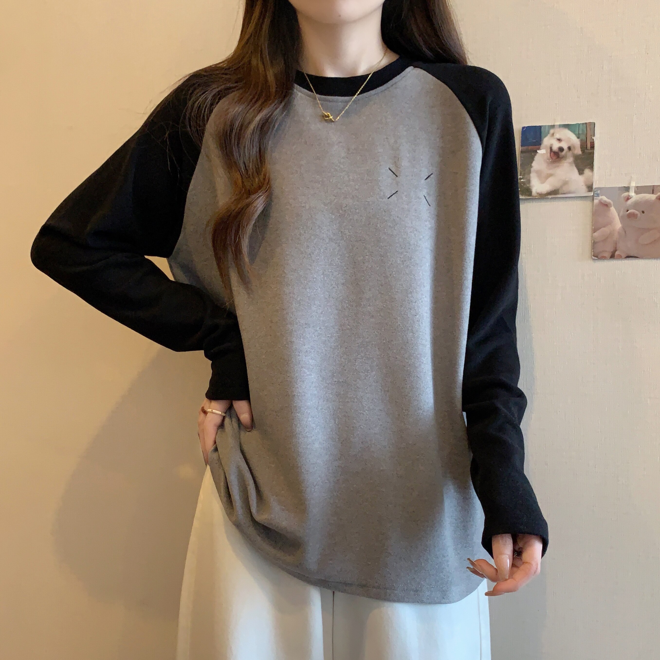Весенний бархатный базовый приятный телу лонгслив, большой размер