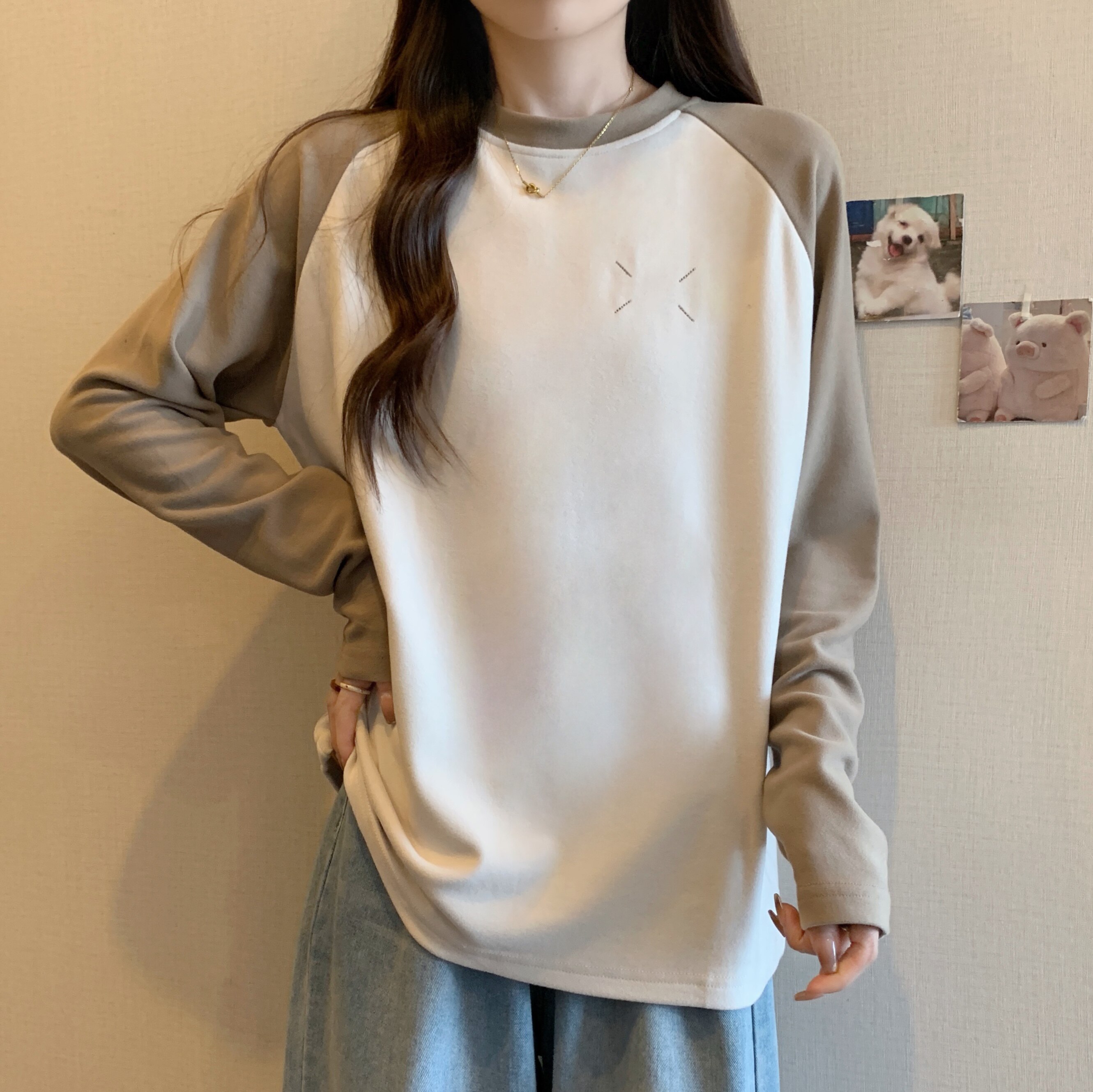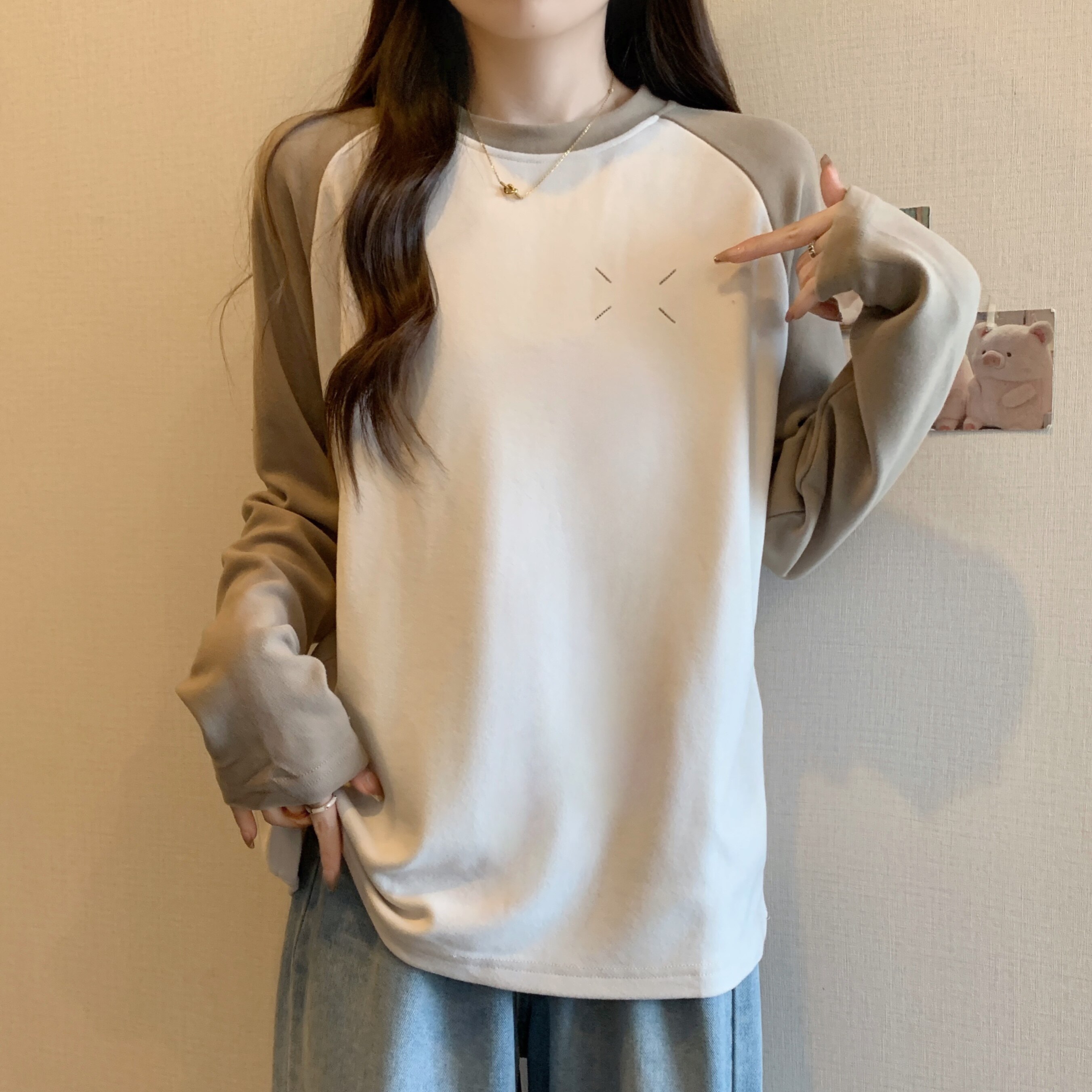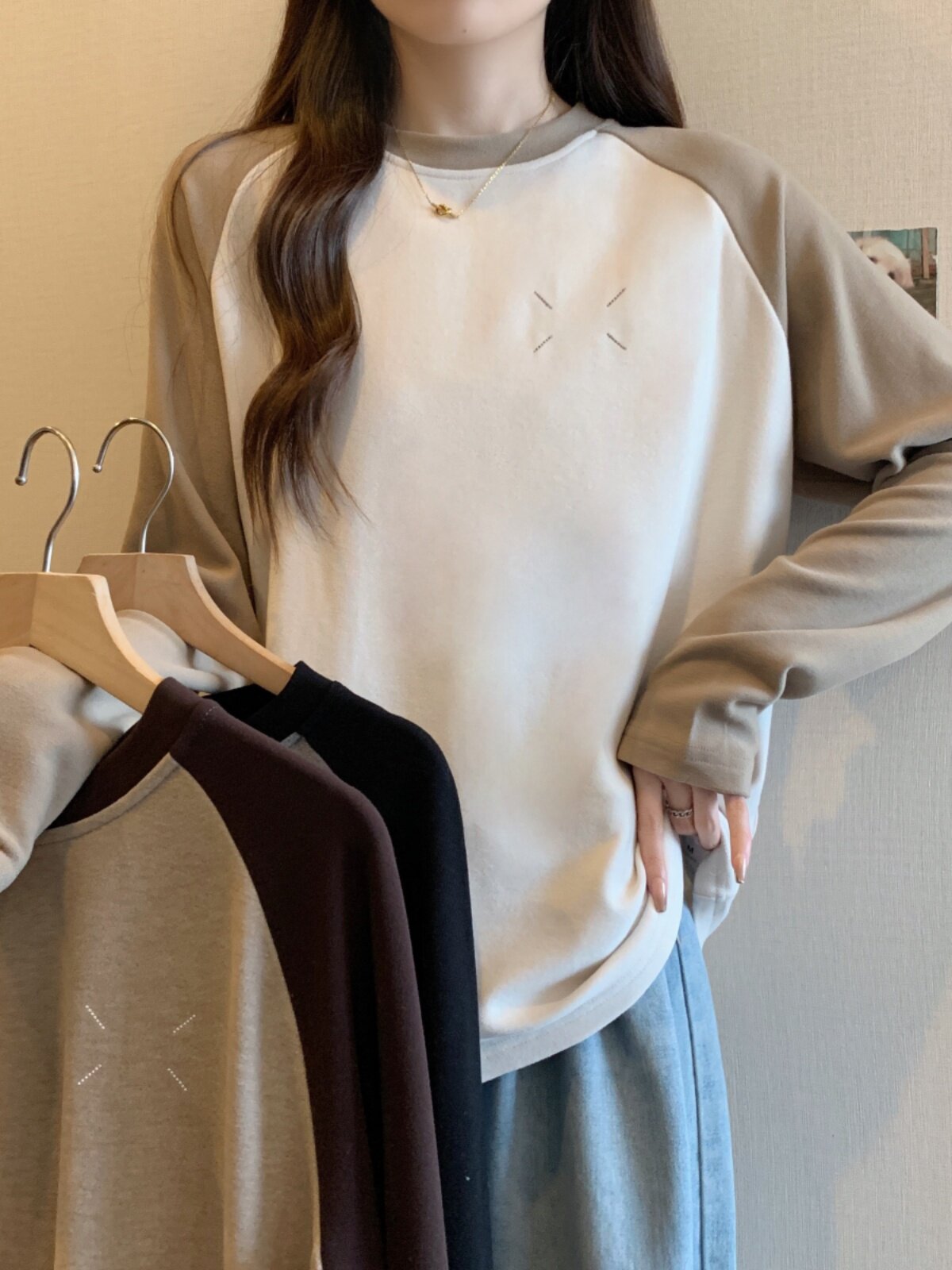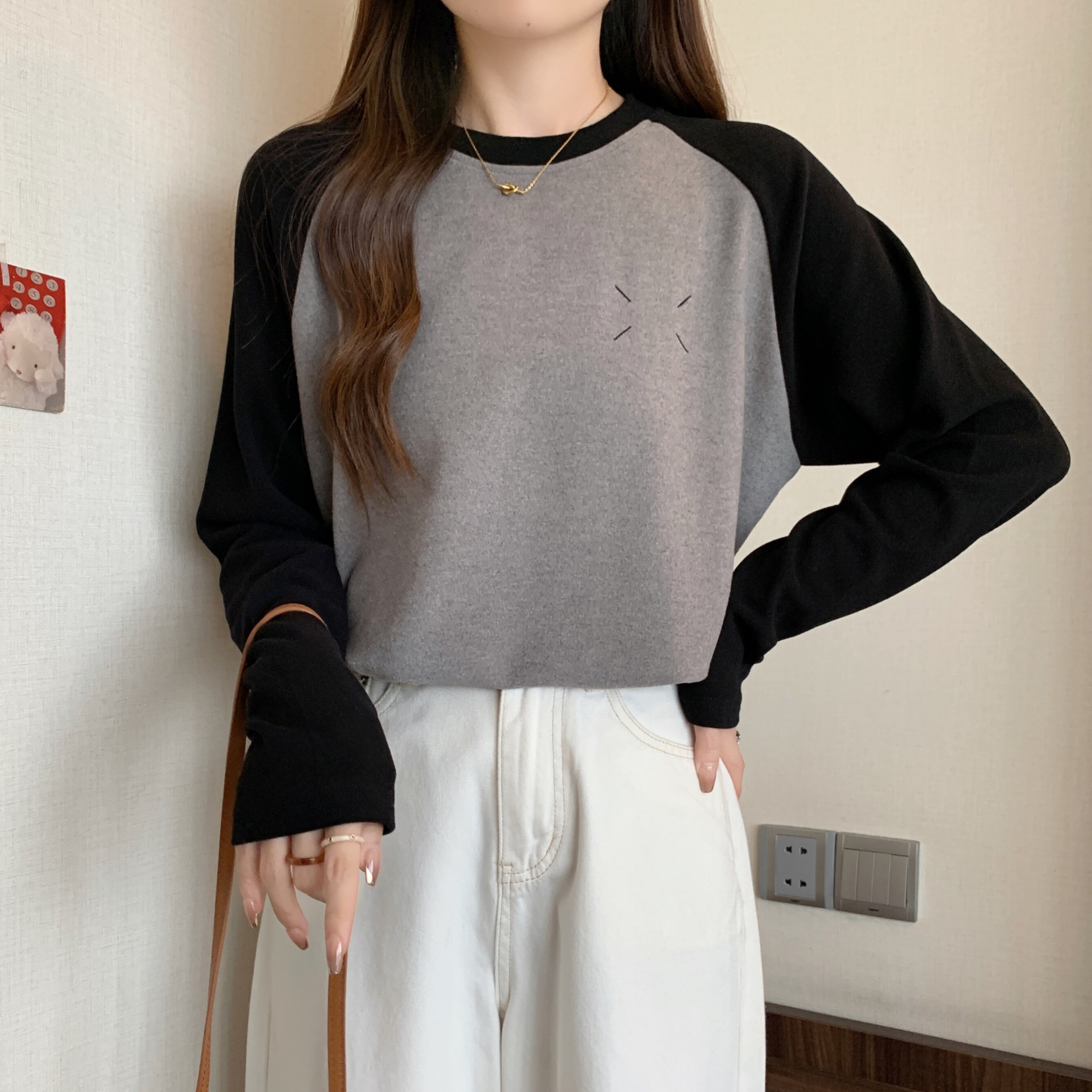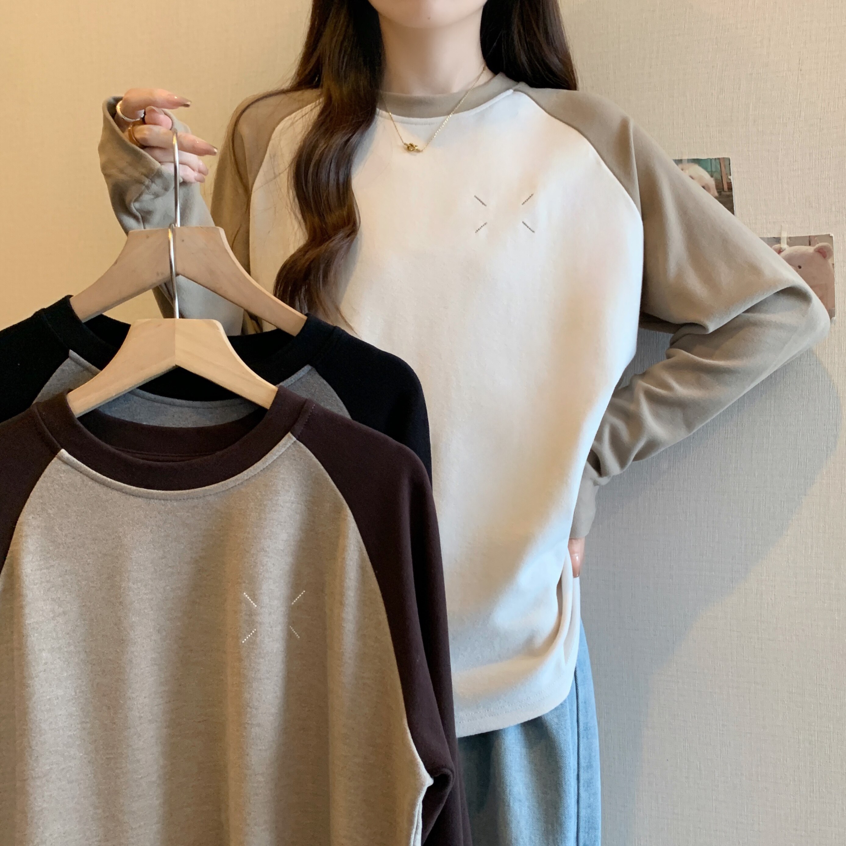 Весенний бархатный базовый приятный телу лонгслив, большой размер