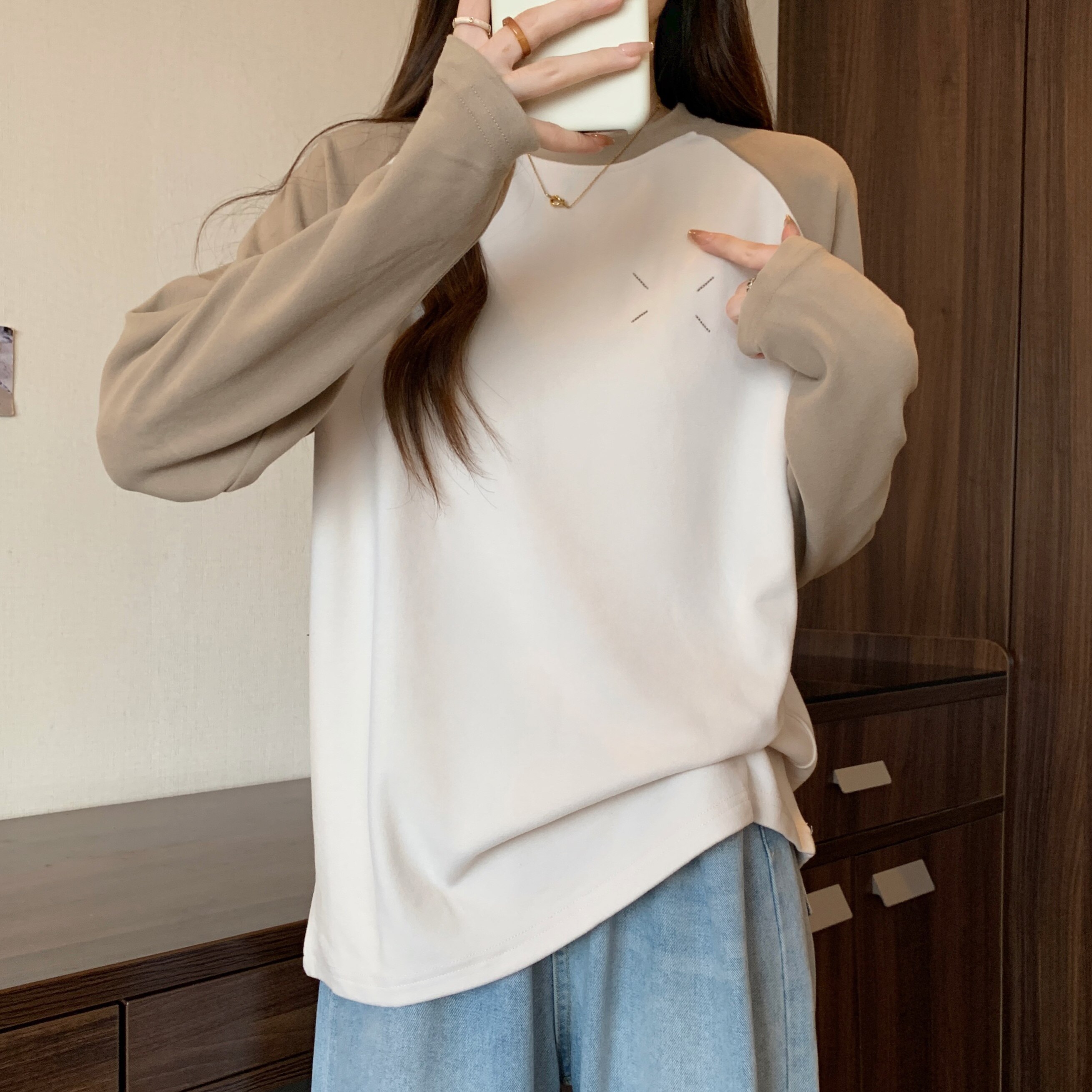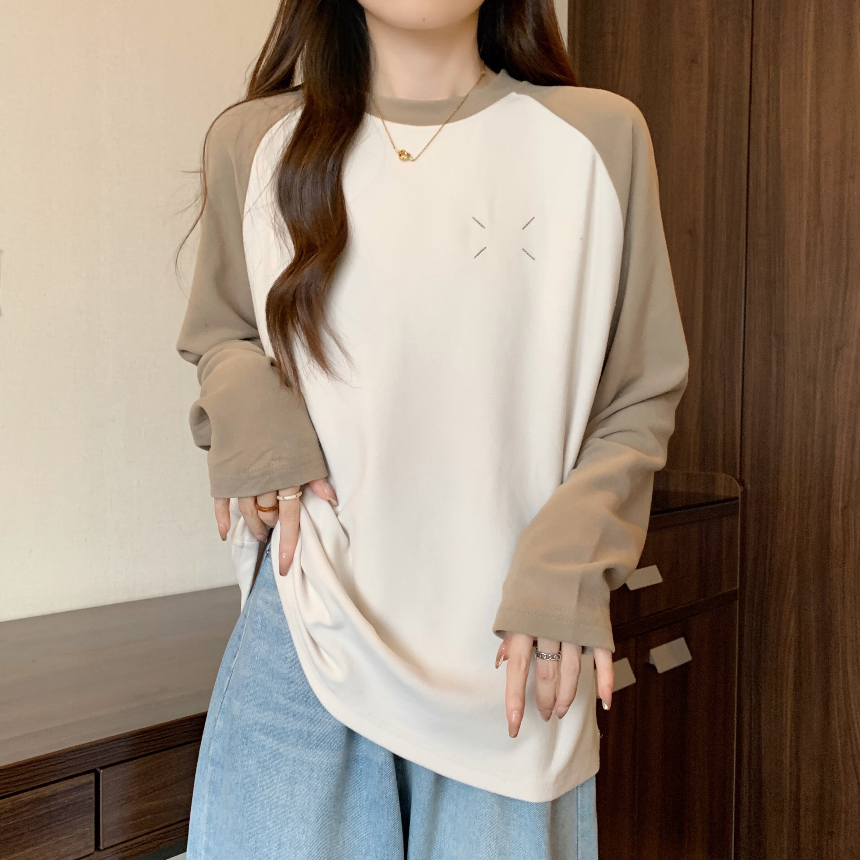 - 4xl (180-200 Catties) [чай/американский ретро/грушевидная фигура/короткий верх/художественное молоко/личность/сердце/ключица/милый/большой размер жирной куртки MM】