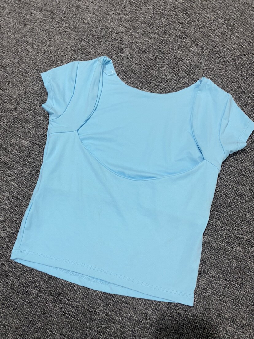 (Трансграничная торговля), приятная телу брендовая футболка, с открытой спиной, короткий рукав, облегающий крой